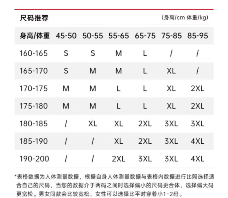 China (cm) 160-165/84-86 165-170 / 88-90 167-172 / 92-96 168-173 / 98-102 170-176 / 106-110