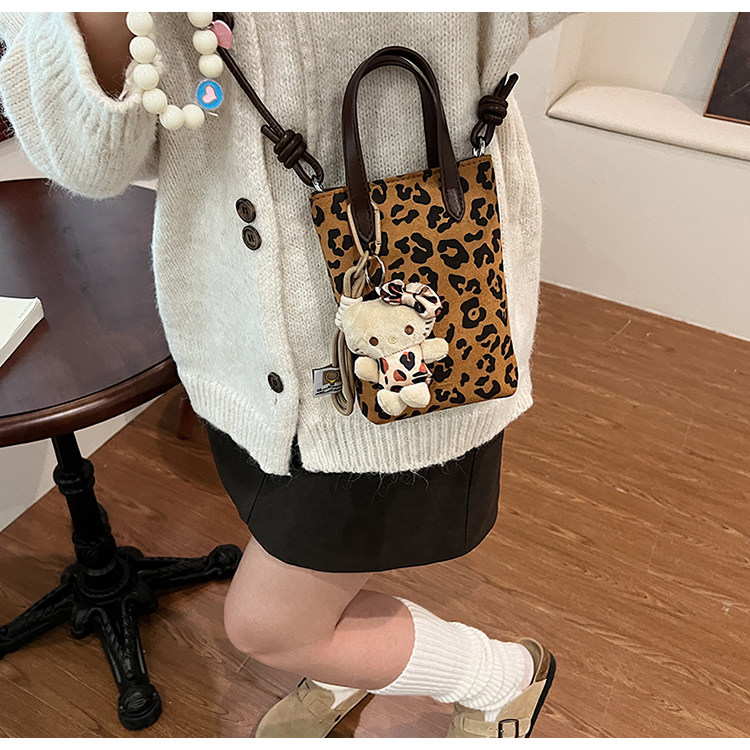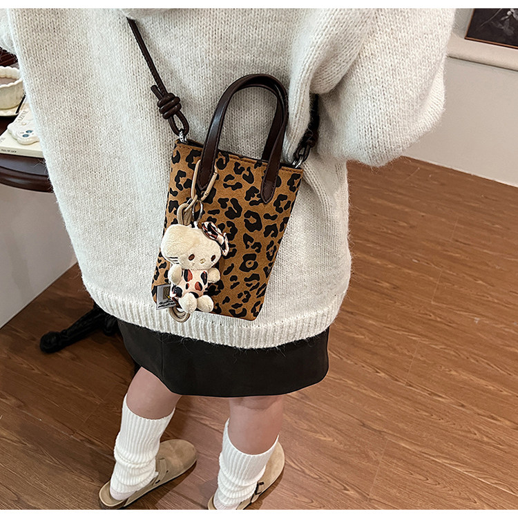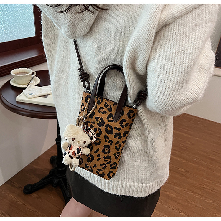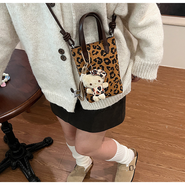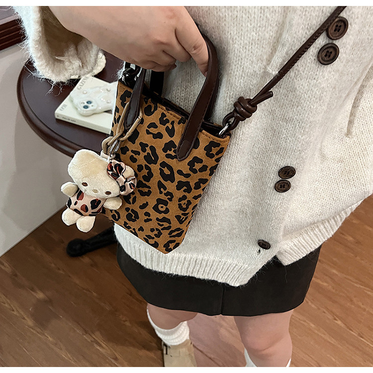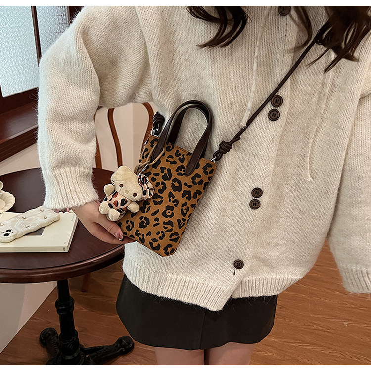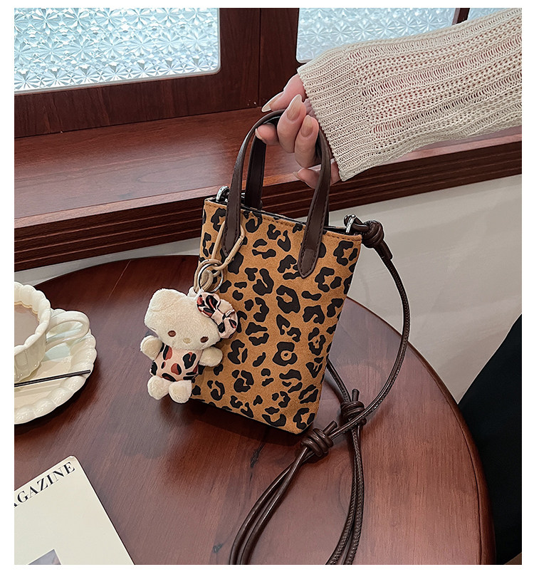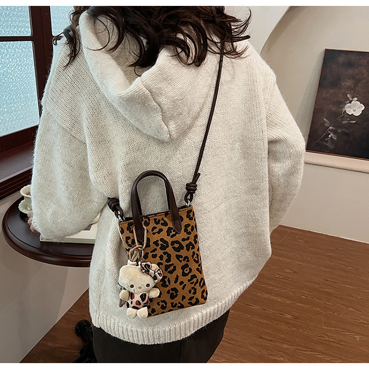 Winter Retro Niche Leopard Print Bag for Women 2026 New Versatile Handbag Suede Crossbody Phone Bag