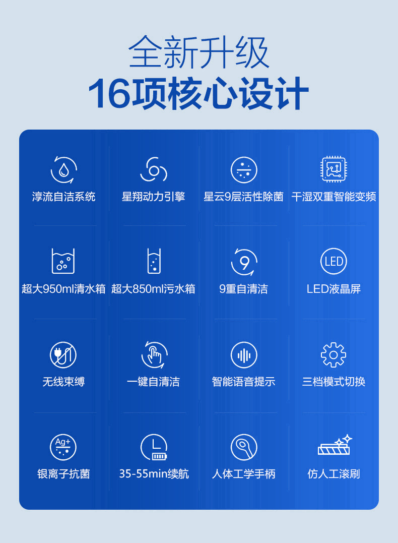 Color Classification [Standard Version]100000 Suction Power + Super Long Battery Life + Large Water Tank,[Extreme Version]160000 Suction Power + Super Long Battery Life + 80% Sterilization,[Sterilized Version]170000 Suction Power + Electrolyzed Water Sterilization + Super Long Battery Life + Natural Drying,[Negative Oxygen Version White]180000 Suction Power +99.99 Purification and Sterilization + Full Chain Drying,[180°Standard Configuration]180000 Suction Power Silent Flexible Full Link Drying + Anti-Hair Tangling 0 Edge + 99.99 Electrolysis Sterilization,[180°Lying Flat Style]190000 Suction Power + 0 Hair Wrapping 0 Hemming + 99.99% Electrolysis Sterilization + Silent Flexible Full-Chain Drying