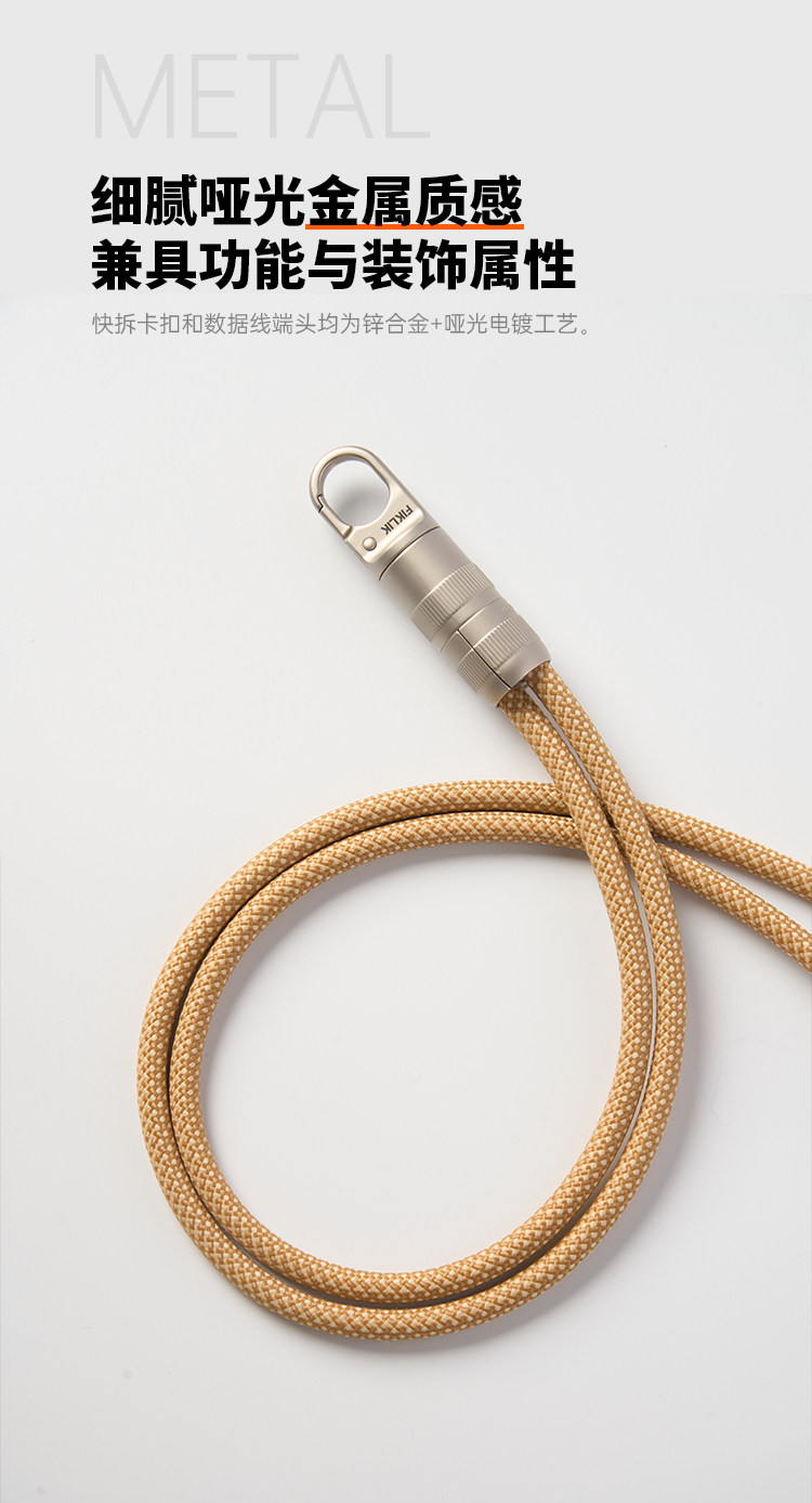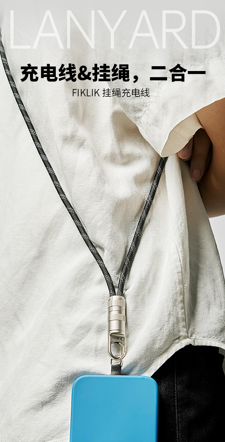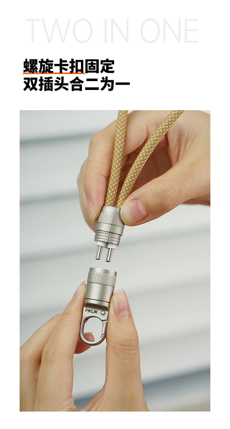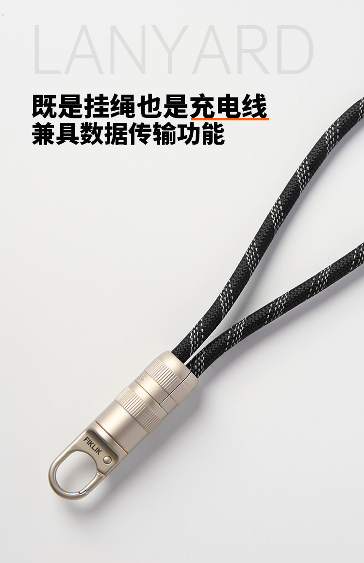 FIKLIK two-in-one lanyard data cable dual USB-C1 portable charging cable PD fast charging mobile phone short-line nylon braid 100W-240W