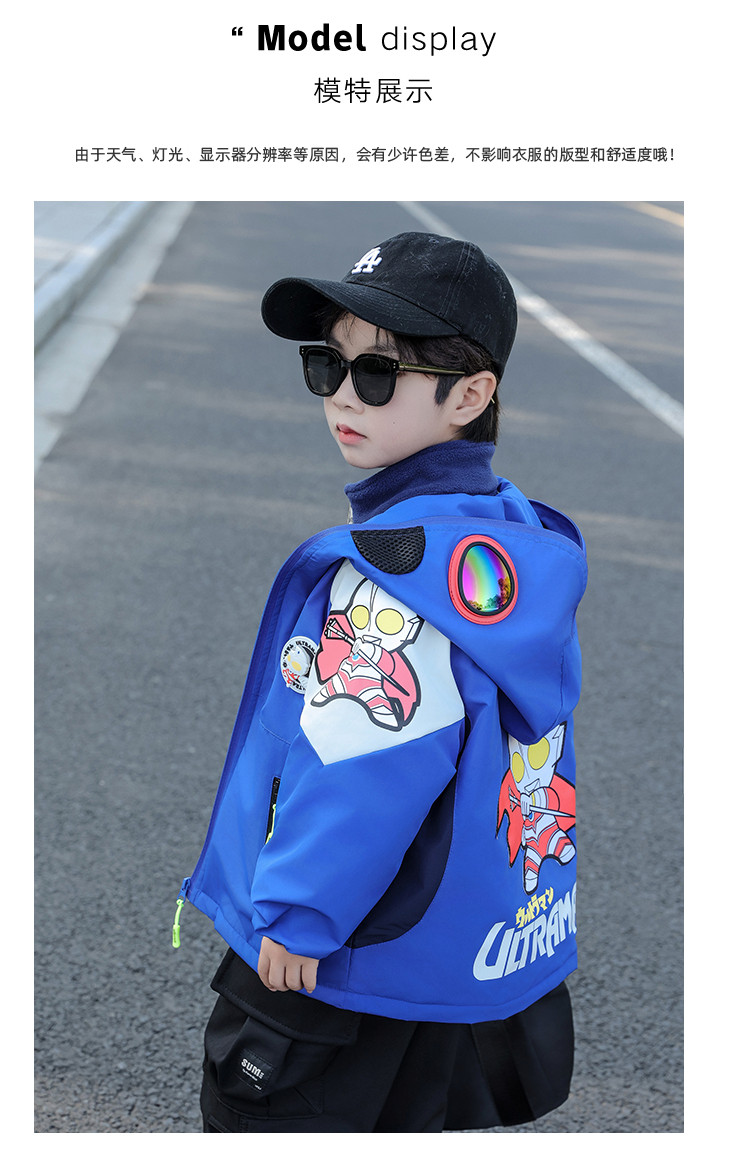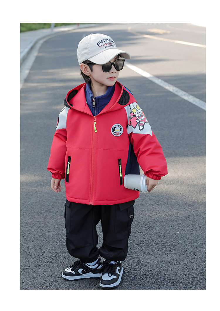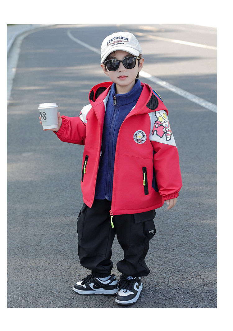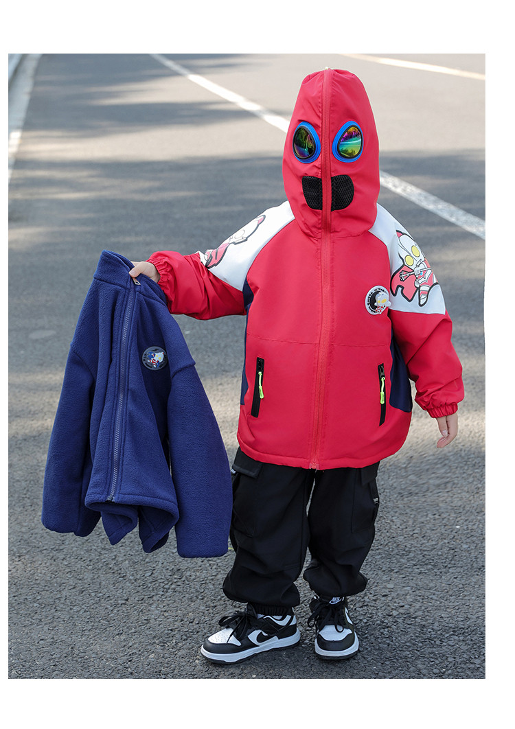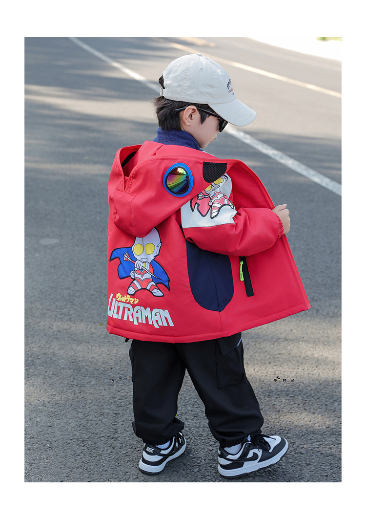 Ultraman Early Spring Jacket for Boys, Spring and Autumn Clothing, Three-In-One Children's Thin Cotton Jacket with Hat and Glasses