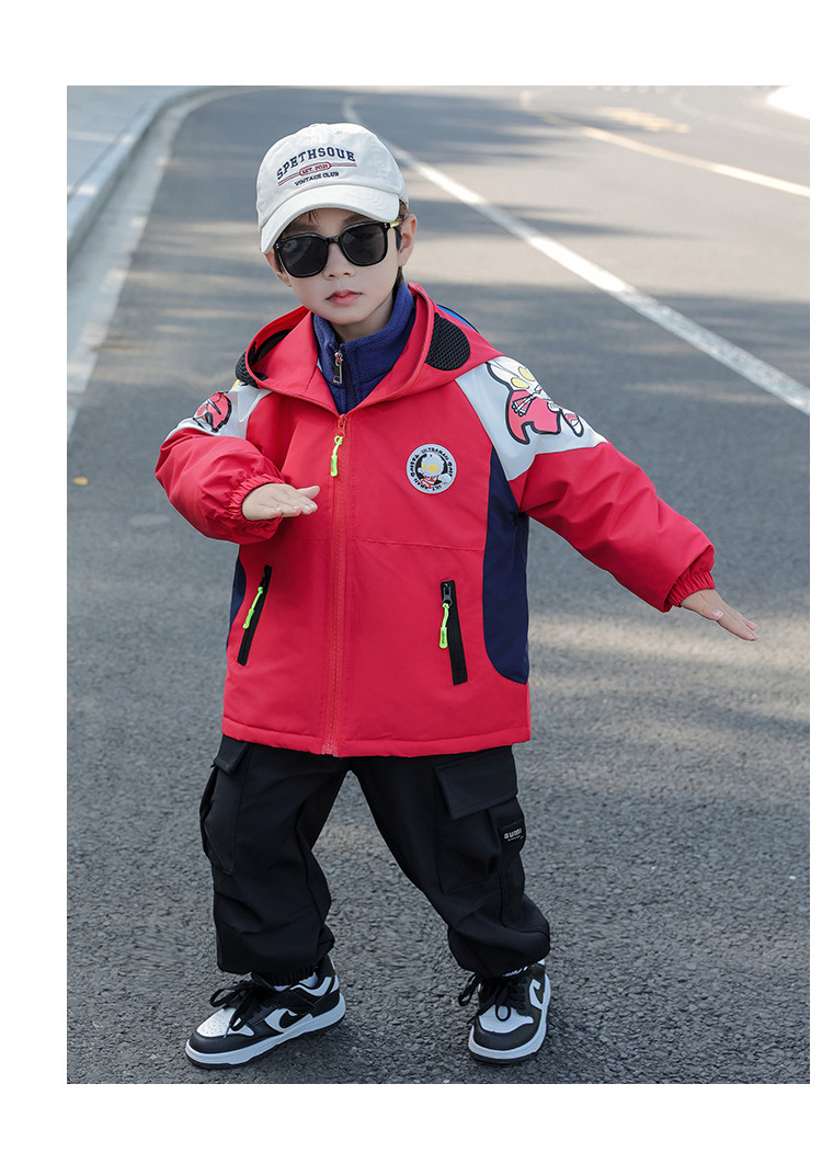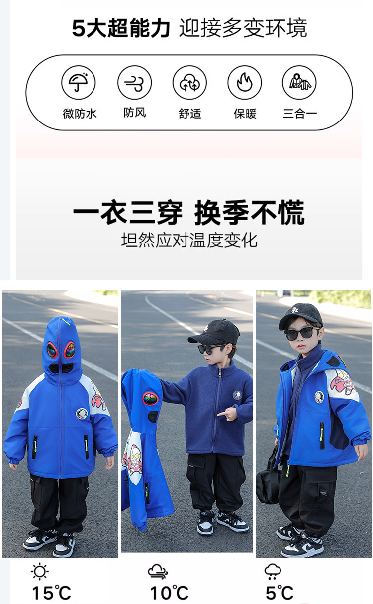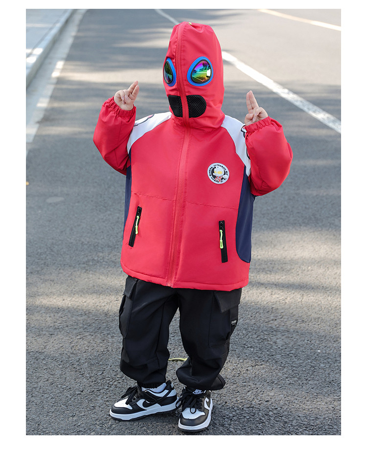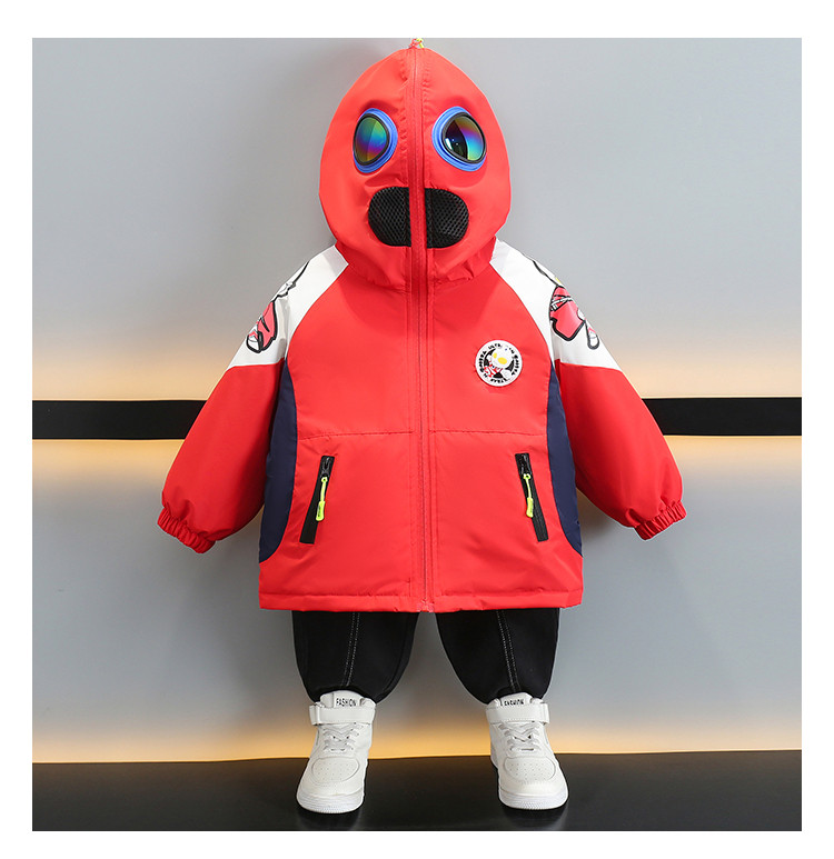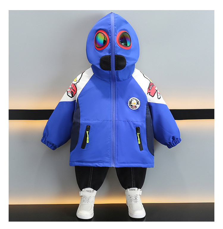 Ultraman Early Spring Jacket for Boys, Spring and Autumn Clothing, Three-In-One Children's Thin Cotton Jacket with Hat and Glasses