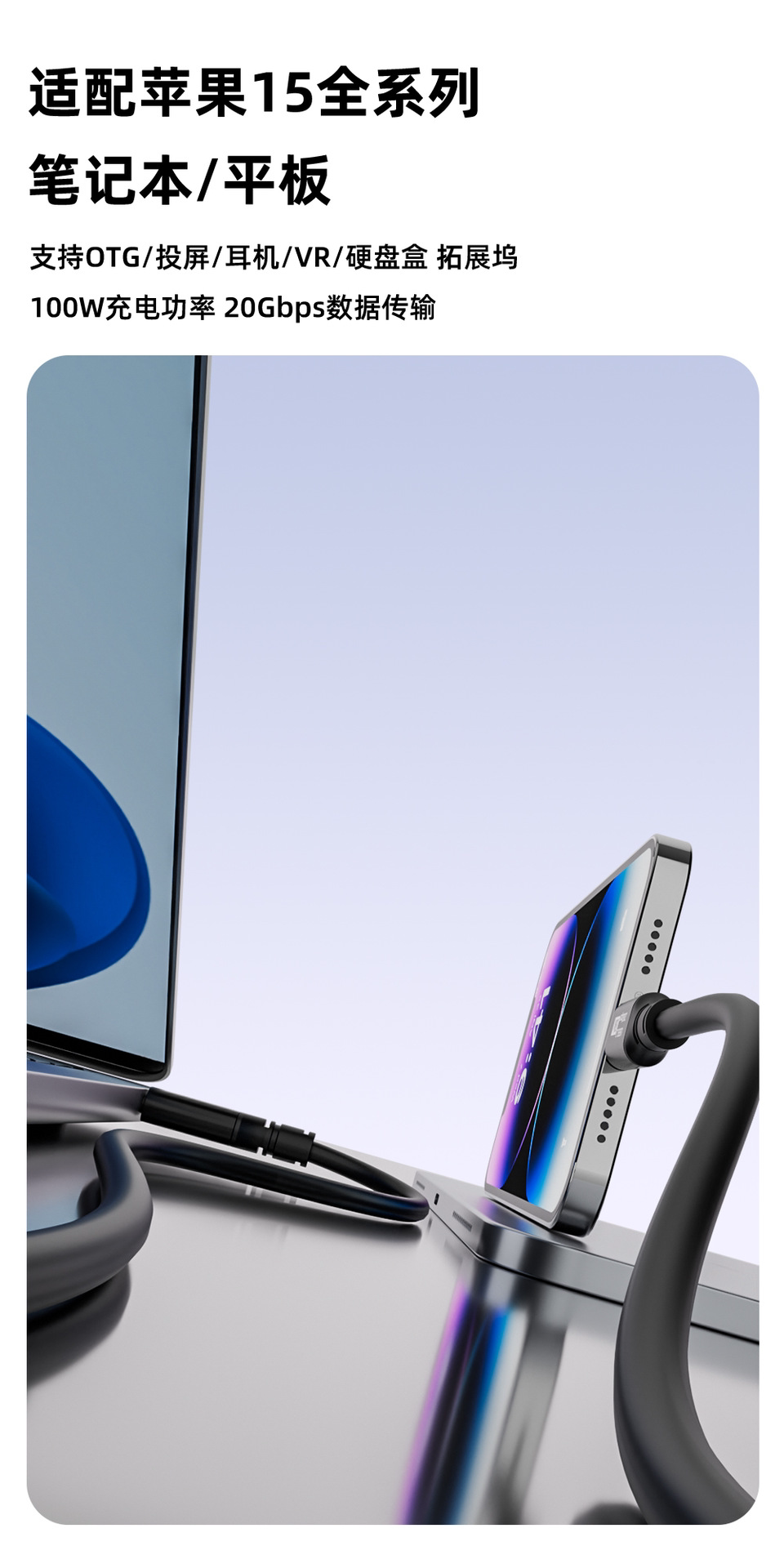 Full-Featured Dual-Head Typec Data Cable Usb3.1Gen2 Male-To-Male 8K Screen Projection Fast Charging Pd100W Suitable for Apple iPhone 15 /16Promax Mobile Phones and Laptops 20Gbps Transmission