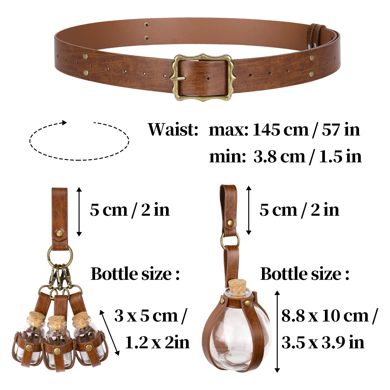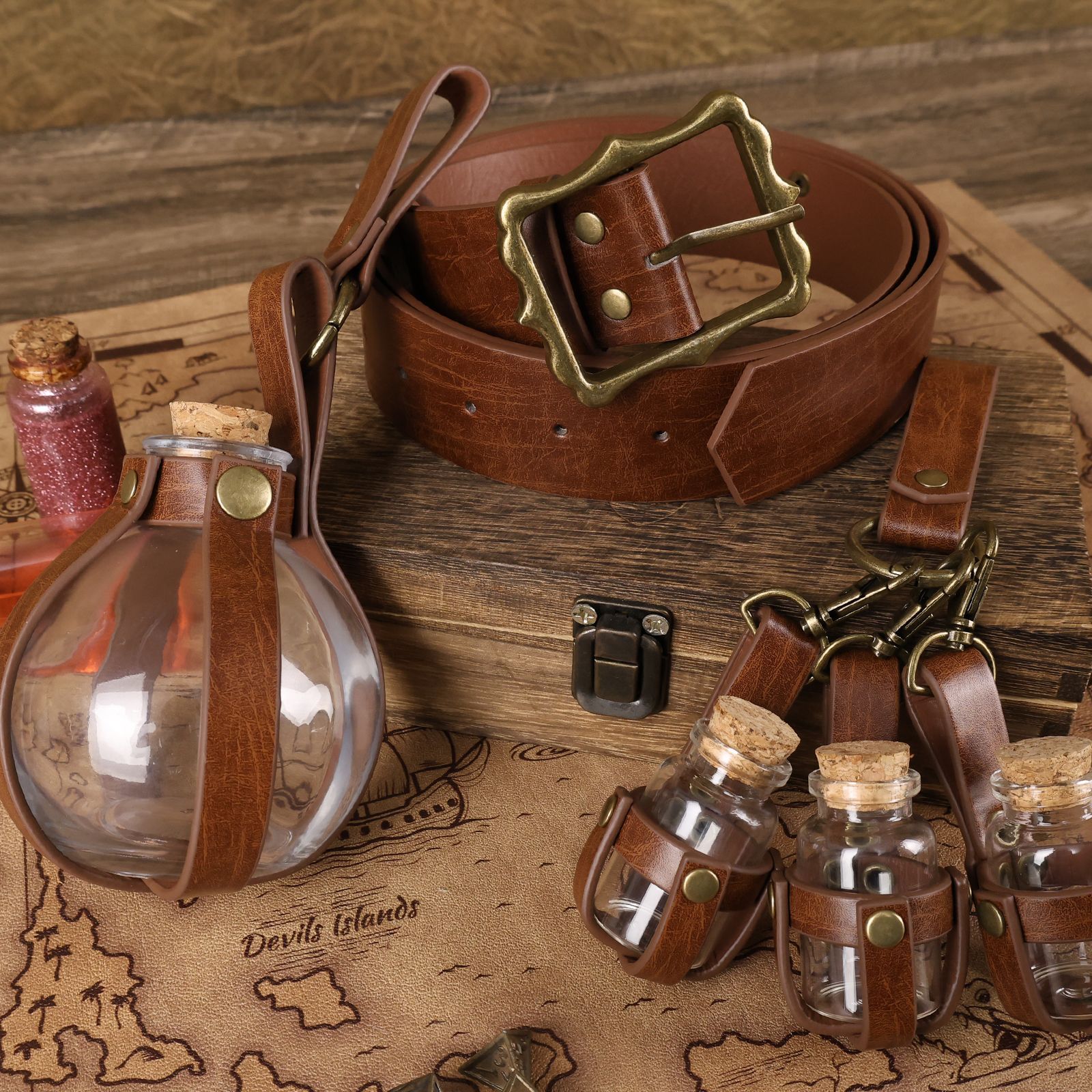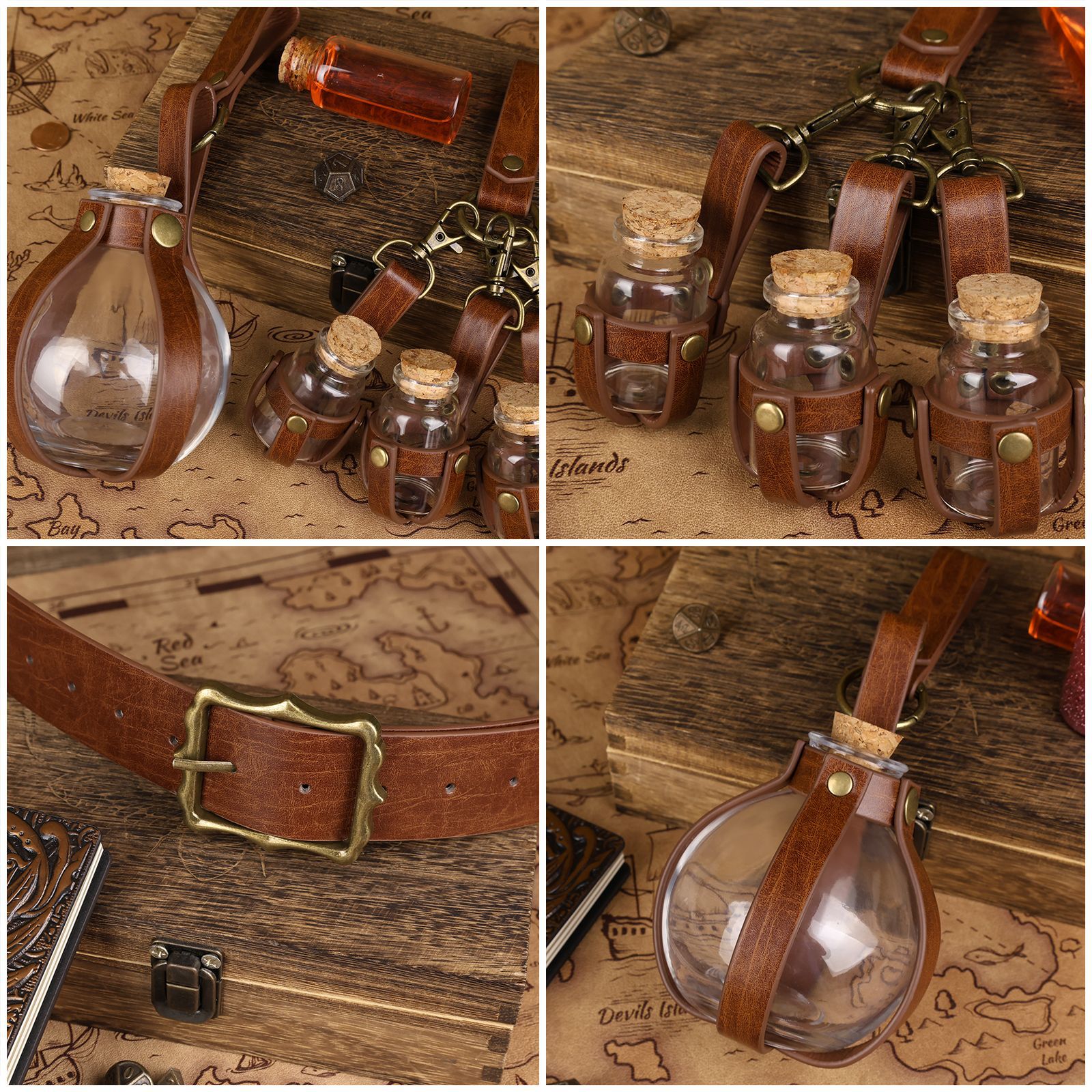 Medieval Steampunk Alchemy Bottle Witch Magic Belt Nordic Viking Style Retro Cosplay Performance Prop