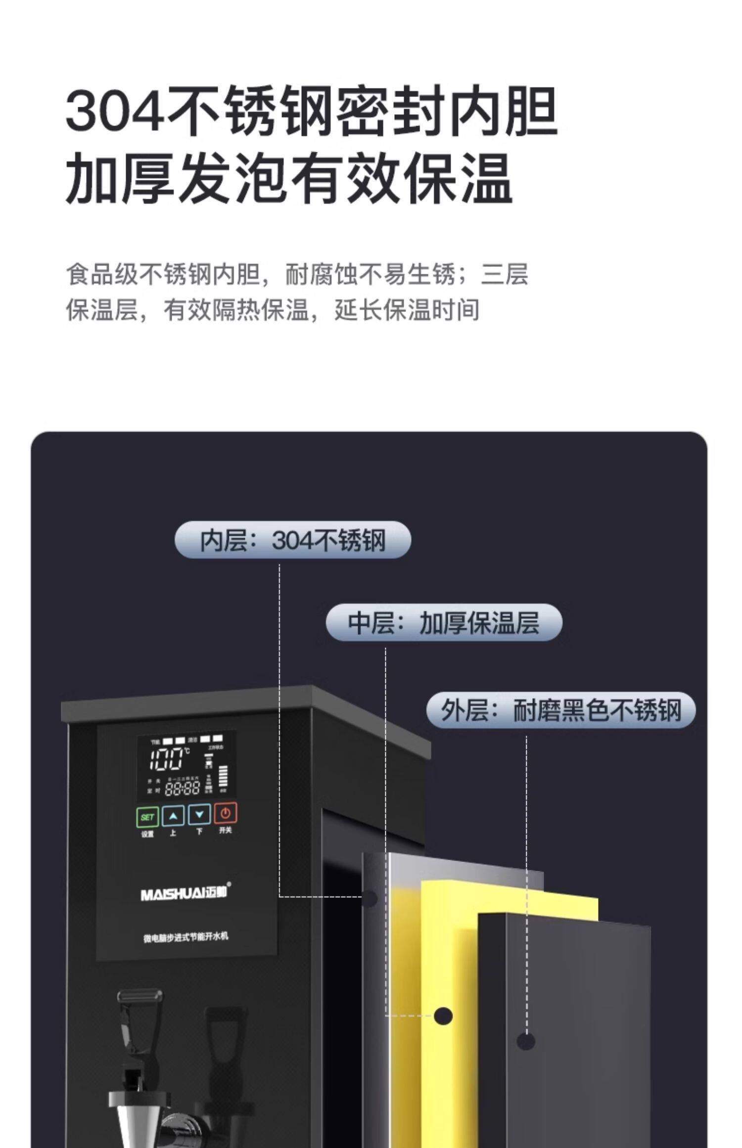 Commercial Water Boiler, Step-By-Step Hot Water Dispenser, Fully Automatic Electric Water Boiler for Milk Tea Shops and Bar Counters