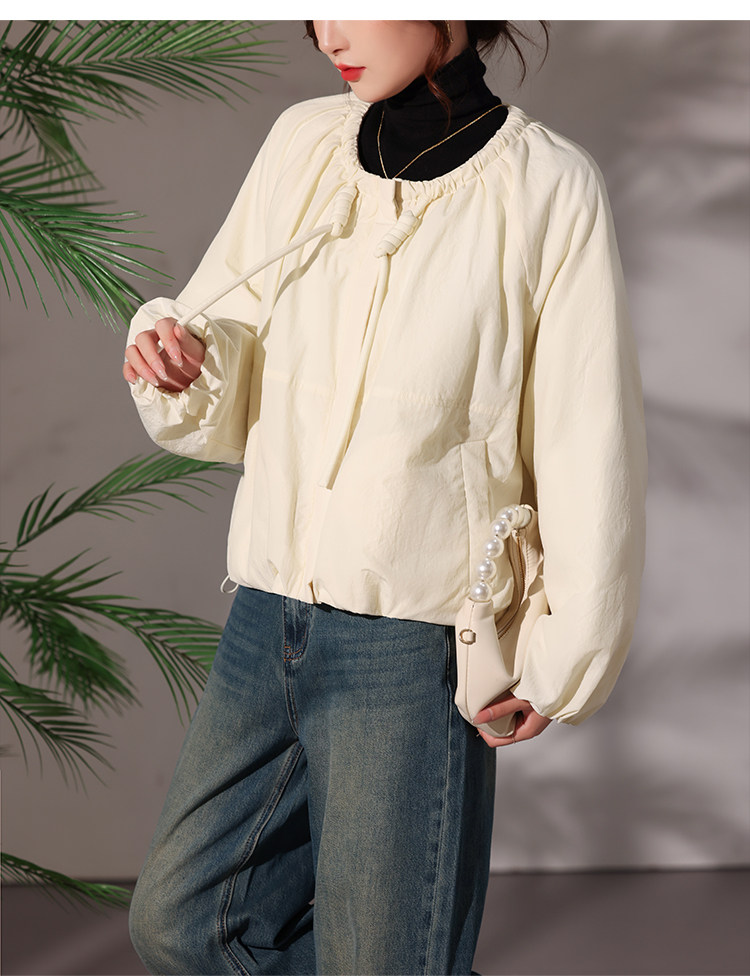 Lightweight and Loose-Fitting 90% White Duck down Jacket for Women, 2024 Winter New Fashion, Trendy Drawstring Short Coat