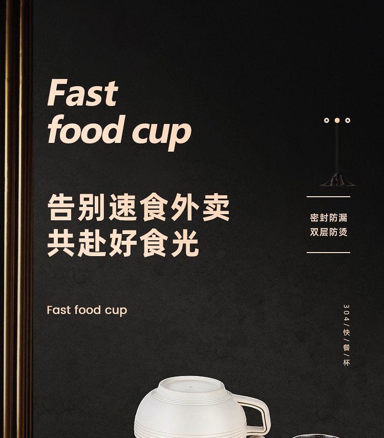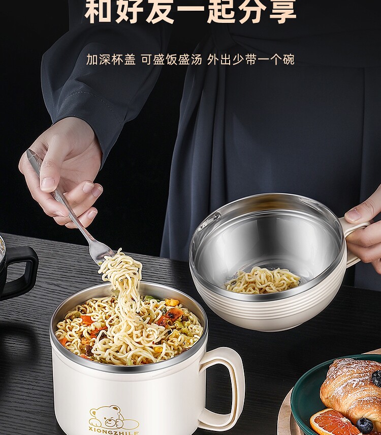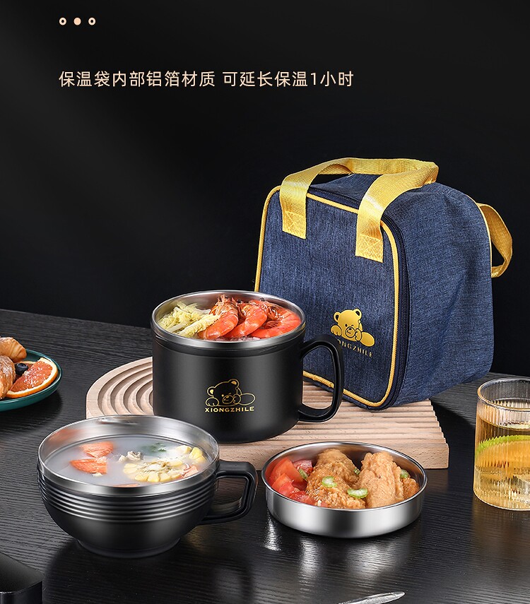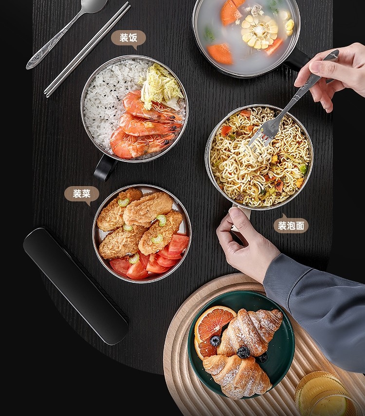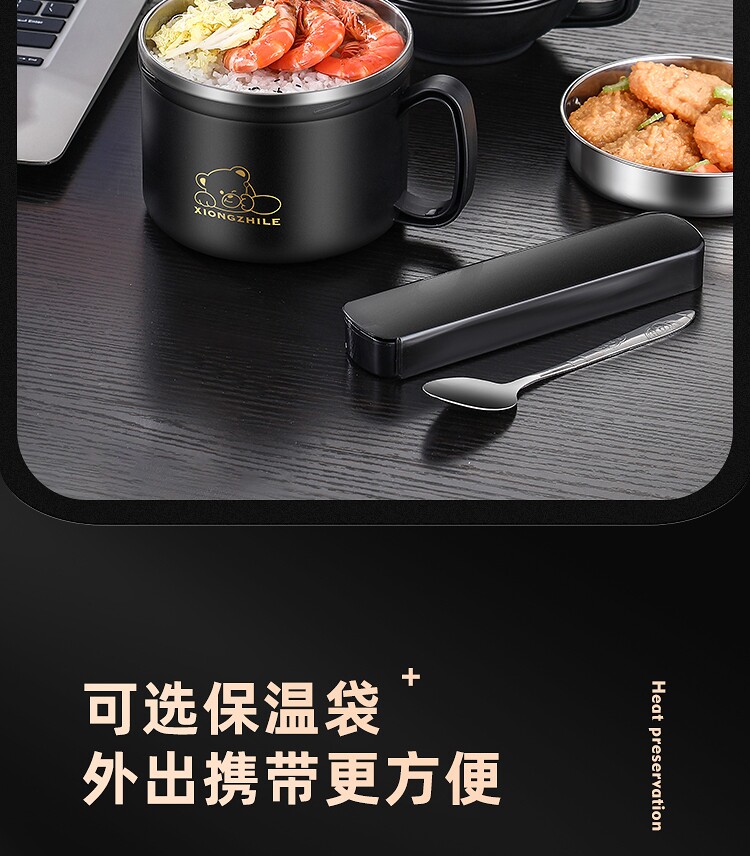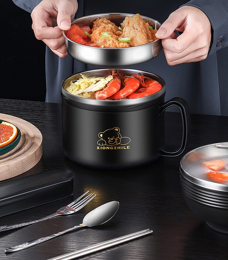 German imported thickened 304 stainless steel insulated lunch box adult large-capacity fast food cup student dormitory instant noodle bowl