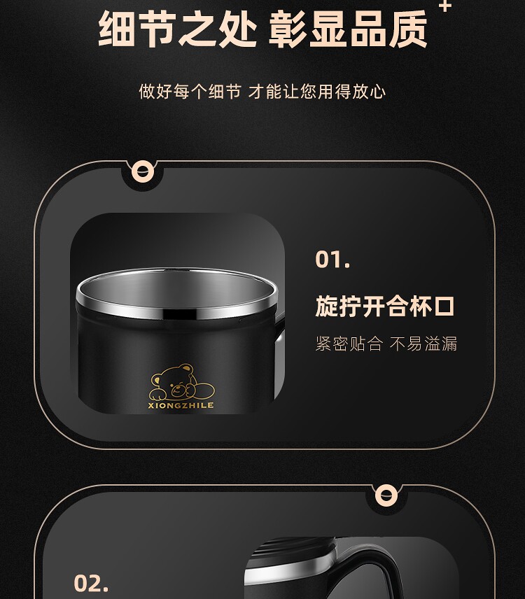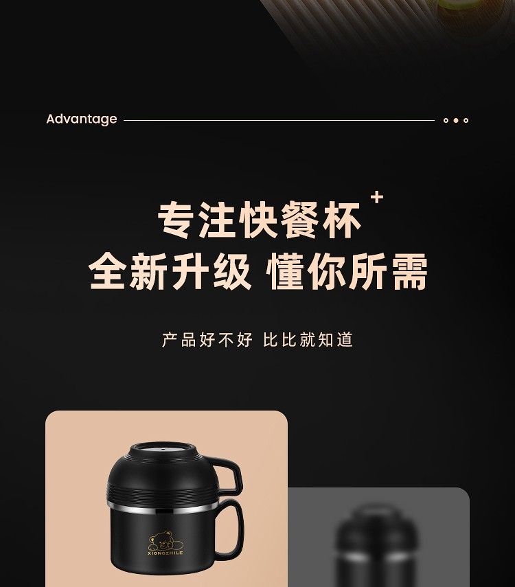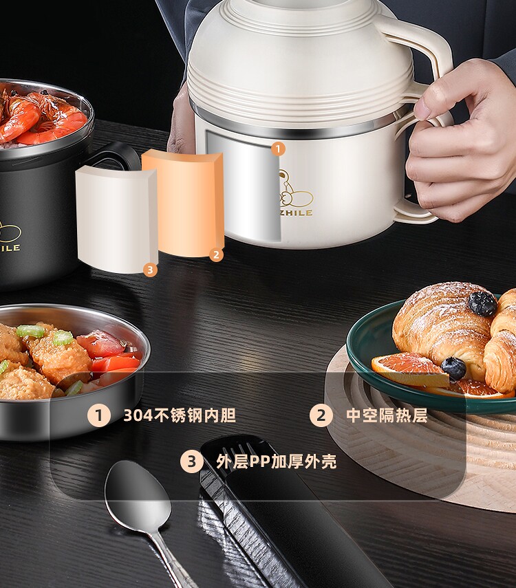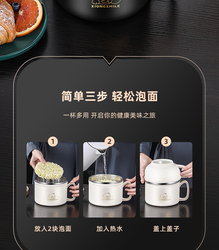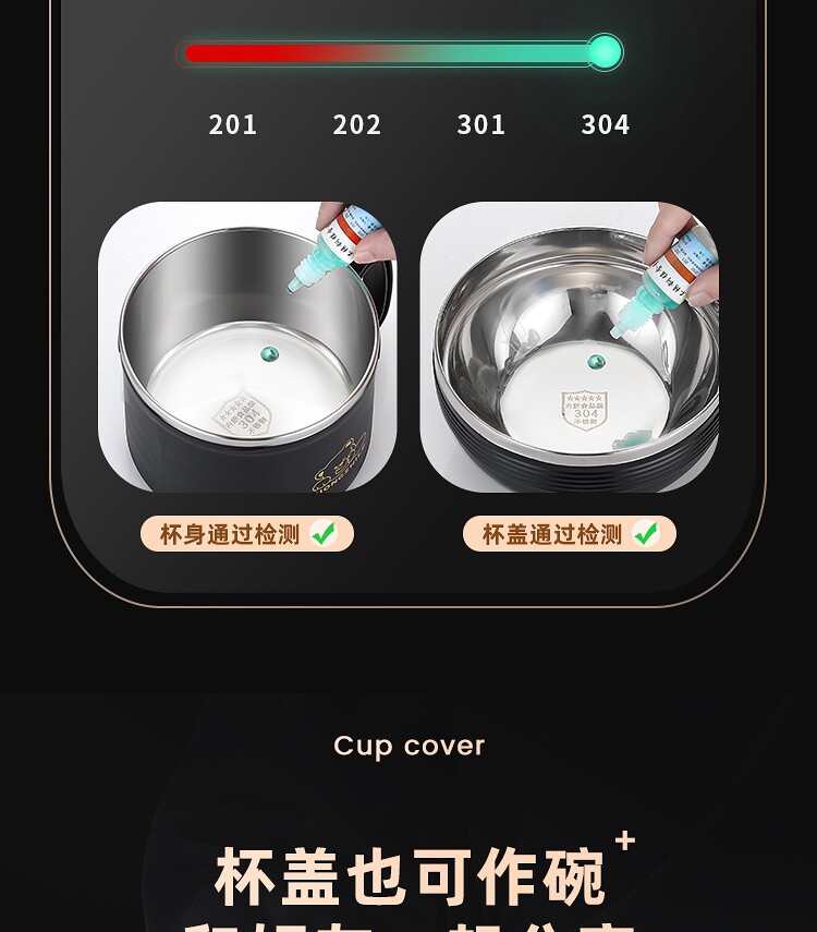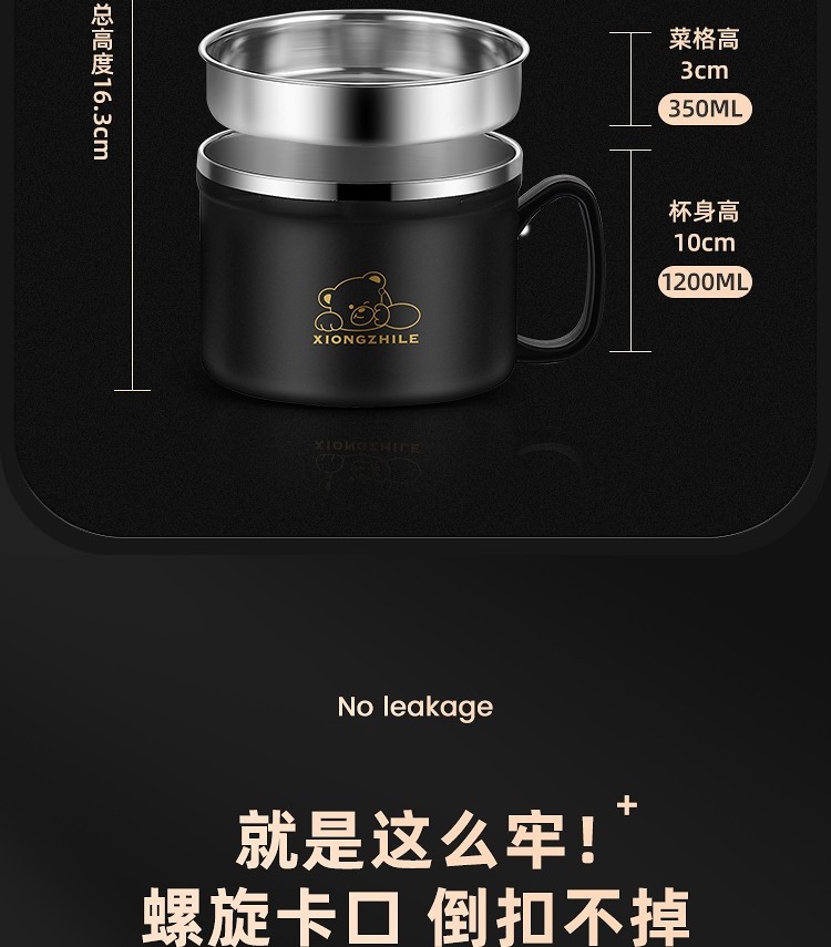 German imported thickened 304 stainless steel insulated lunch box adult large-capacity fast food cup student dormitory instant noodle bowl