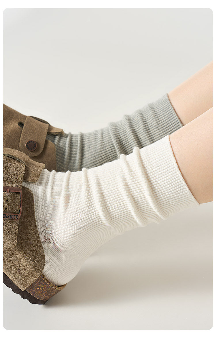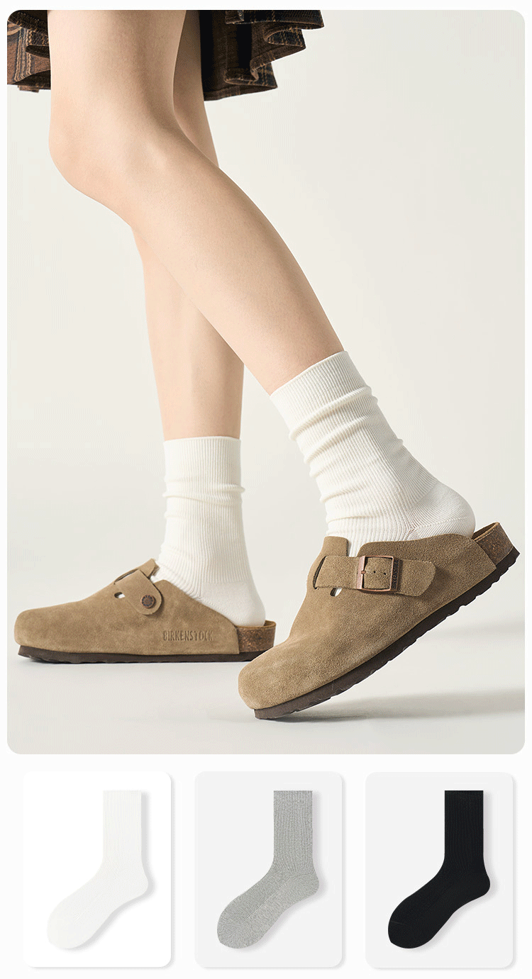 White Socks for Women, Pure Cotton Mid-Calf Socks, Suitable for Birkenstock Shoes, Autumn and Winter Long Socks, 2024 New Popular Style, Spring and Autumn Slouch Socks