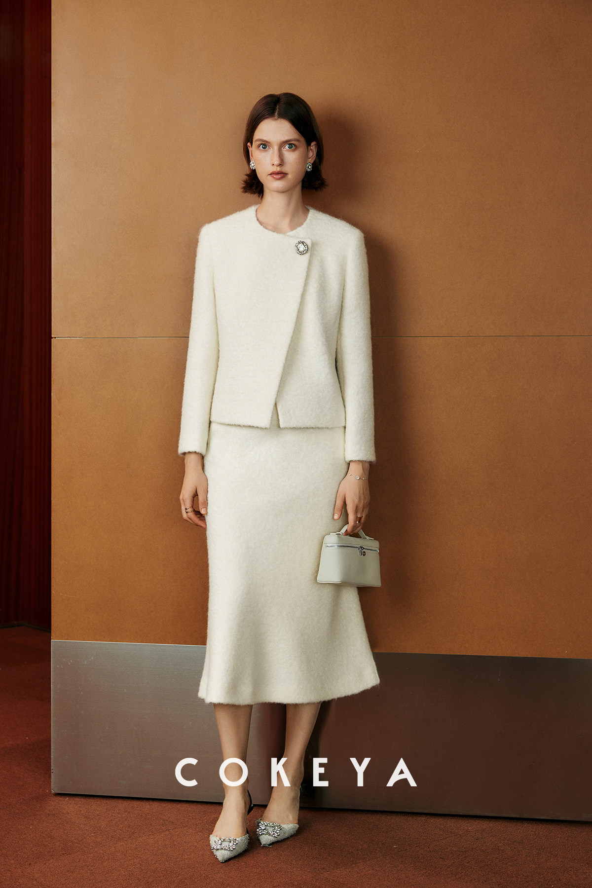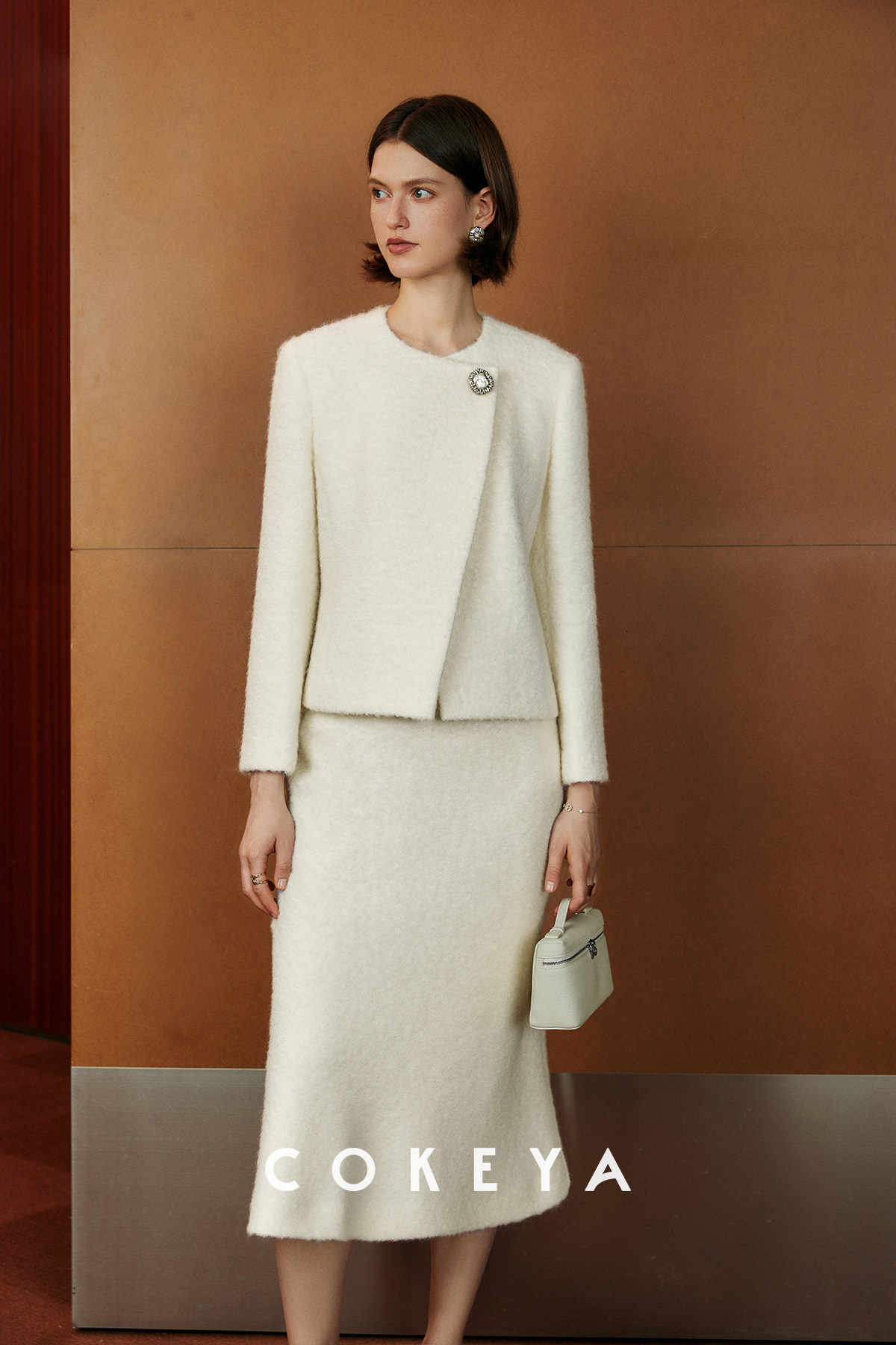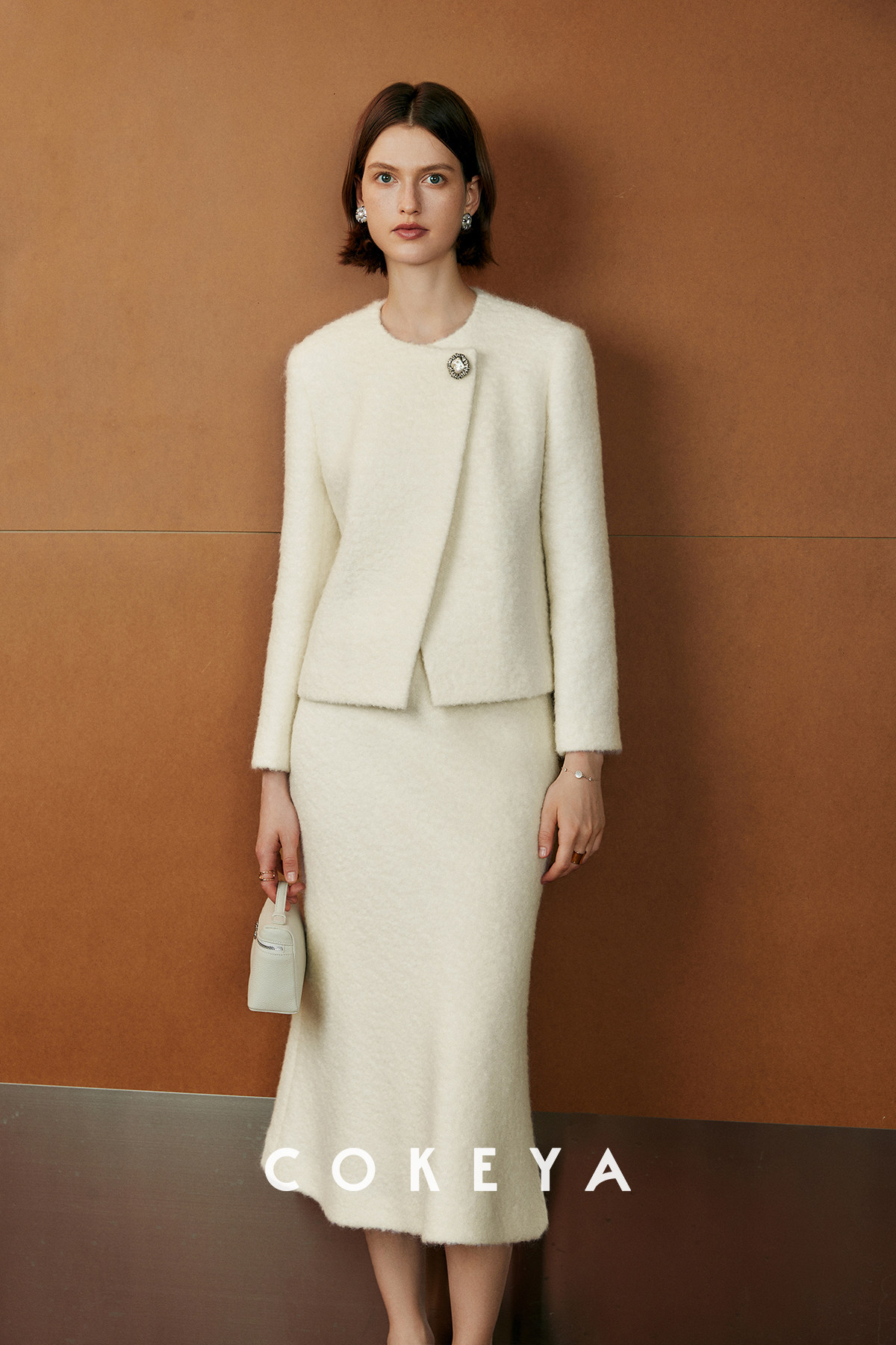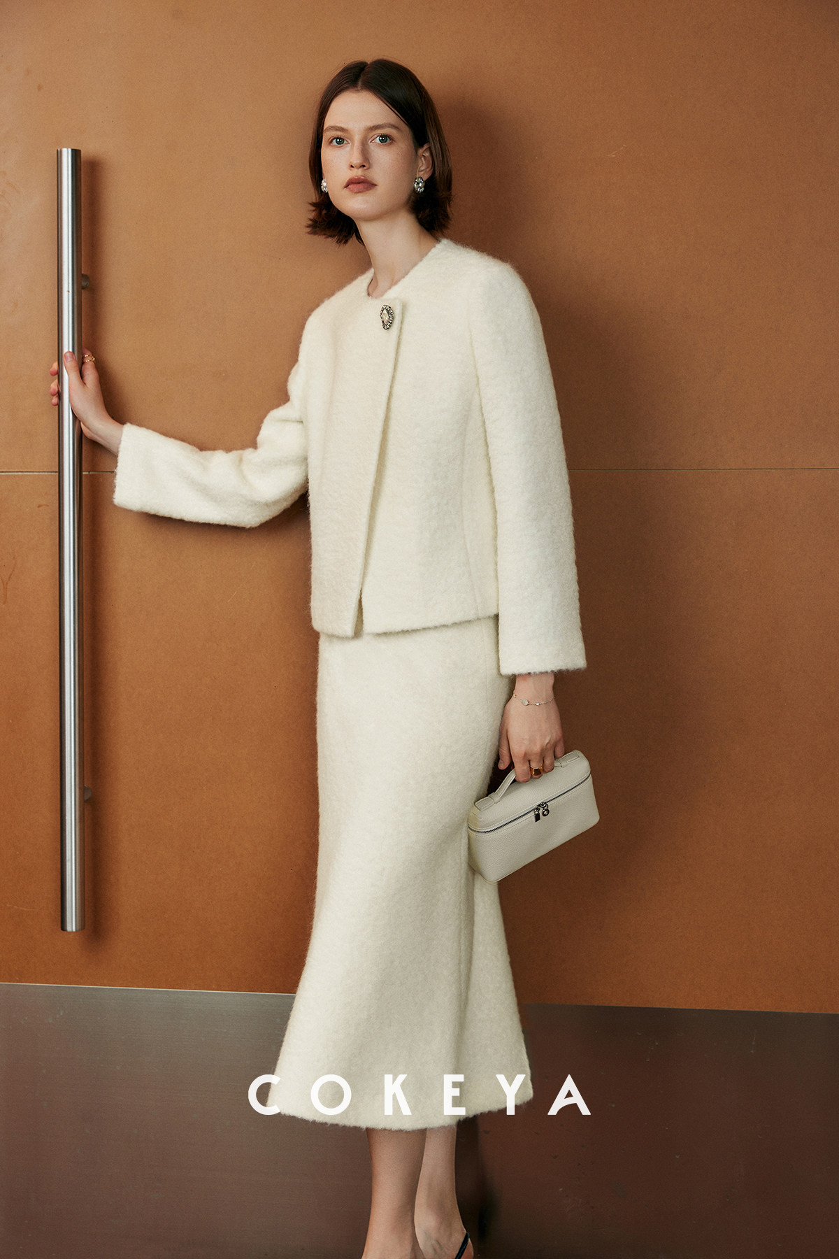 Cokeya/Elegant "Baroque" Consinee Mohair Wool Tweed Jacket and Skirt Set for Women