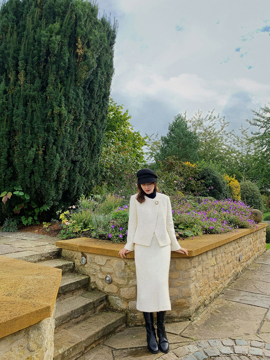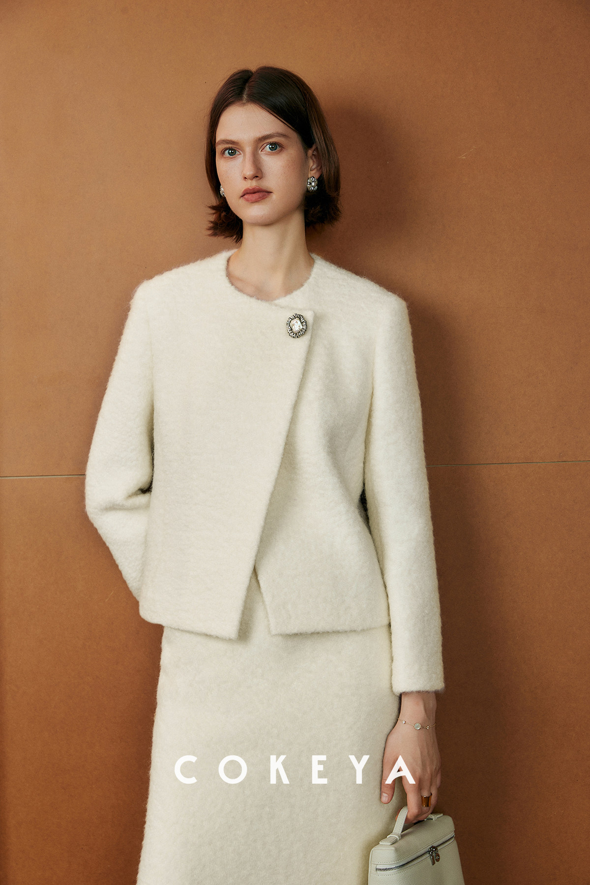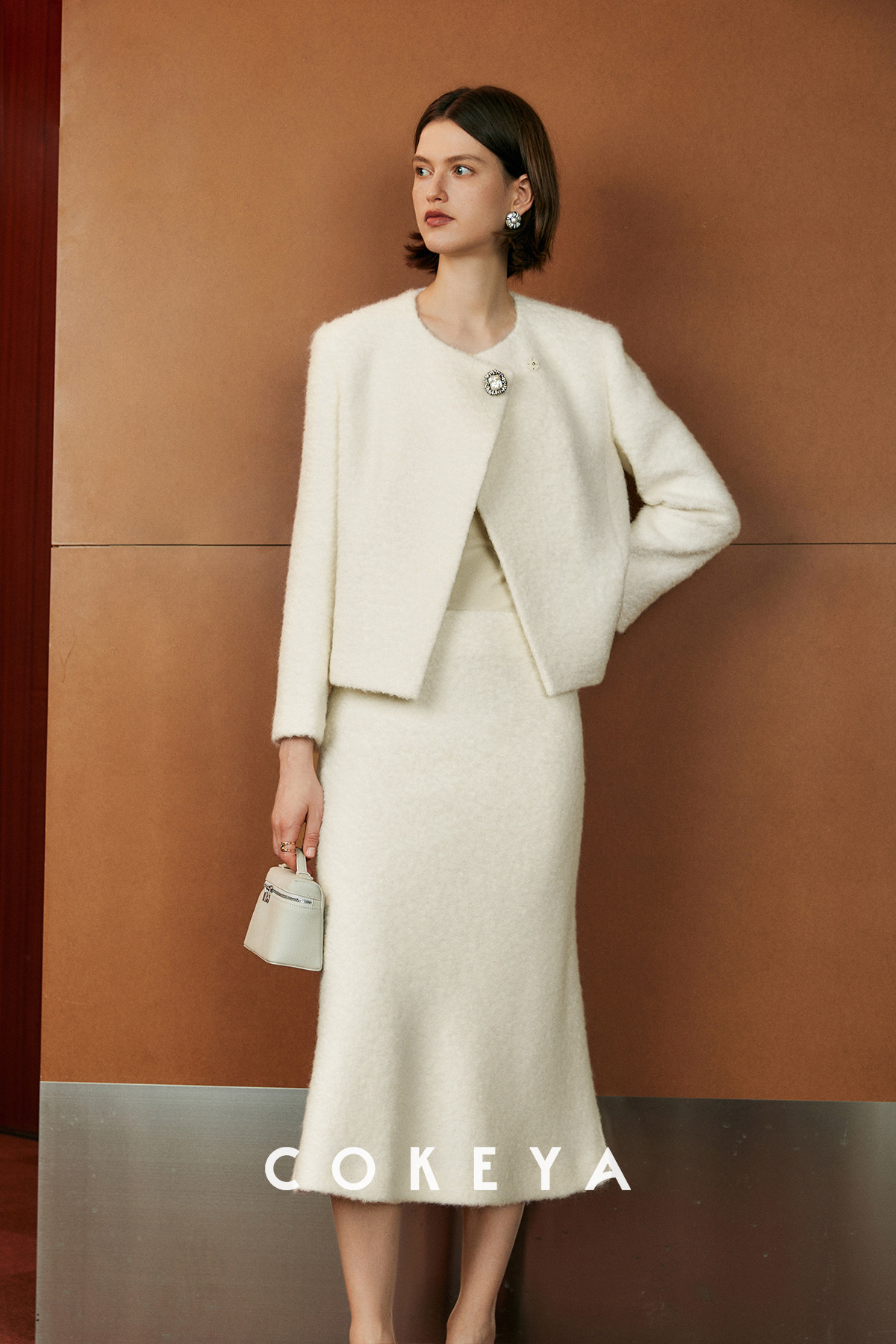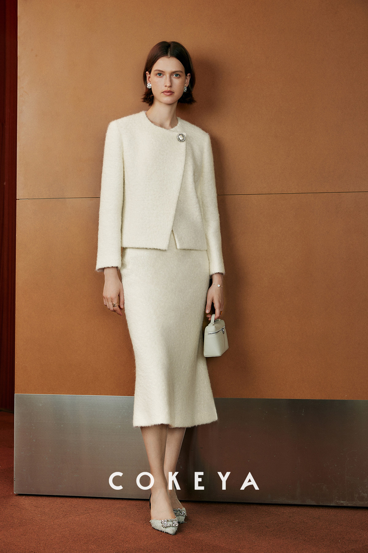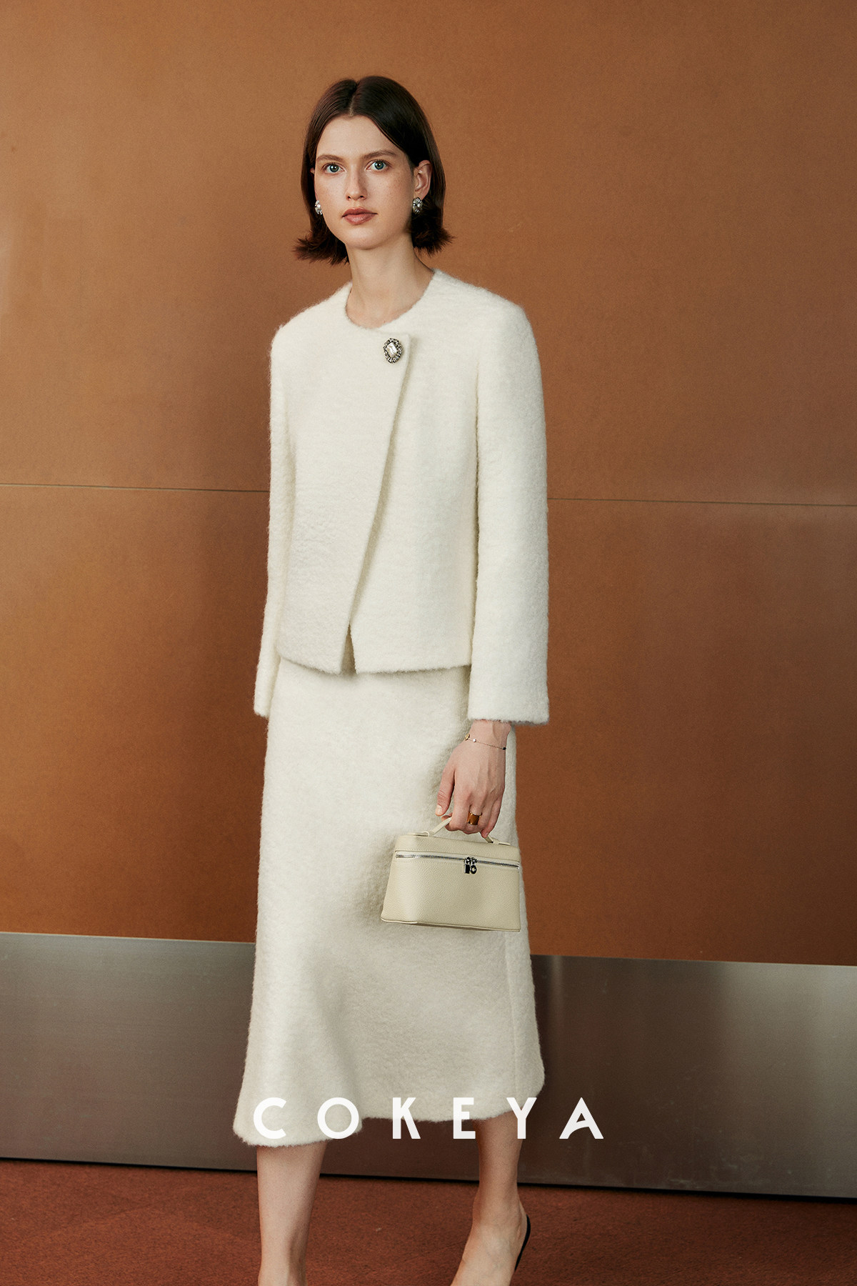 Cokeya/Elegant "Baroque" Consinee Mohair Wool Tweed Jacket and Skirt Set for Women