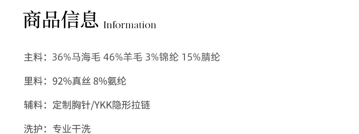 Material Composition 46% Wool, 36% Mohair, 15% Polyacrylic Fiber (Acrylic Fiber), 3% Polyamide Fiber (Nylon)