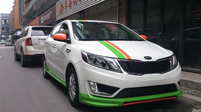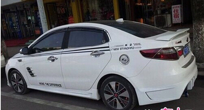 11-14 Kia K2 Modified Small Body Kit, Old Model K2 with Front and Rear Lip, Side Skirts, Small Body Kit, and Rear Wing