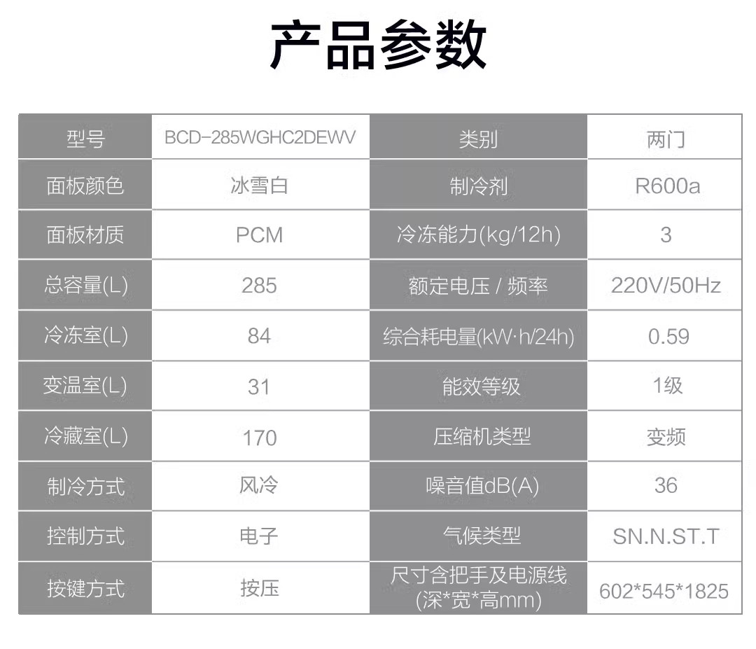 Color Classification Ice and Snow White 285 Liters,Ice and Snow White 285 Liters[Ten Years Warranty for Compressor],Ice and Snow White 285 Liters[Ten-Year Warranty on the Entire Machine],Ice and Snow White 251 Liters,Ice and Snow White 251 Liters[Ten Years Warranty for Compressor],Ice and Snow White 251 Liters[Ten-Year Warranty on the Entire Machine]