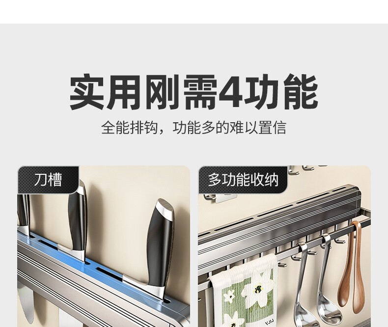 German Imported Kitchen Hook Rack, No-Drill Storage Rack, Hanging Rod, Wall-Mounted Multifunctional Knife Holder, Kitchen Utensil Organizer