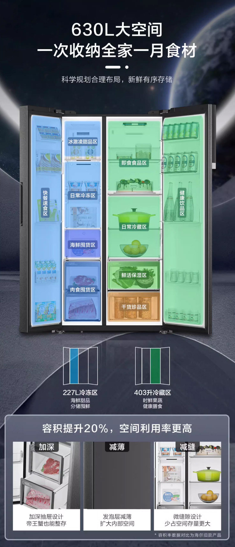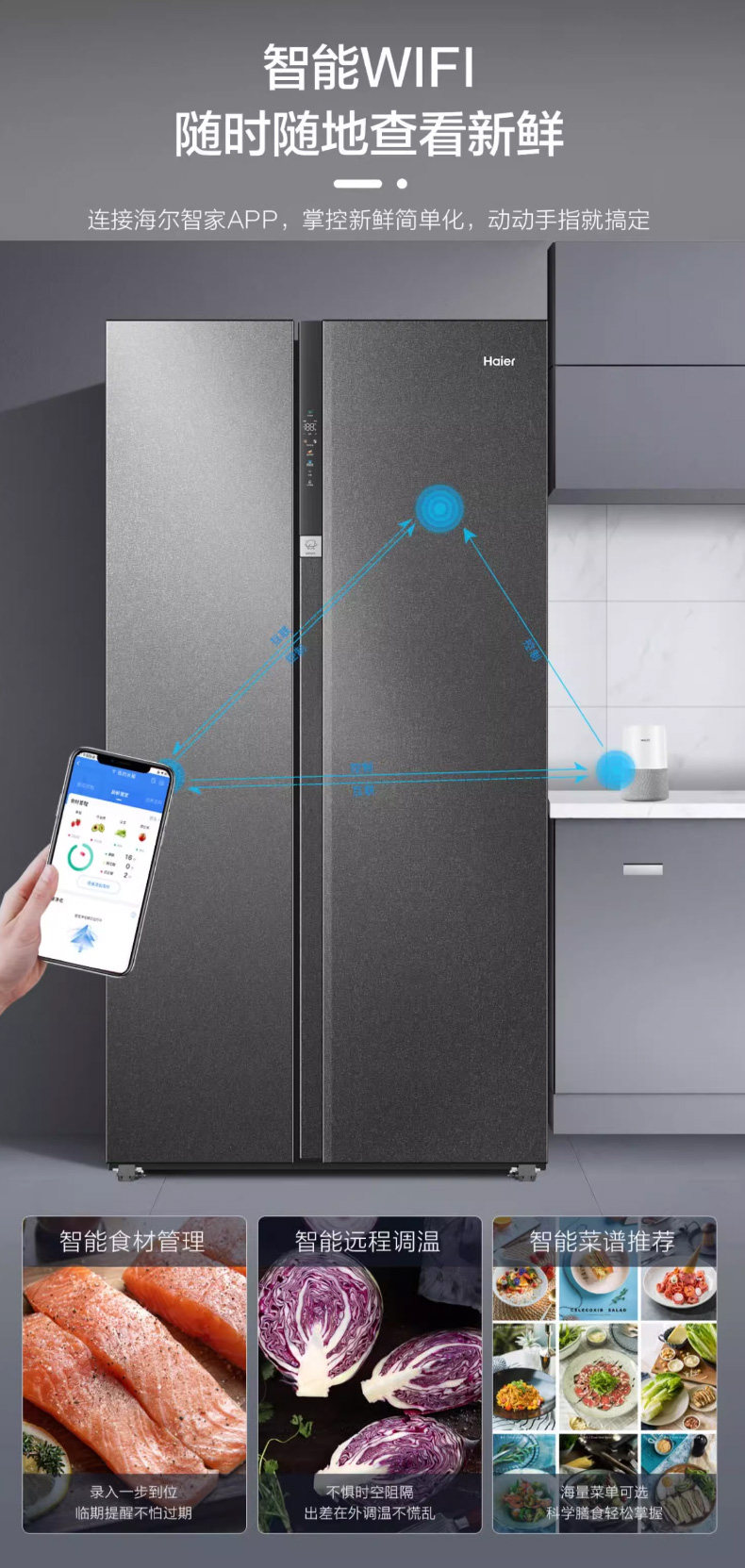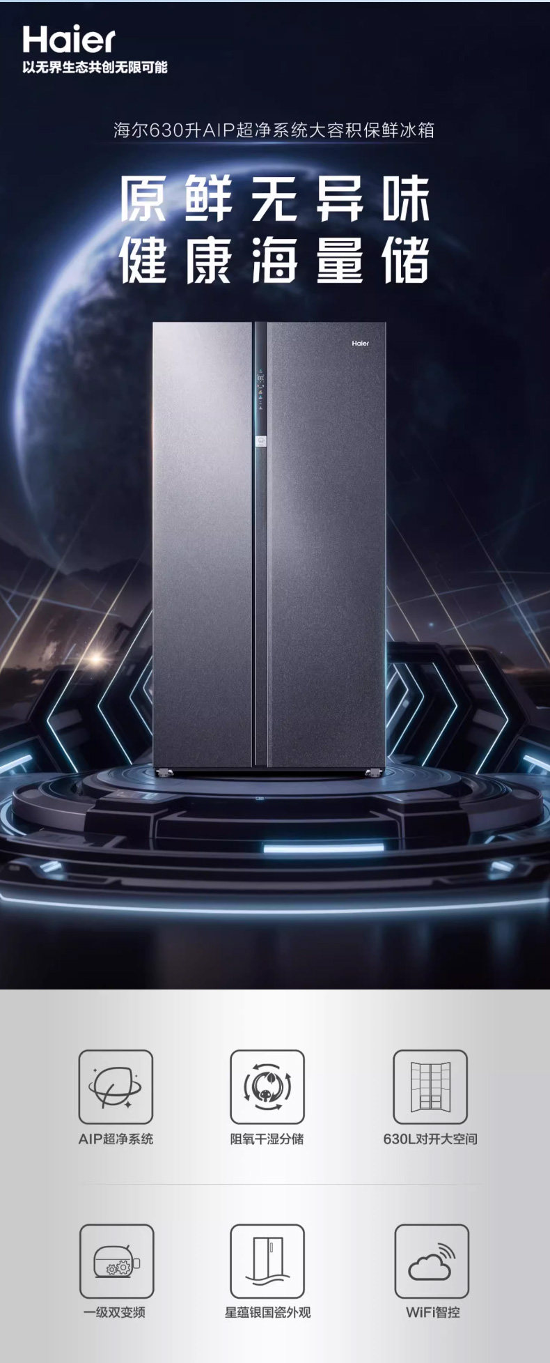 Haier Refrigerator 630L Double-door Large Capacity Class Energy Efficiency Home Inverter Air-cooled Frost-Free Smart Official