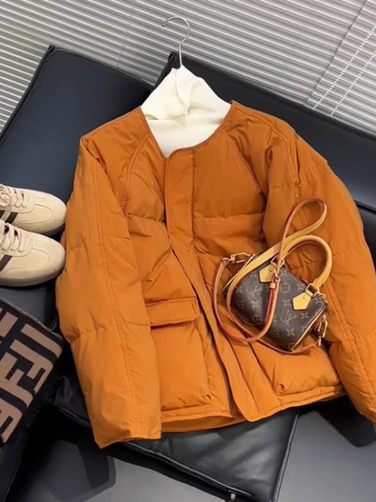 Color Classification Brown Jacket [This Year's Popular, Beautiful, High-End, Luxurious, Niche, Unique, Chic, High-End, Super Good-Looking, Bread, American Retro, Plus Velvet, Thickened, Elegant, High-End, down Jacket, Cotton Jacket, Autumn and Winter]