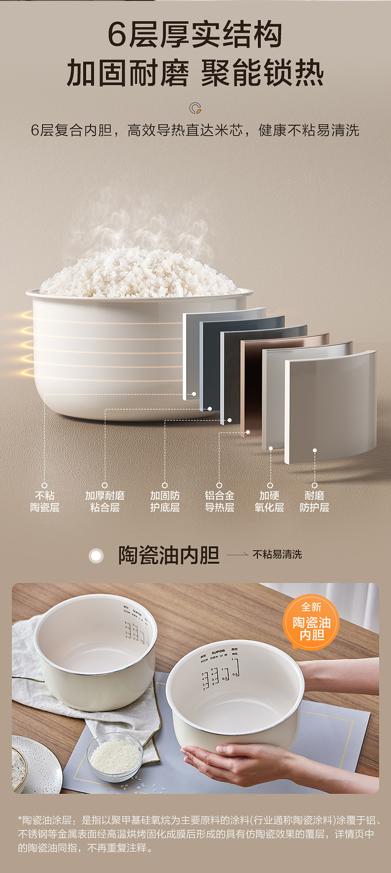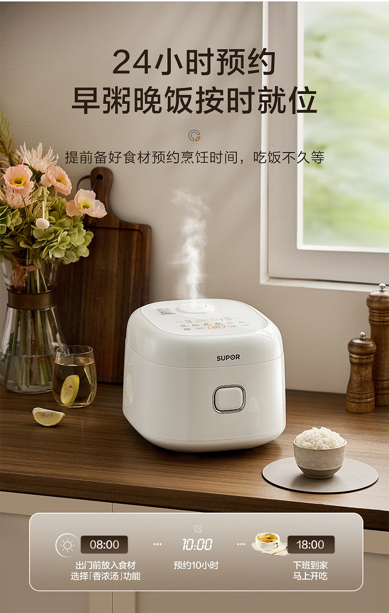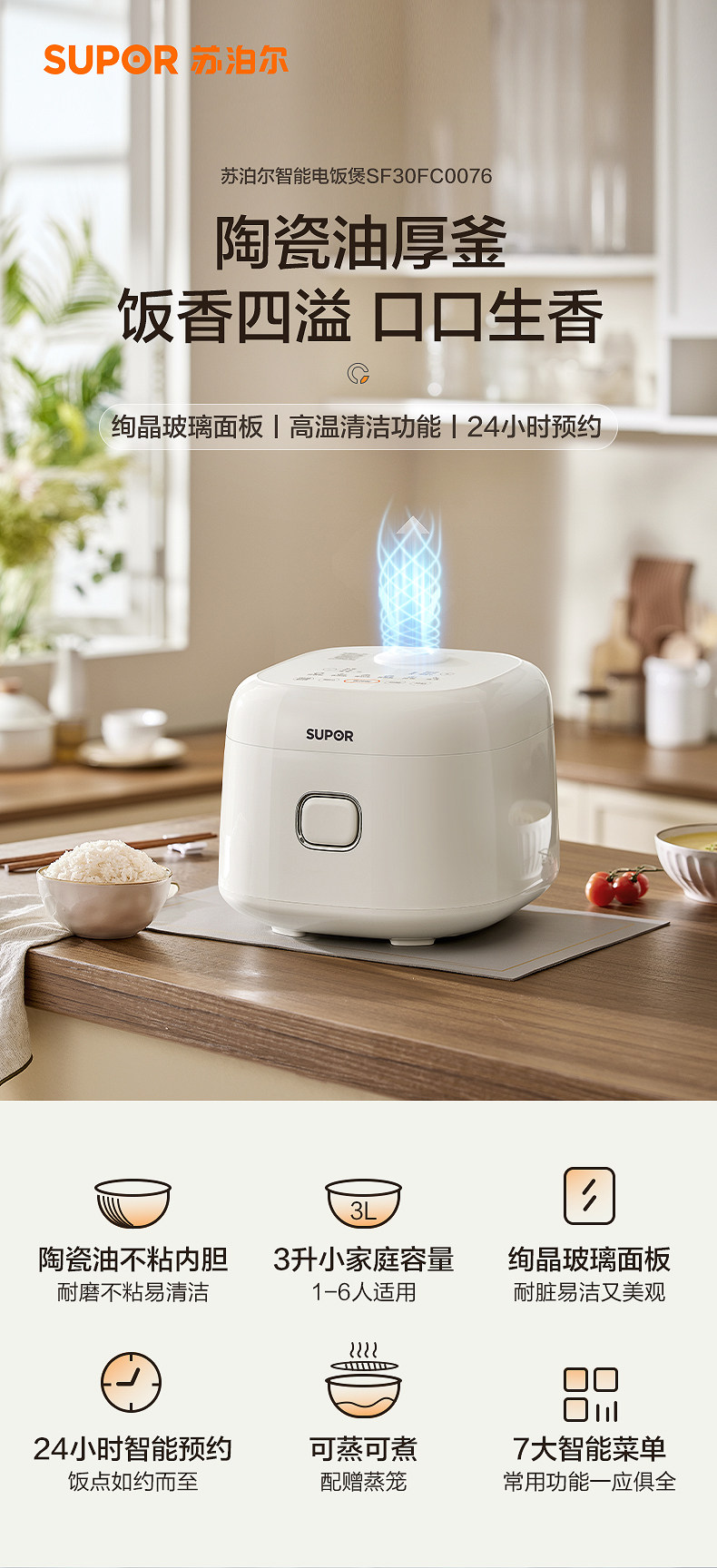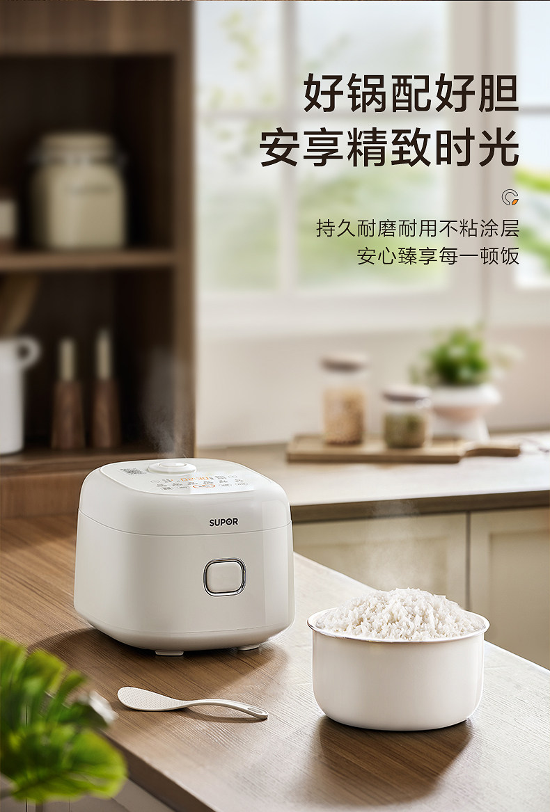 Supor Electric Rice Cooker for Home Use, Small Multifunctional Model for 2-4 People, Ceramic Oil-Coated 3L Rice Cooker, Official Flagship Store Genuine Product