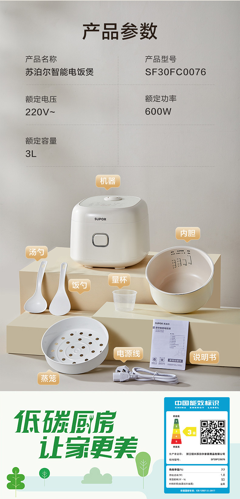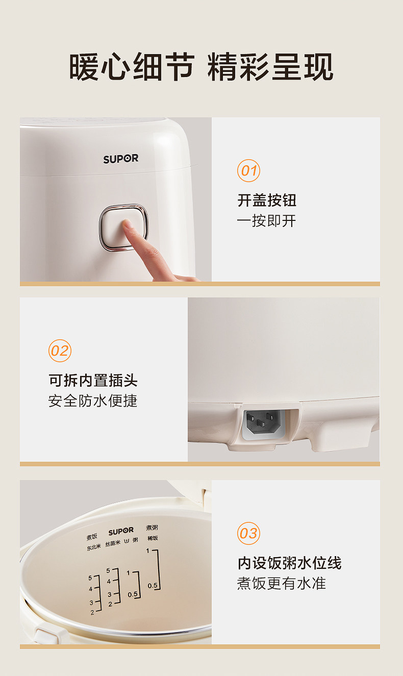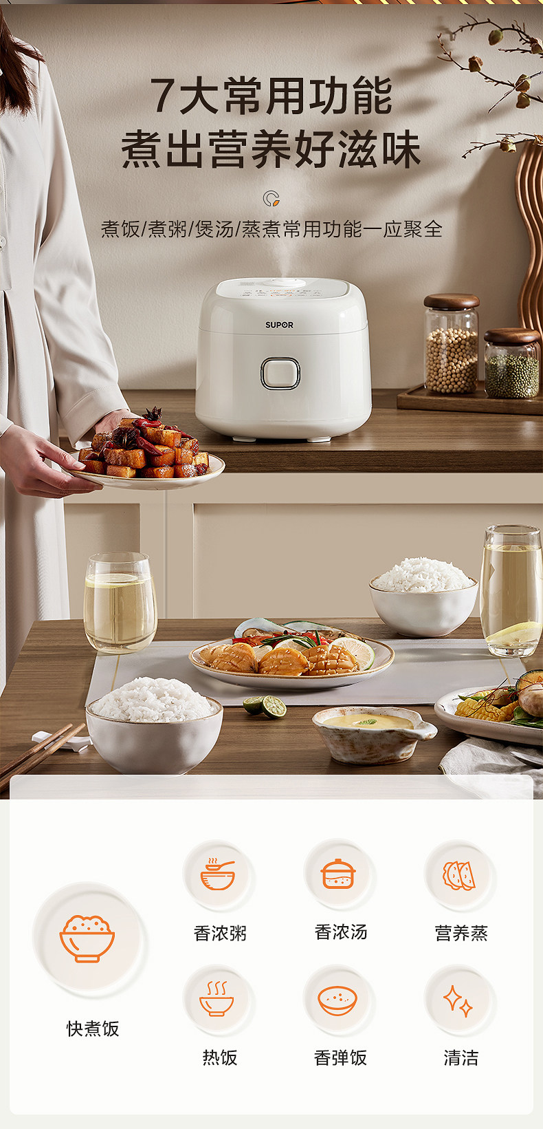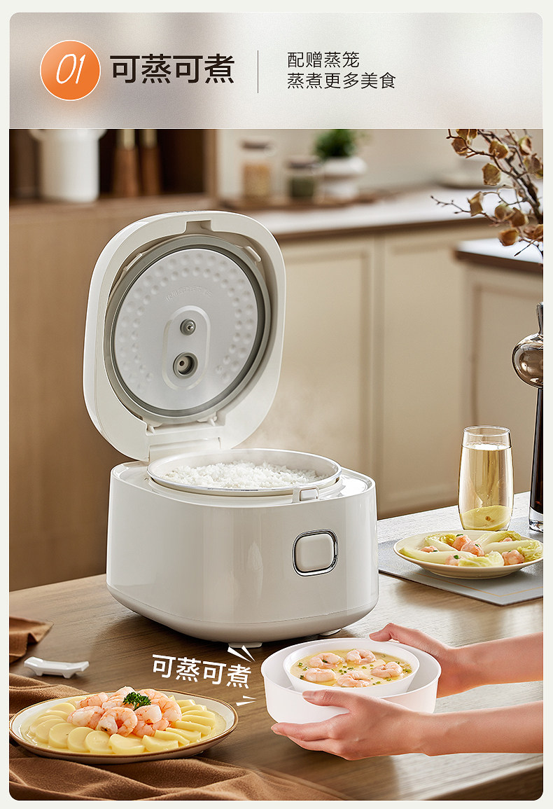 Supor Electric Rice Cooker for Home Use, Small Multifunctional Model for 2-4 People, Ceramic Oil-Coated 3L Rice Cooker, Official Flagship Store Genuine Product
