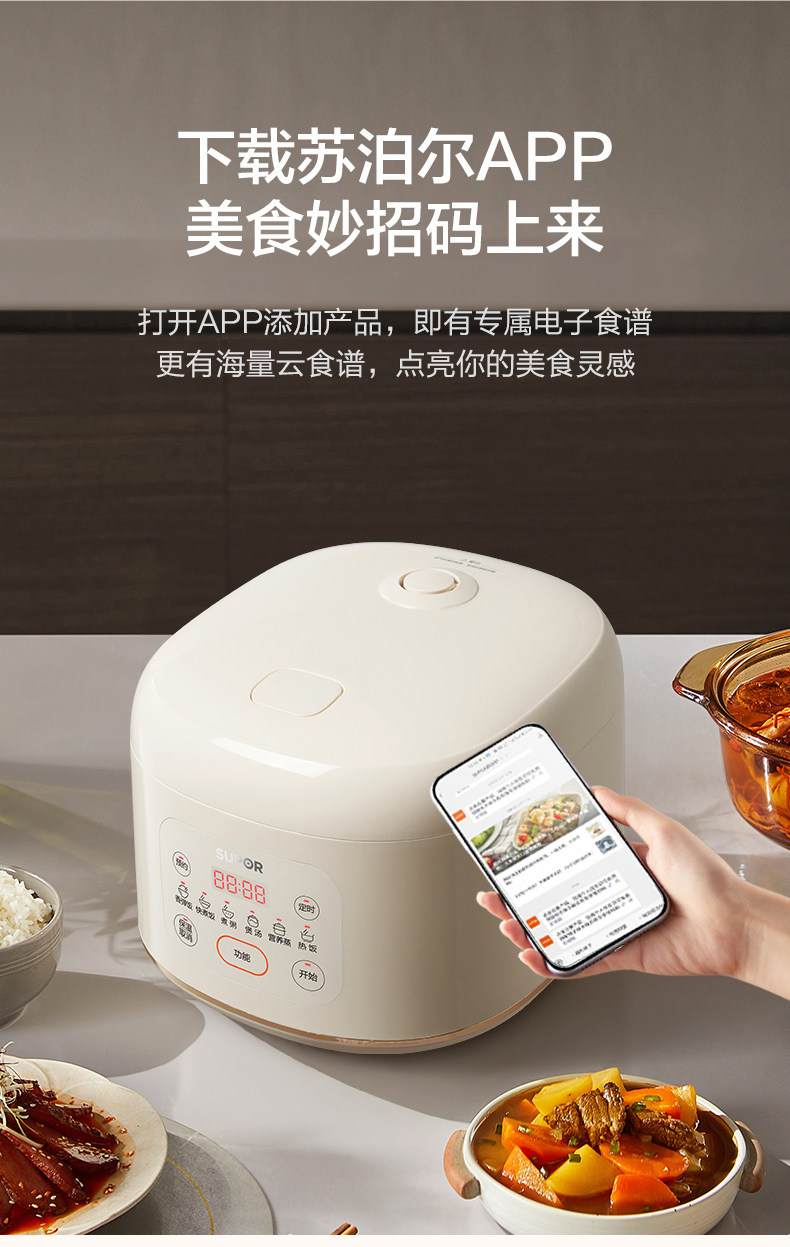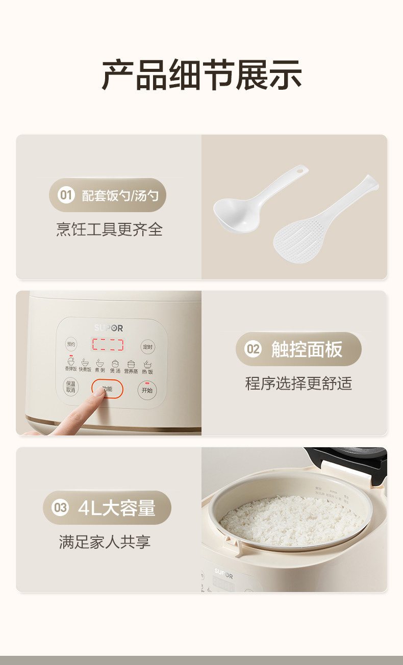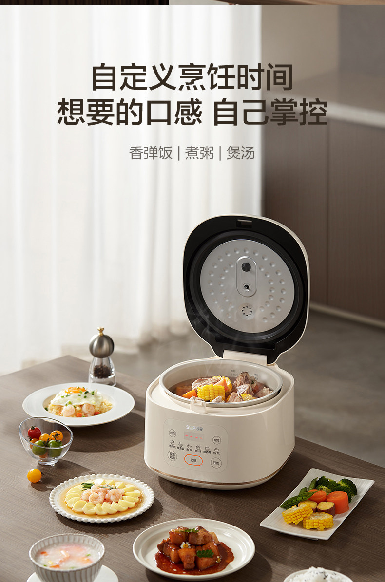 Supor Electric Rice Cooker for Home Use, 4L Large Capacity, Smart Model for 3-6 People, Ceramic Cooking Pot, Official Flagship Store Genuine Product