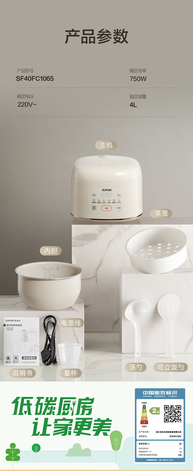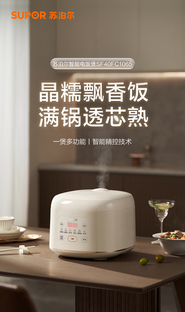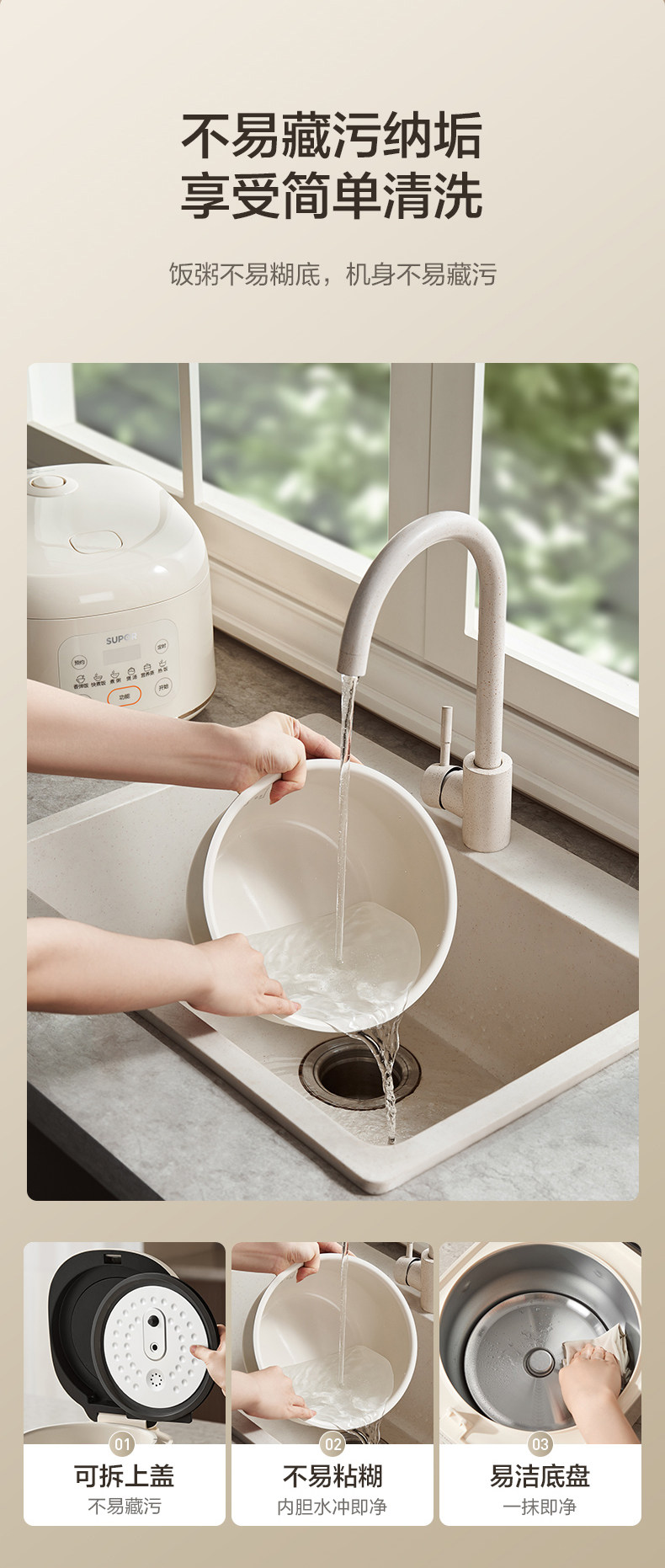 Supor Electric Rice Cooker for Home Use, 4L Large Capacity, Smart Model for 3-6 People, Ceramic Cooking Pot, Official Flagship Store Genuine Product