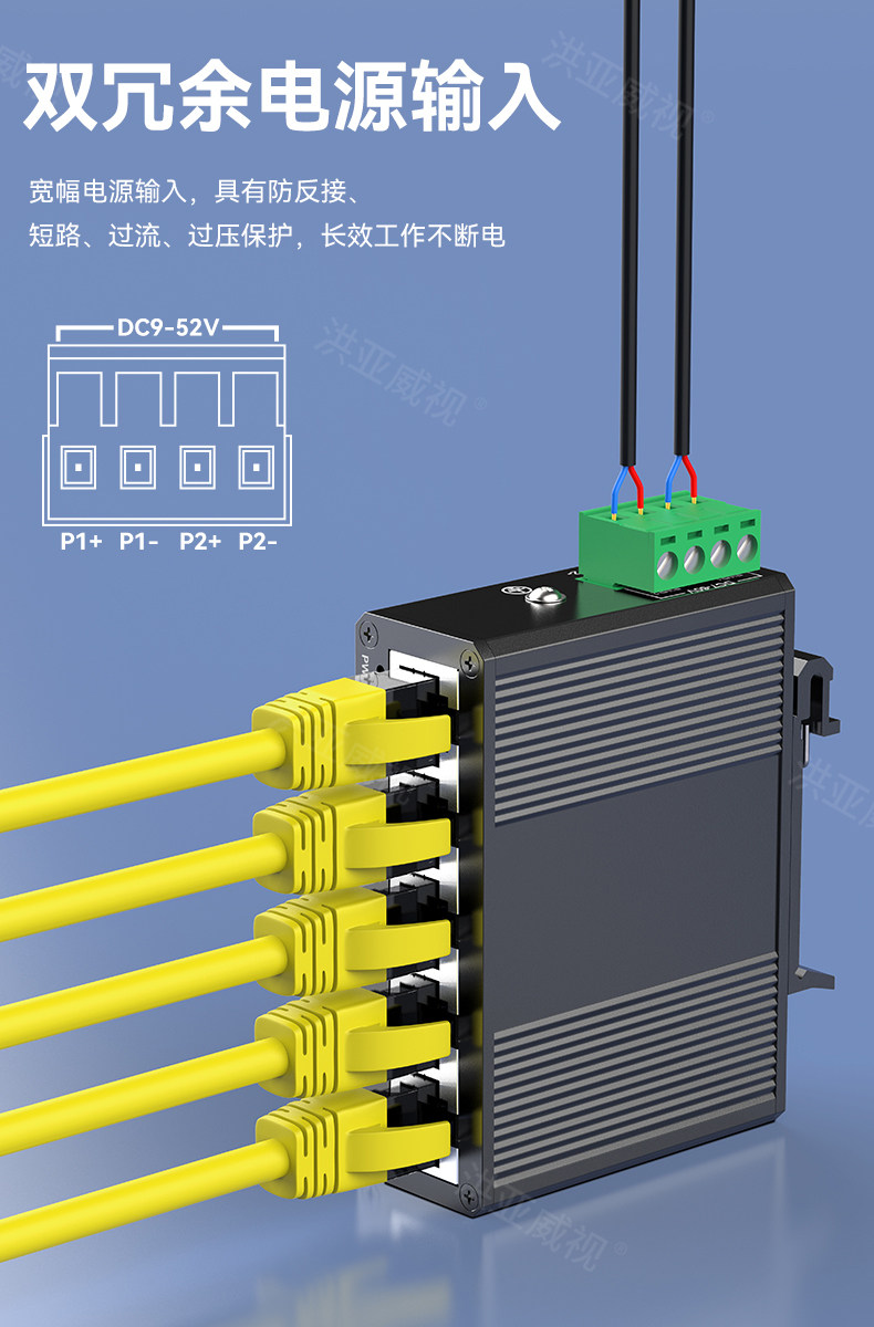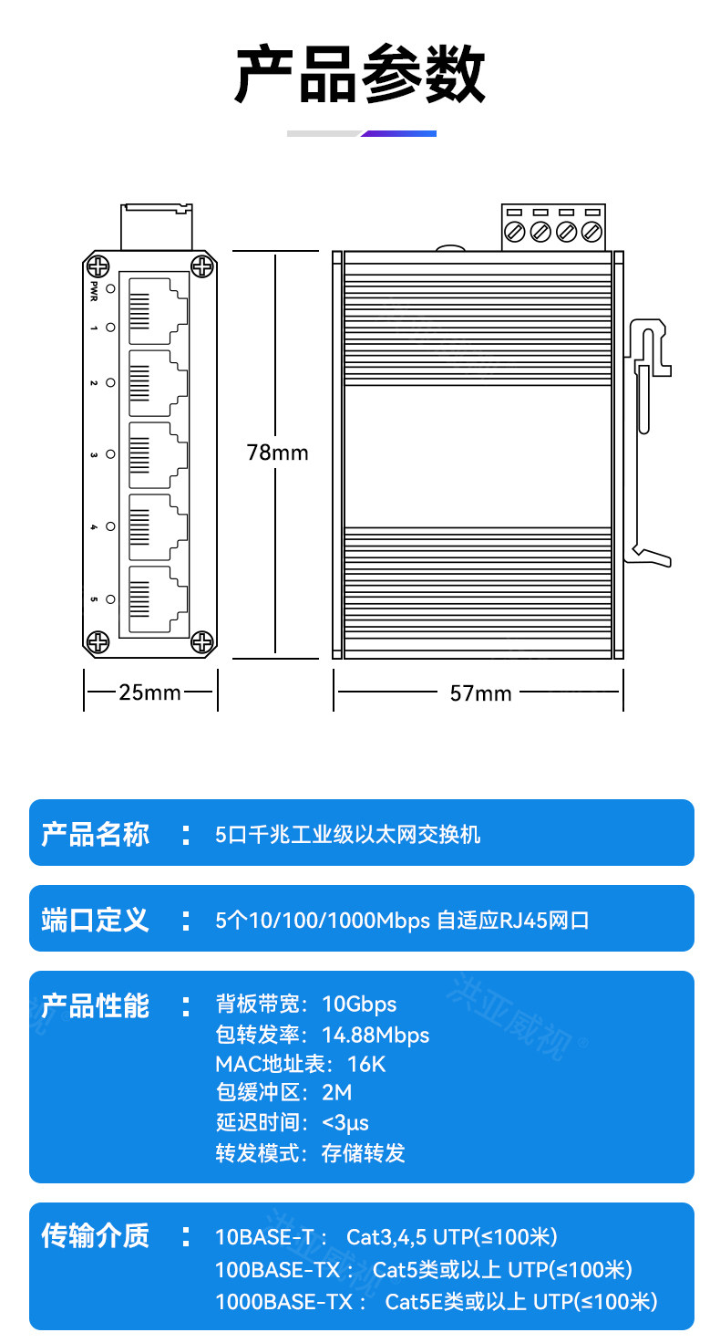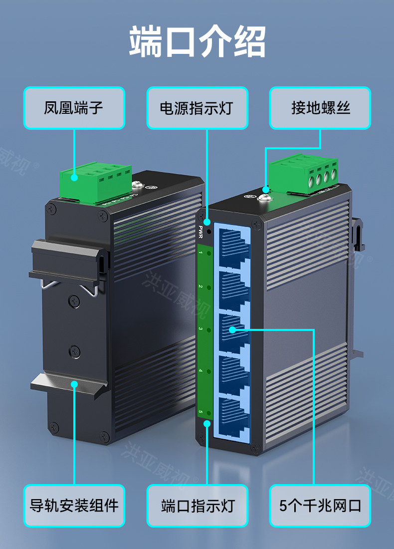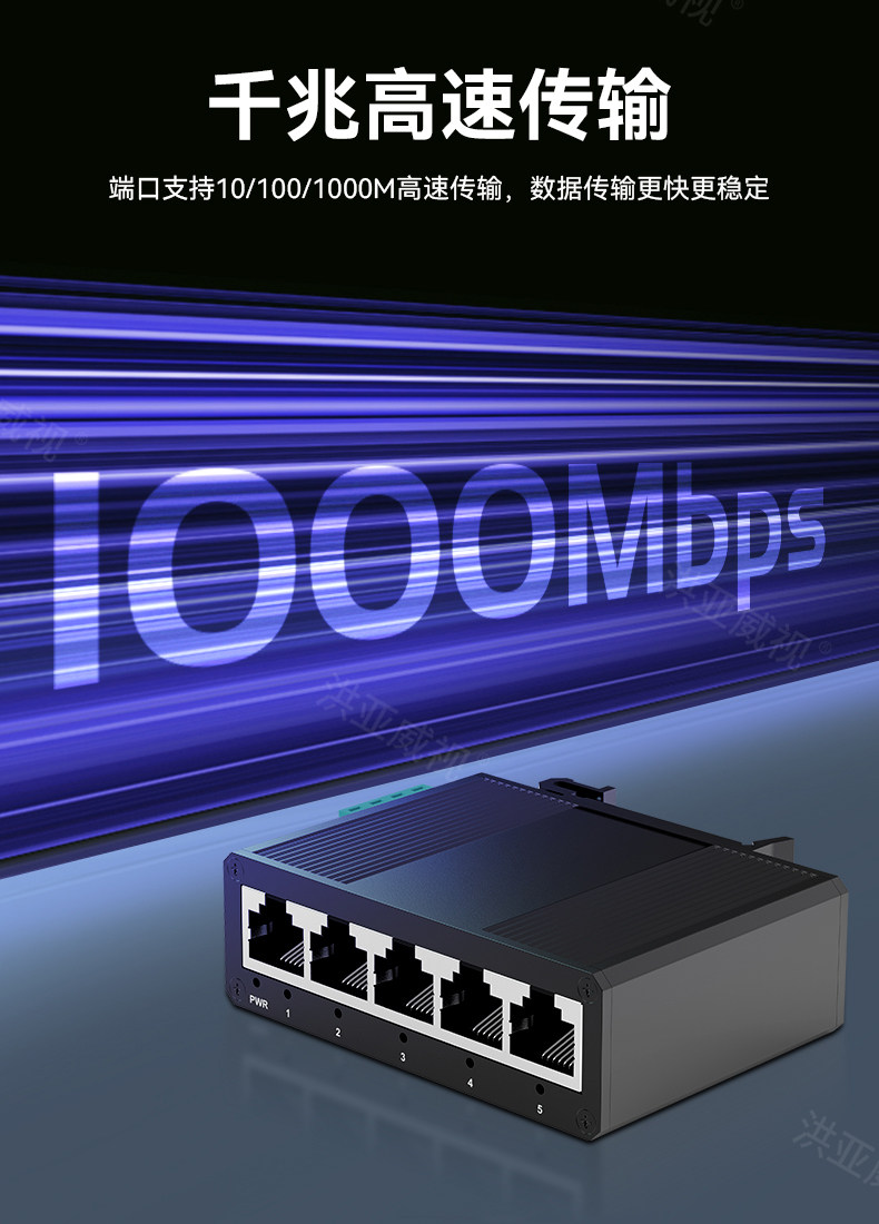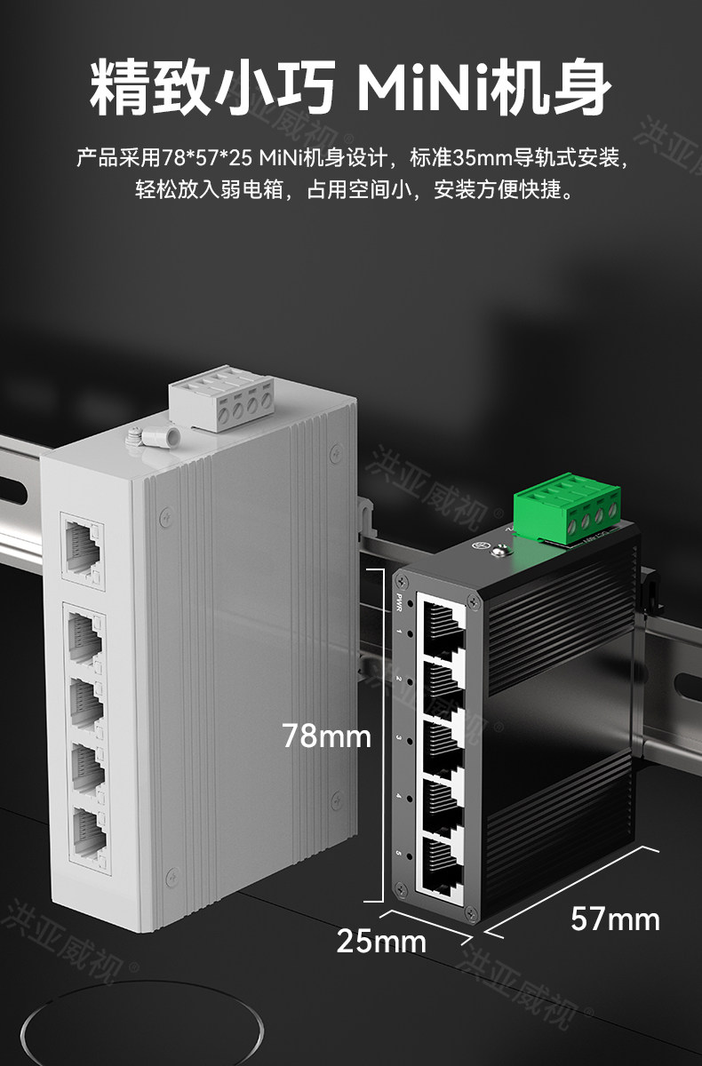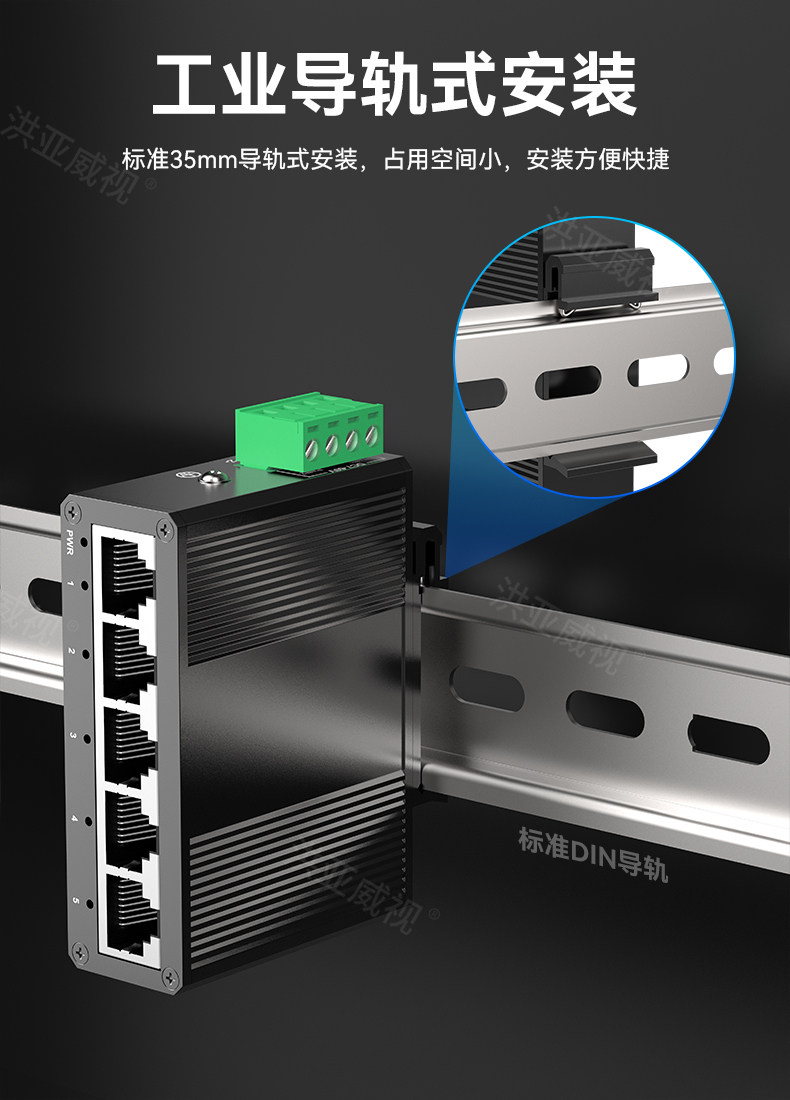 Hongya Vision 5-Port Gigabit Industrial-Grade Switch, Mini Non-Managed Din Rail Industrial-Grade Switch, Ethernet Switch, Network Cable Splitter, 4Kv Lightning Protection