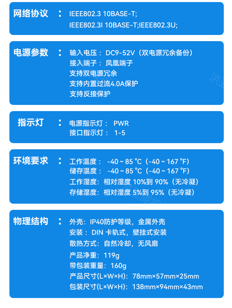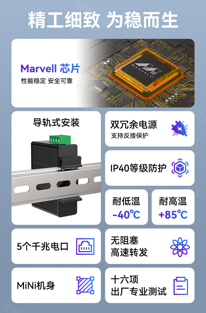 Color Classification Industrial Grade 5-Port Gigabit Switch Mini