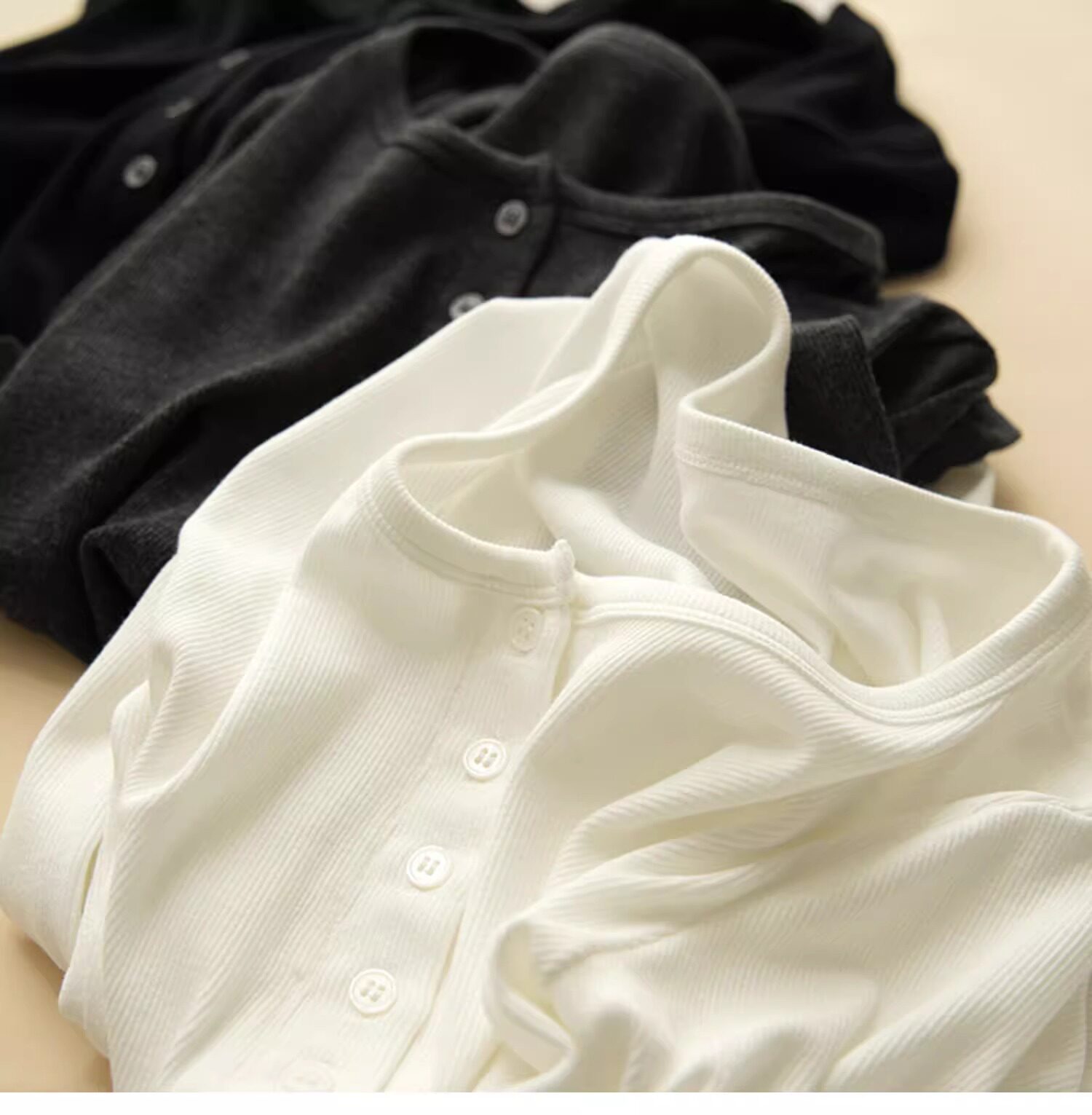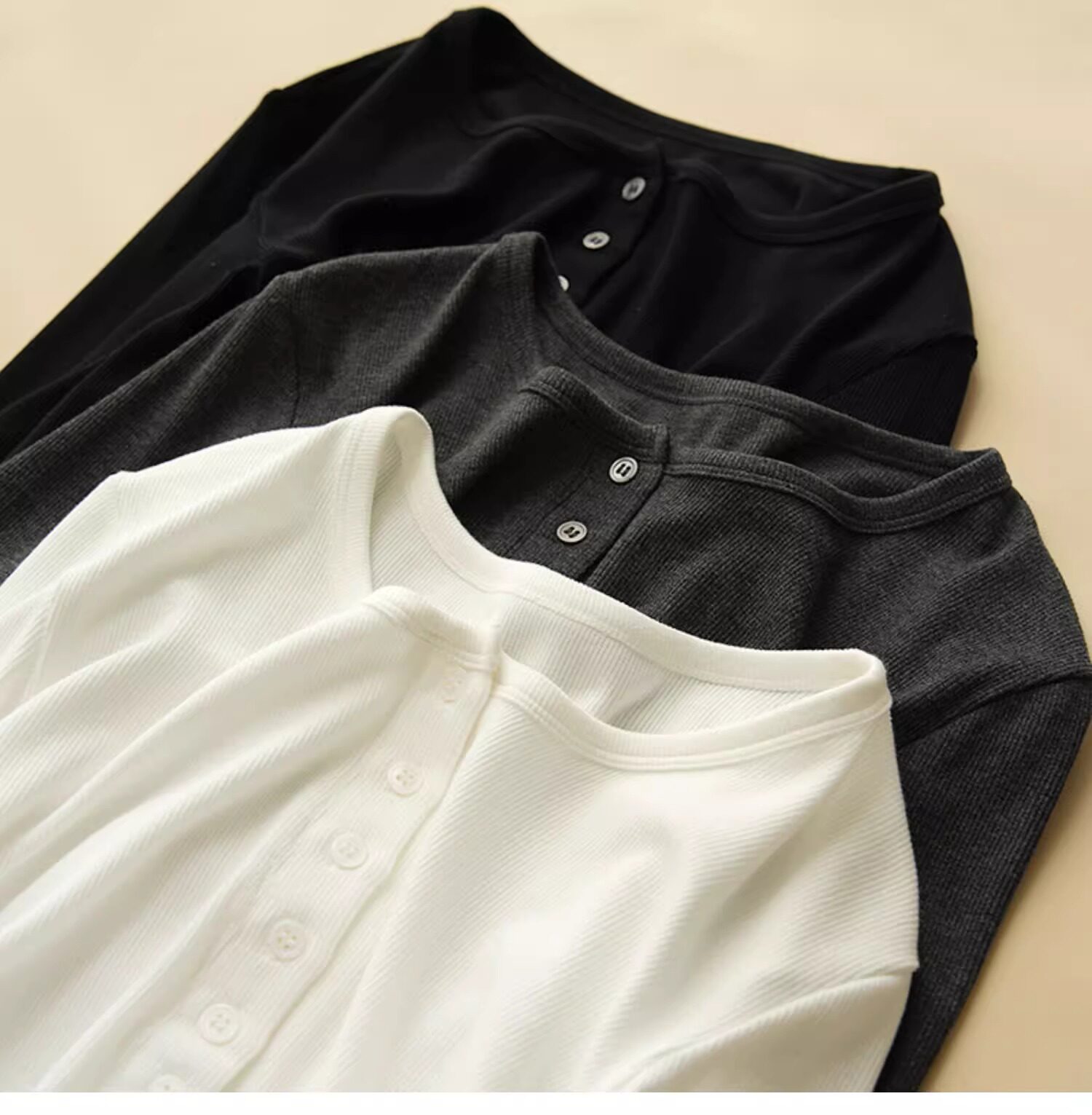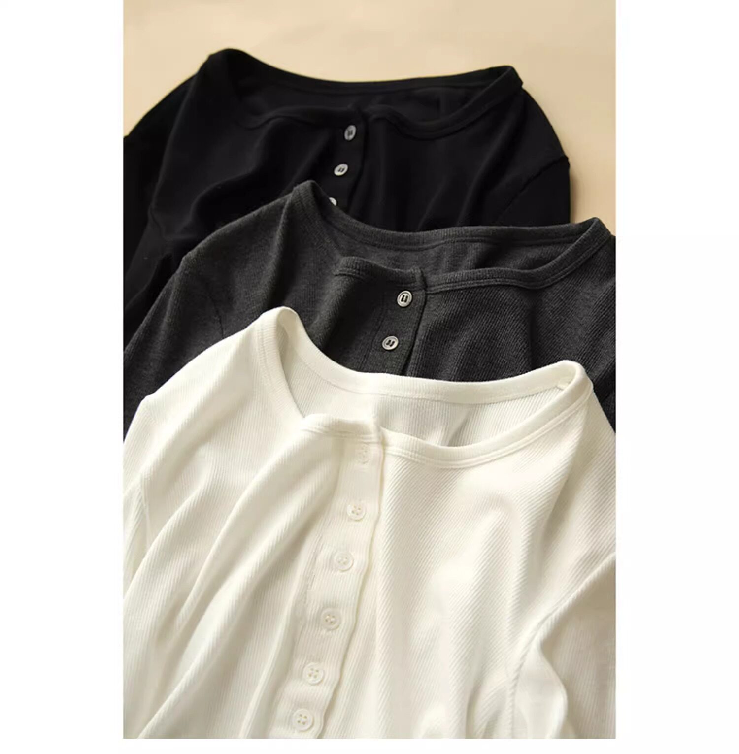Threaded Button Henry Collar Long-Sleeve Inner T-Shirt for Women, Autumn and Winter American Style Unique Half-Open Collar Slimming Base Shirt Top
