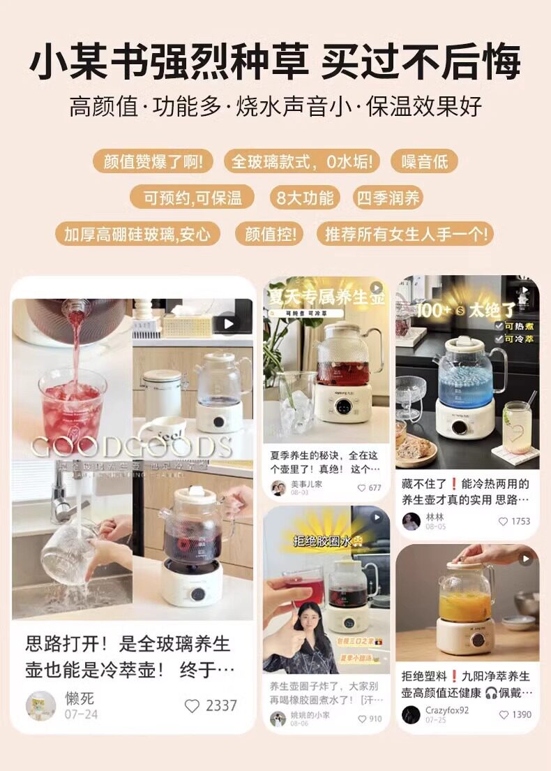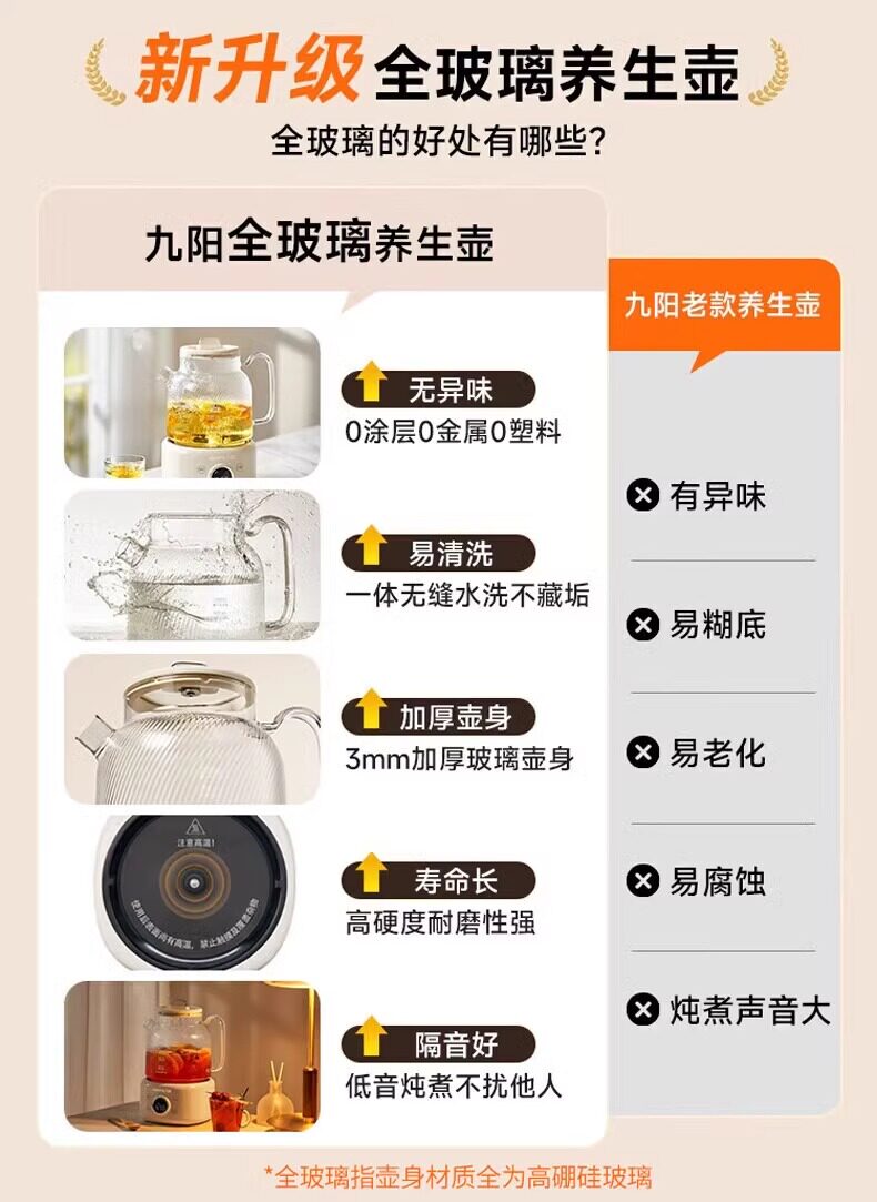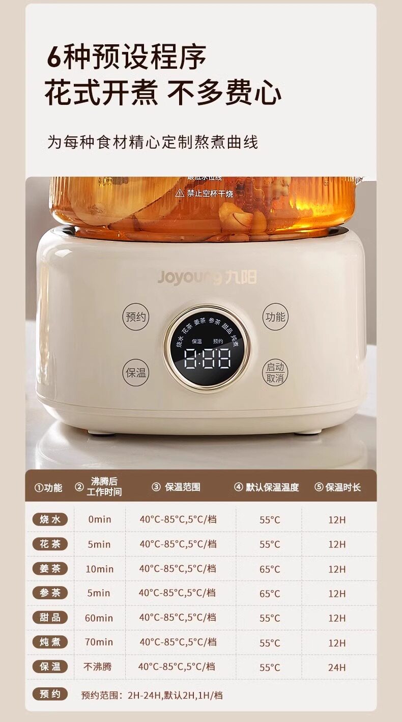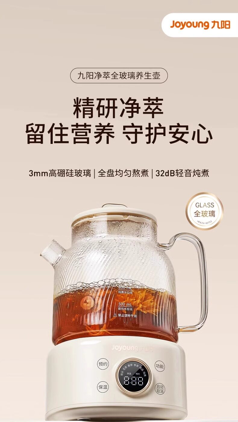 Joyoung All-Glass Constant Temperature Health Kettle for Home Use, Multifunctional Office Small-Sized Flower Tea and Water Boiling Kettle, Official New Model