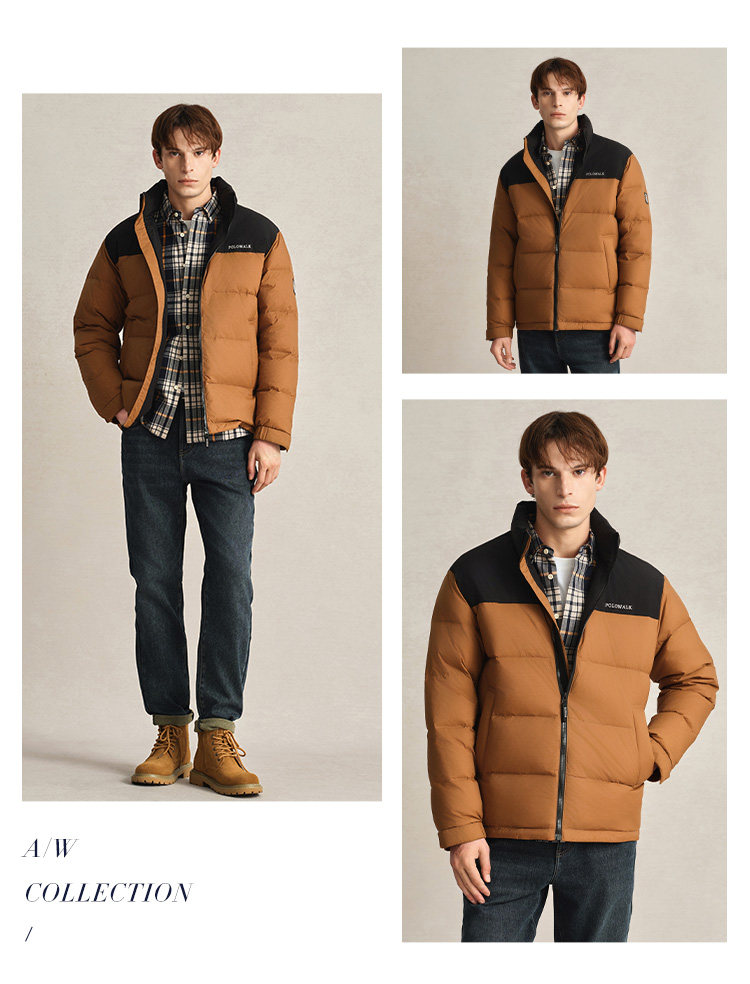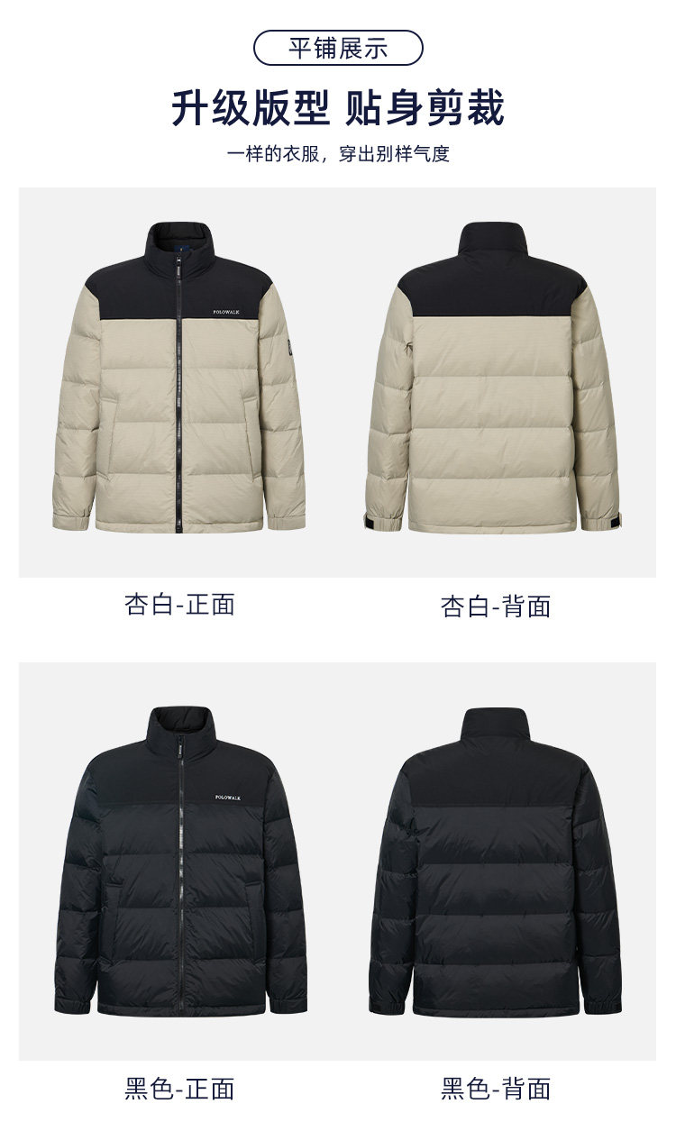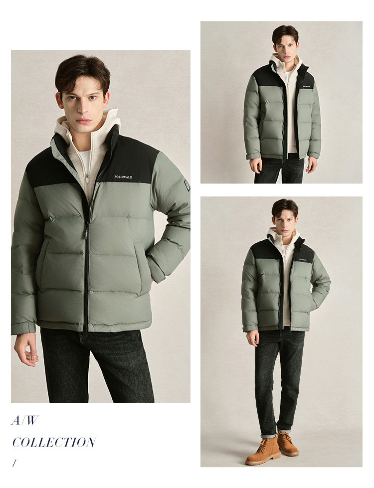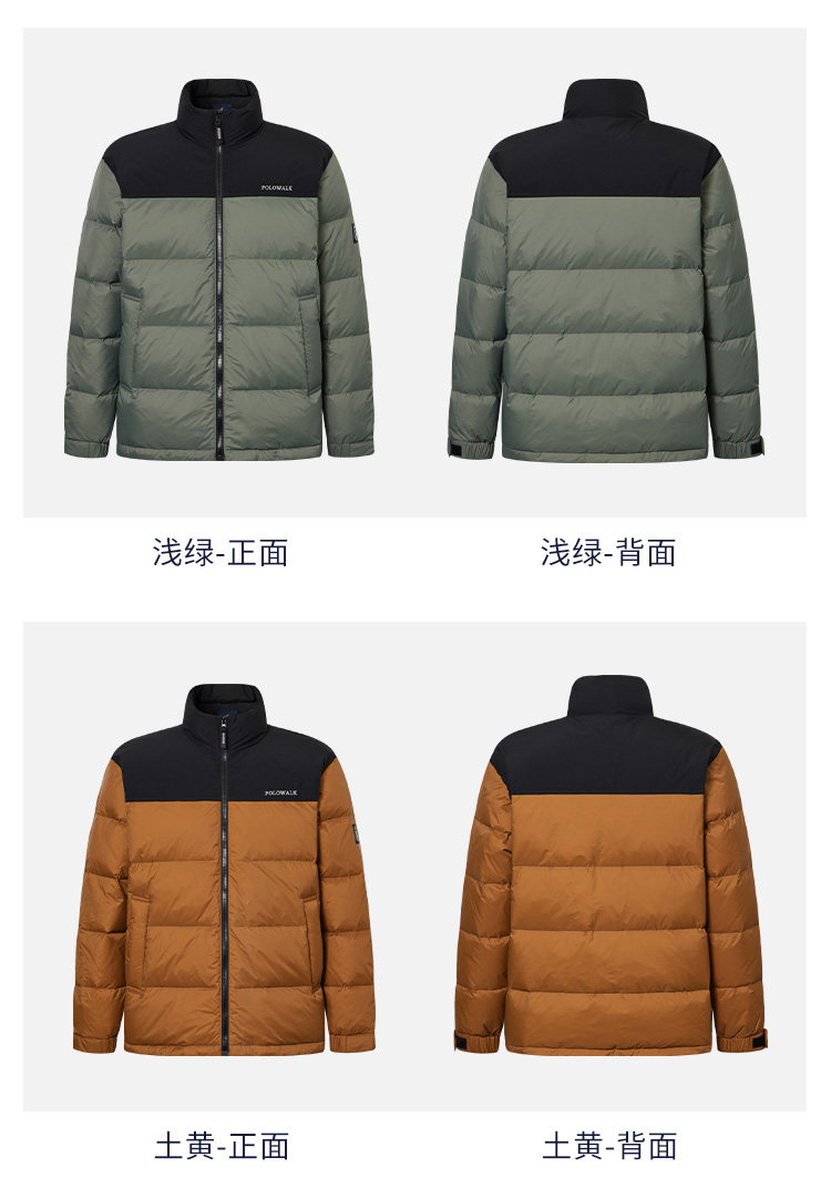 Polowalk Men's Stand-Up Collar down Jacket 2025 Winter New Paul Color-Block Casual Duck down Warm Puffer Jacket