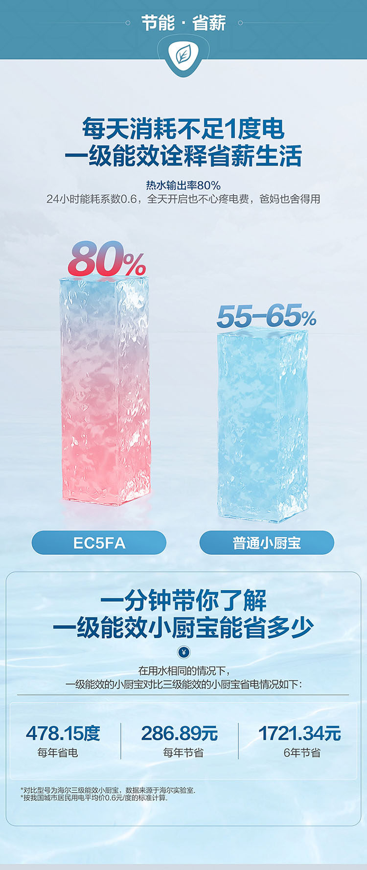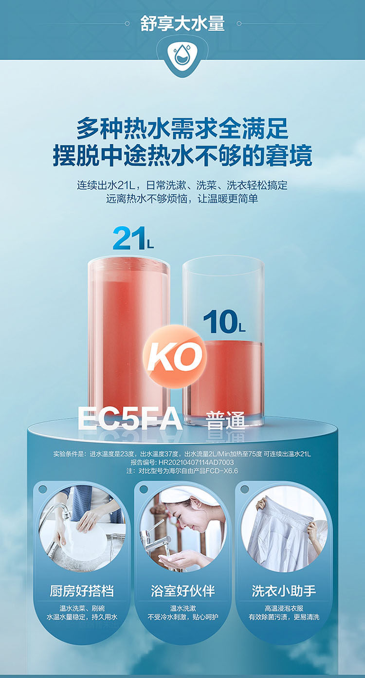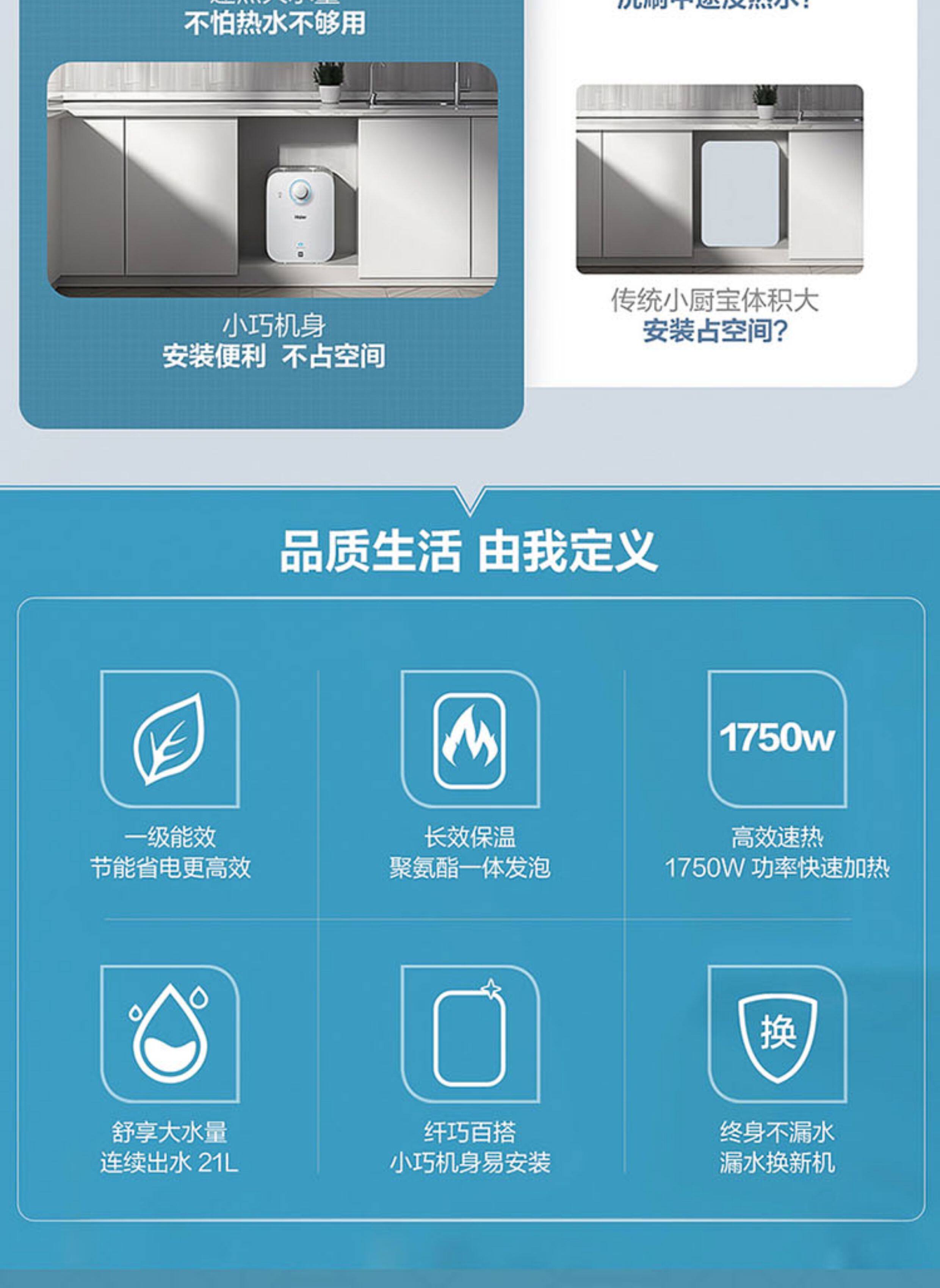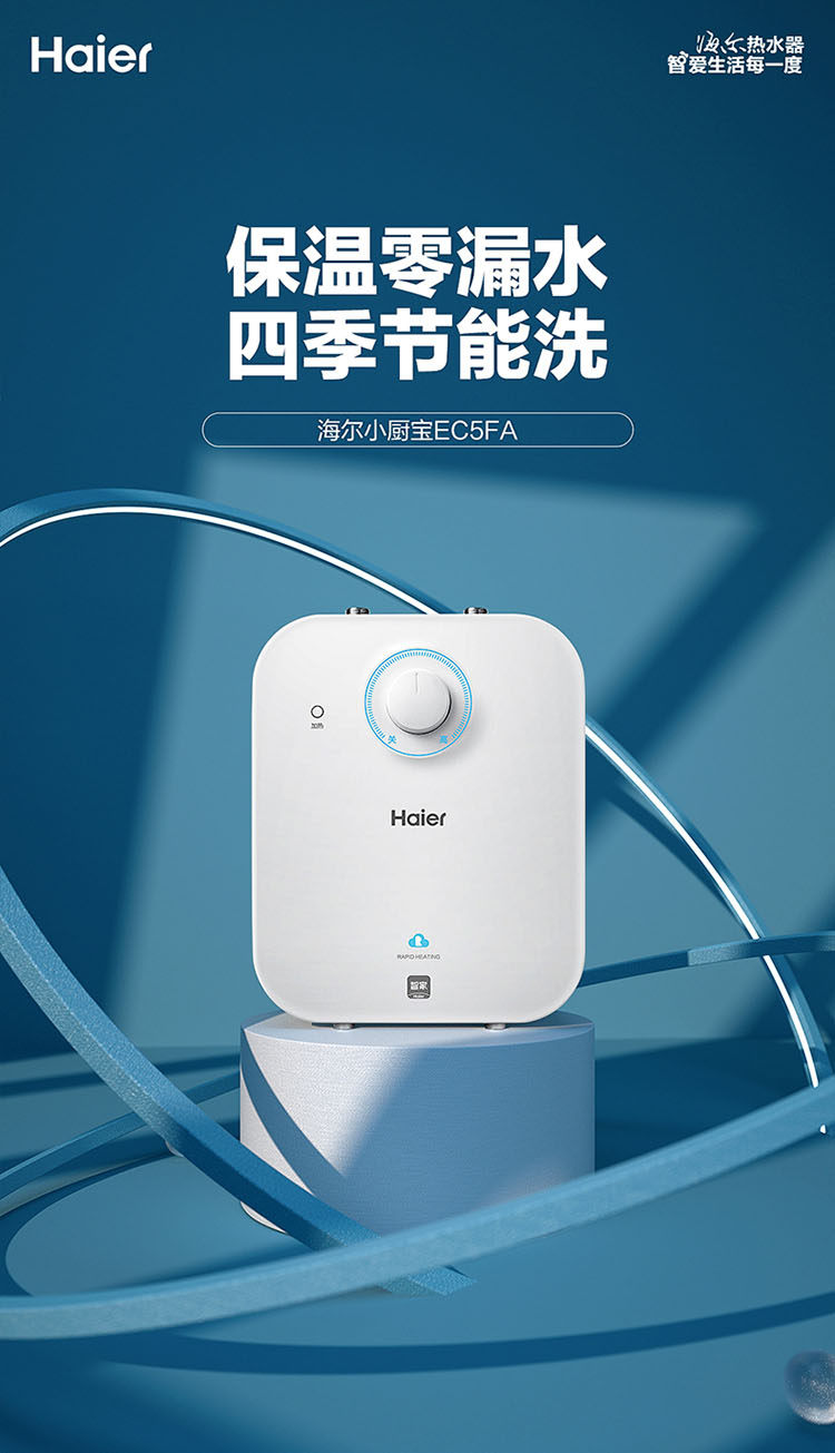 Haier Ec5Fa Small Kitchen Water Heater, Mini Electric Household Under-Counter Instant Hot Water Heater with Large Water Capacity