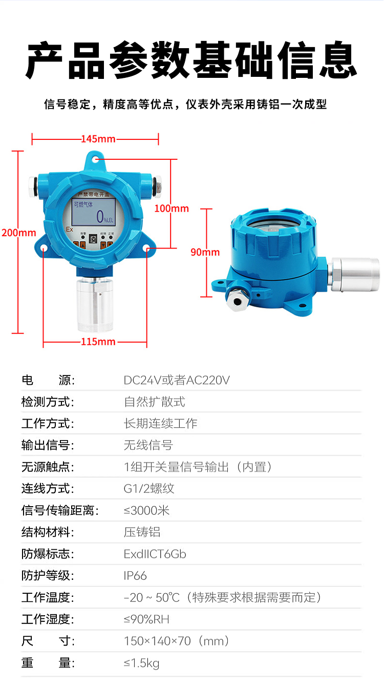 Ammonia Gas Detector, Toxic and Harmful Nh3 Concentration Alarm, Industrial Explosion-Proof Leak Sensor Probe Device