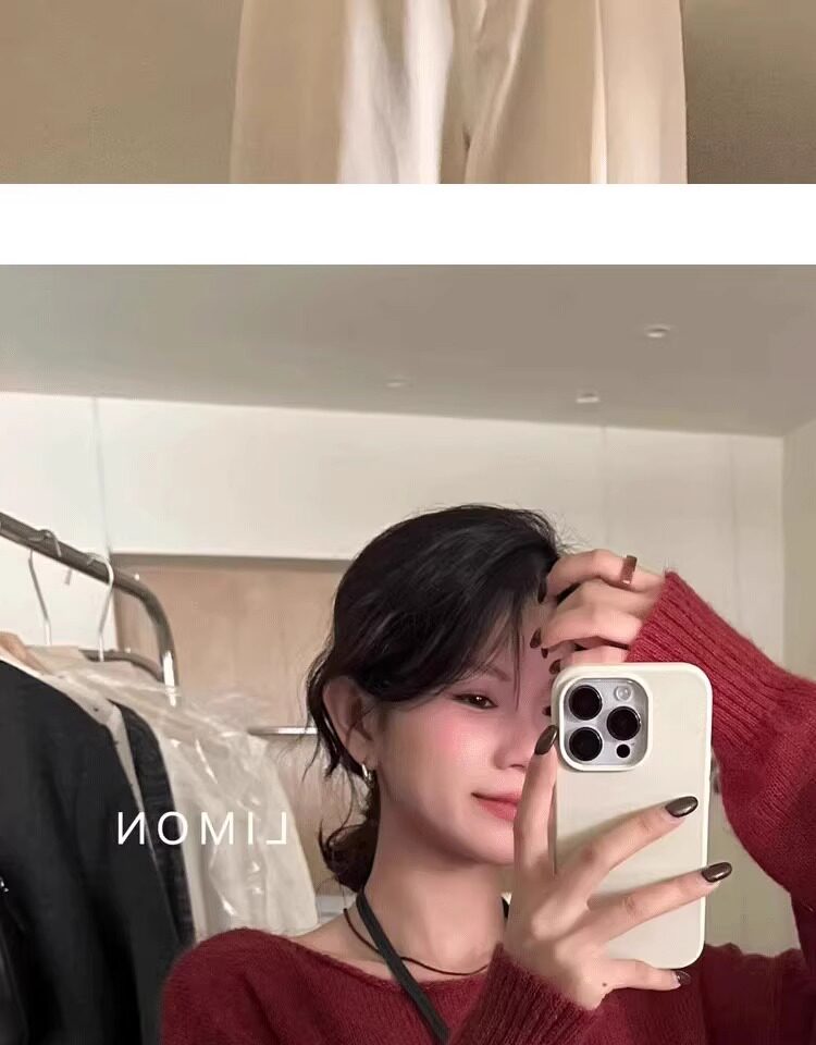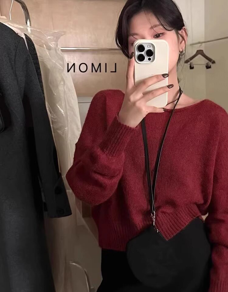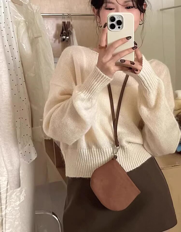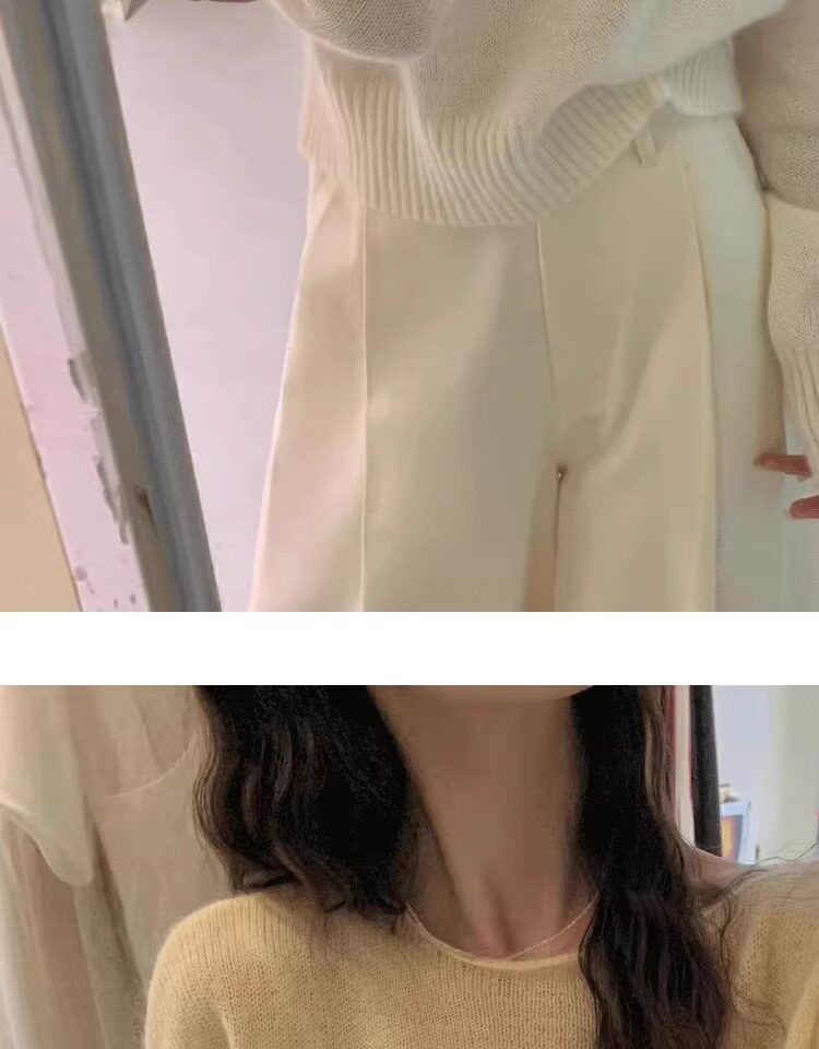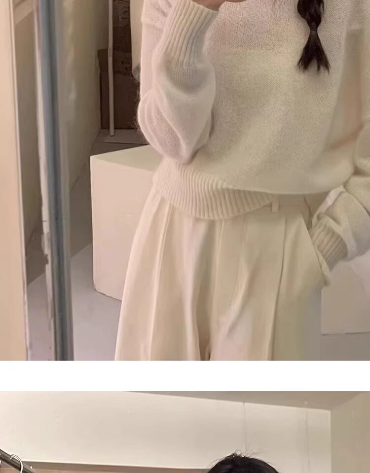 Klein Blue Gentle and Soft Mohair Knit Sweater for Women, New Spring Style, Off-Shoulder Base Layer Sweater Top