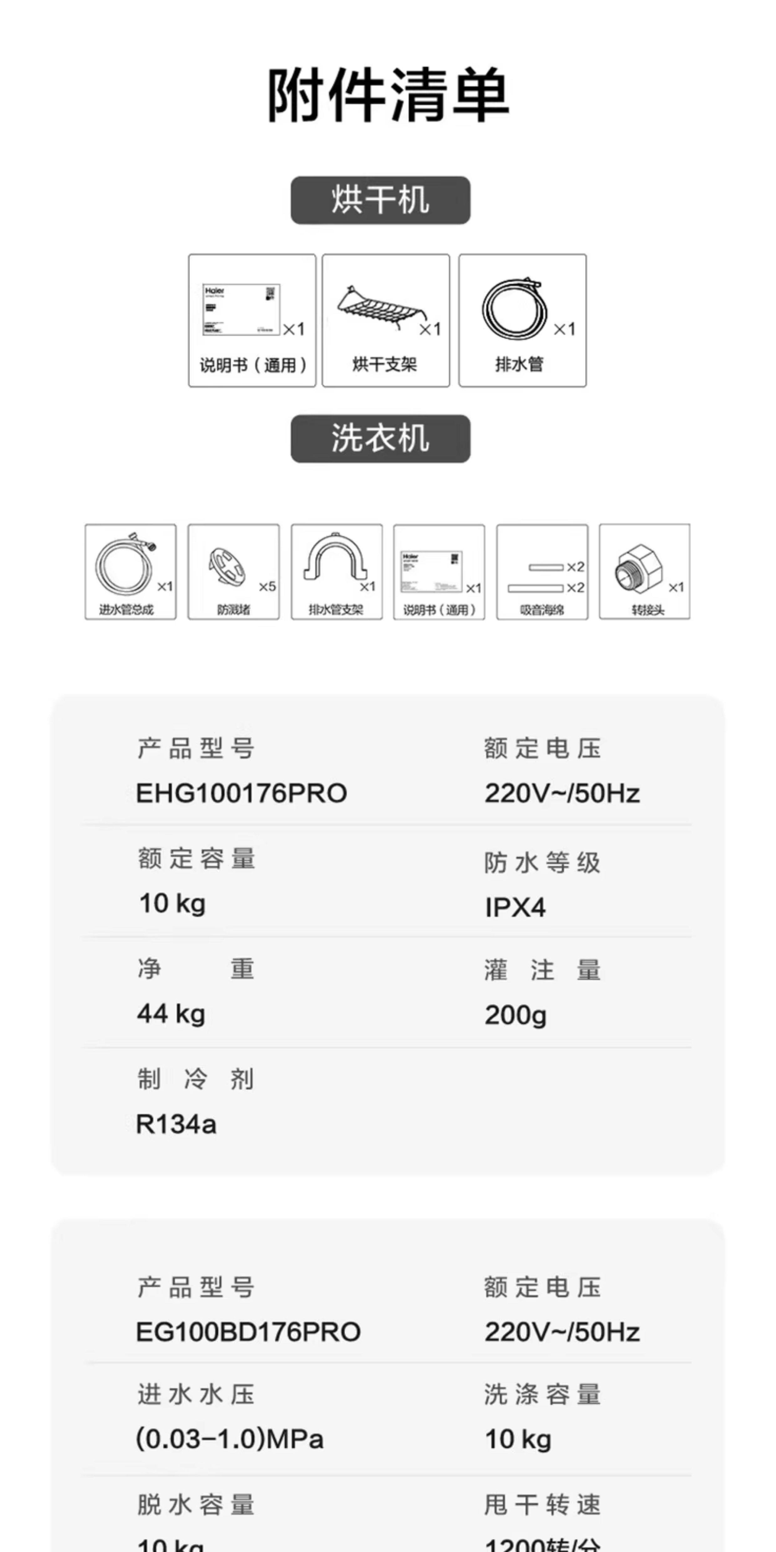 Haier 176Pro Washing and Drying Set 10kg Direct Drive Essence Washing Drum Washing Machine and Dryer