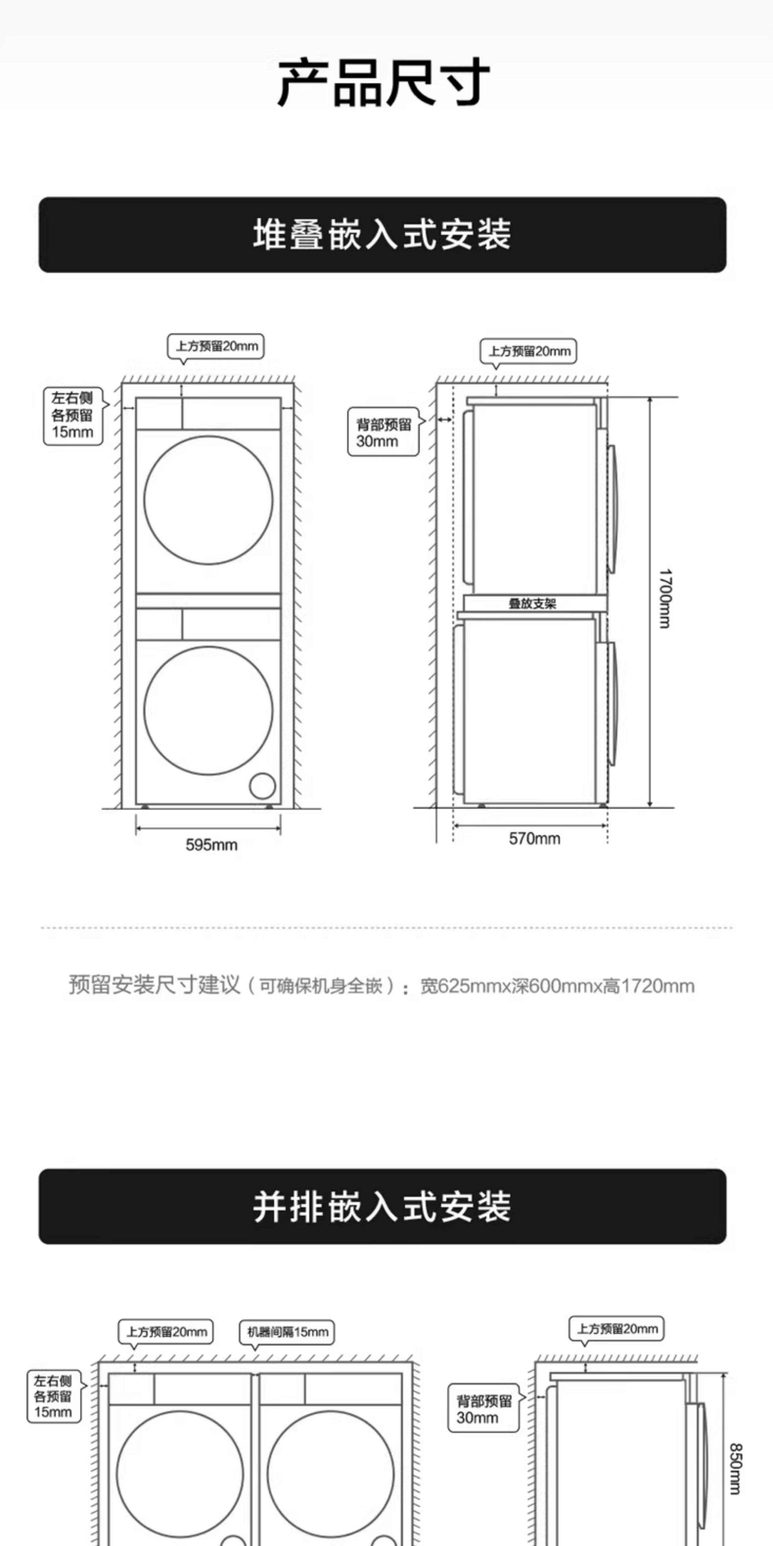 Washing Machine Size 595x570x850mm