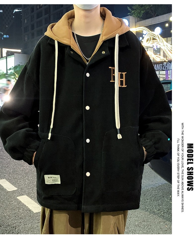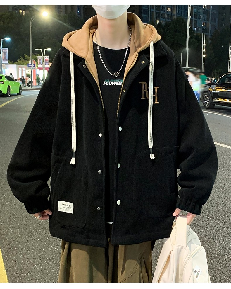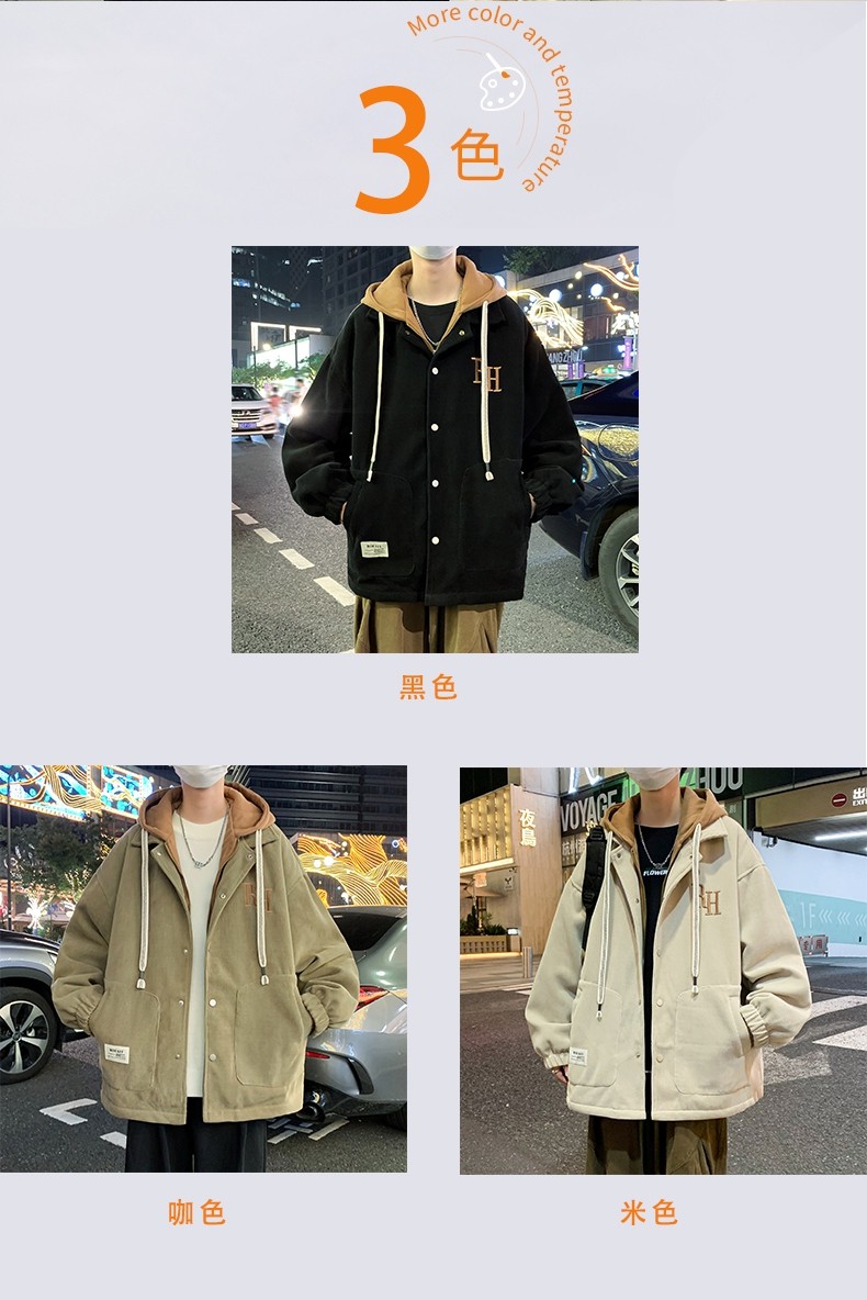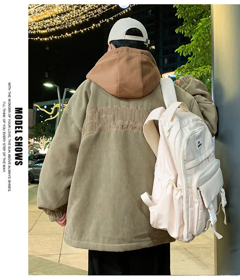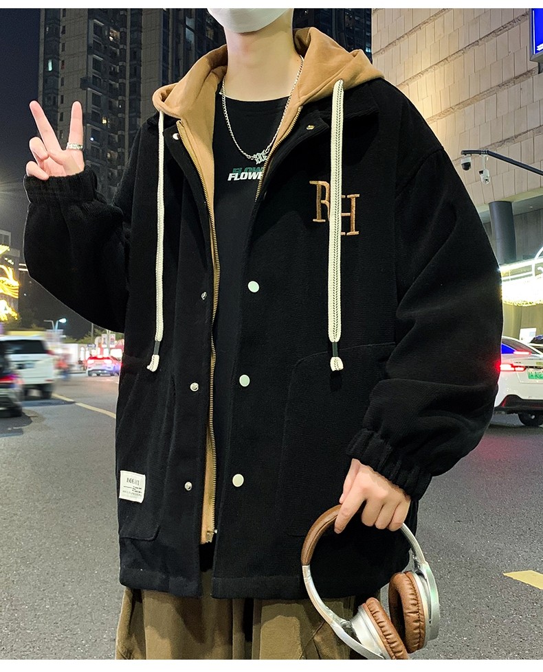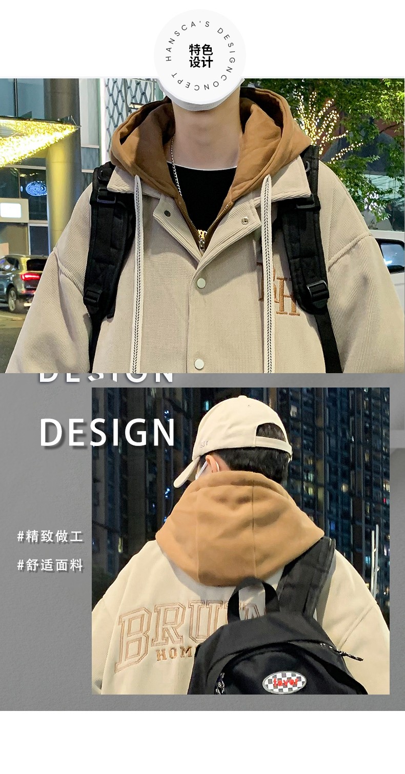 Corduroy jacket for male teenagers in autumn and winter hooded thickened quilted jacket for male high school students winter clothing two-padded jacket