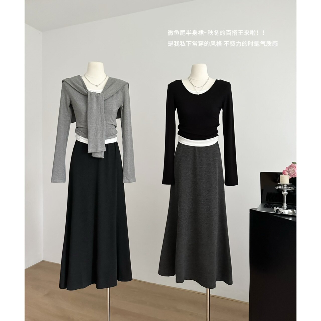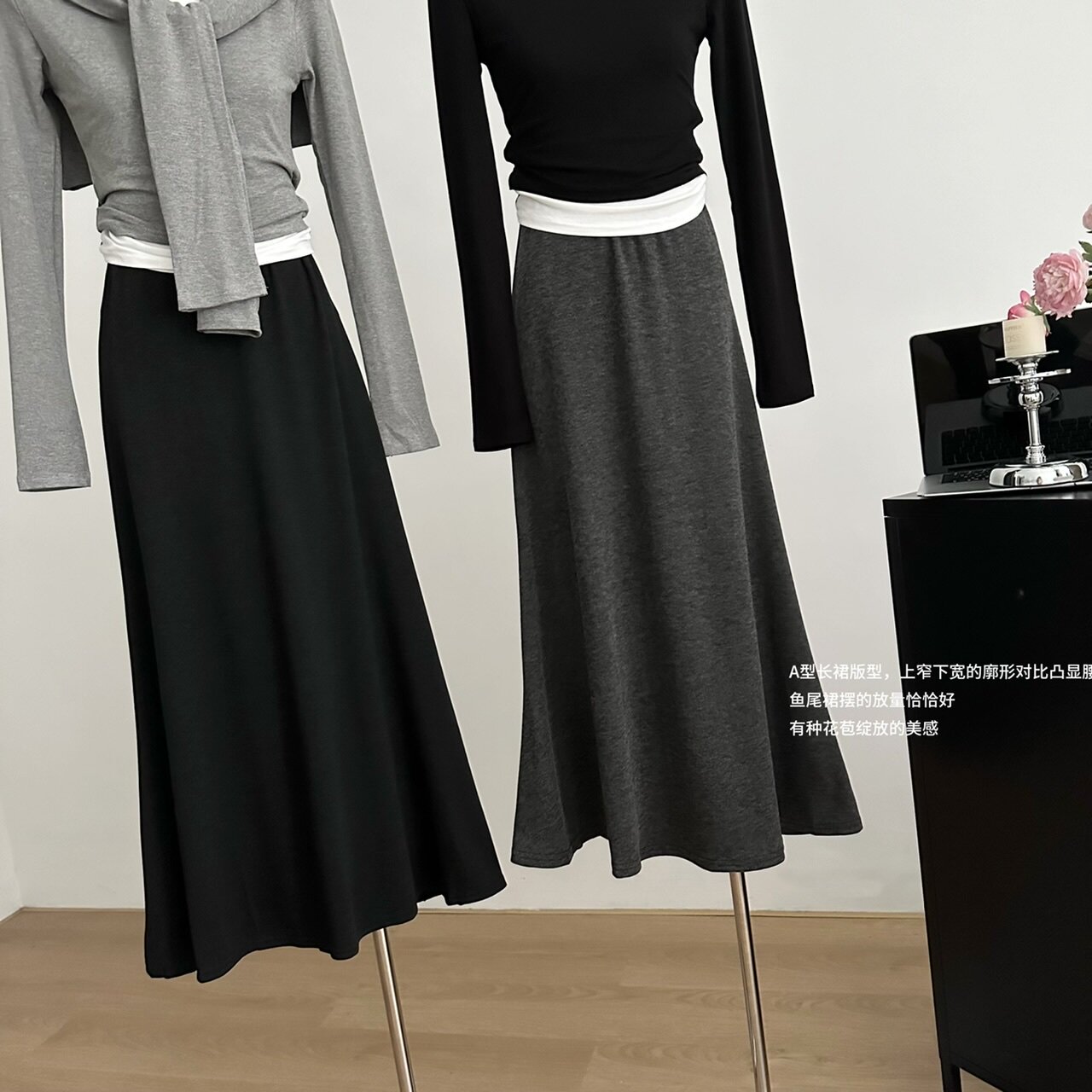 Drapey, Soft, Casual High-Waisted Skirt for Women, Autumn 2024 New Versatile Retro Minimalist Slimming Internet Celebrity Long Skirt