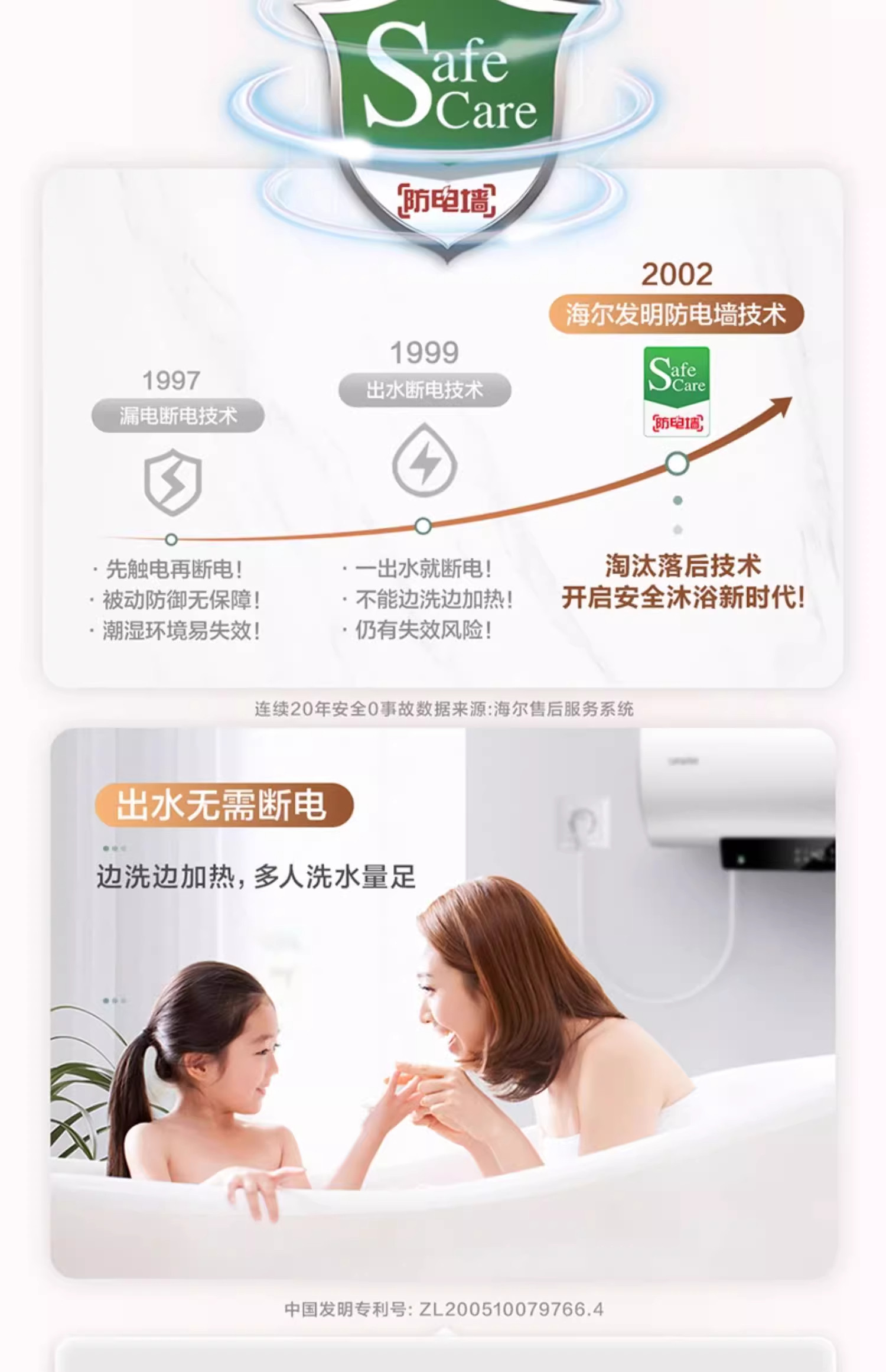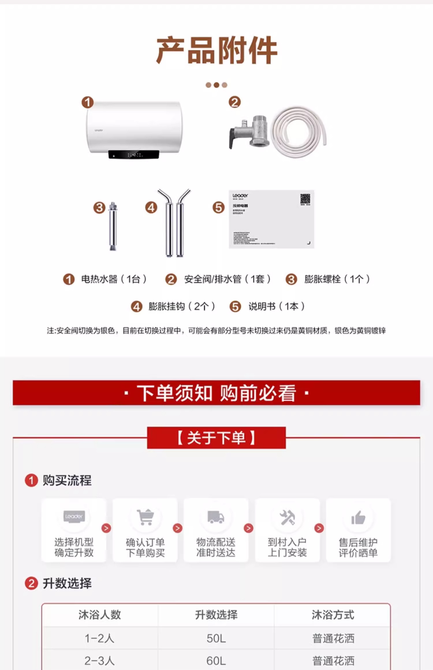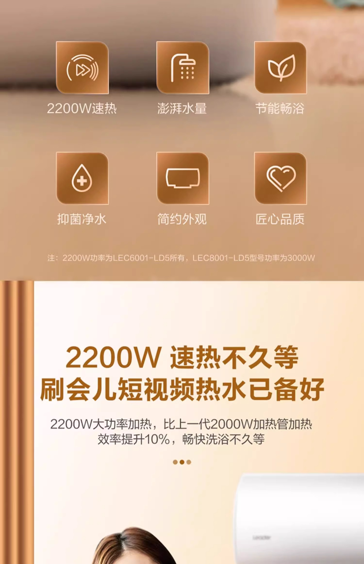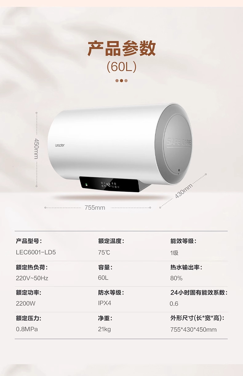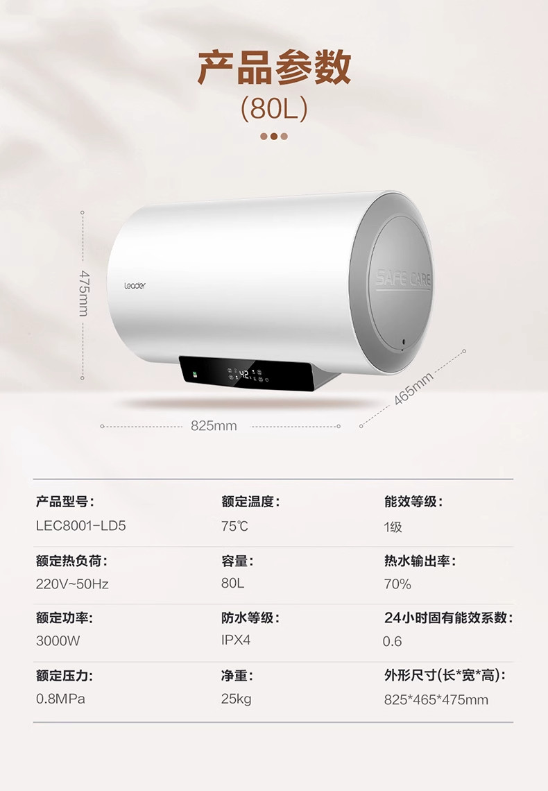 Haier Leader Household Electric Water Heater Energy-Saving for Bathing 60L First-Class Energy Efficiency Magnesium Rod No Need to Replace Official New Model Ld5