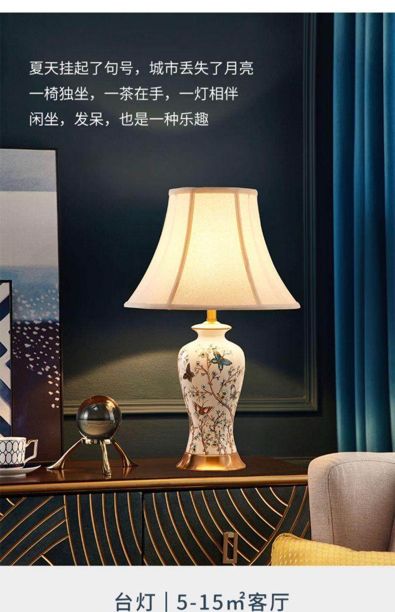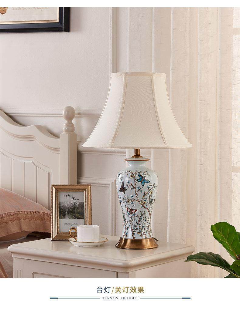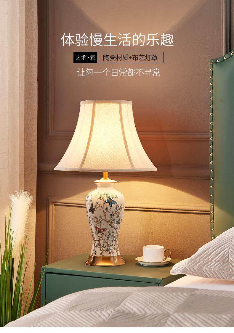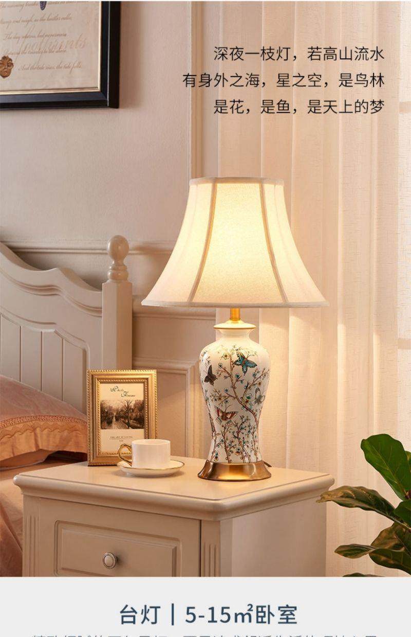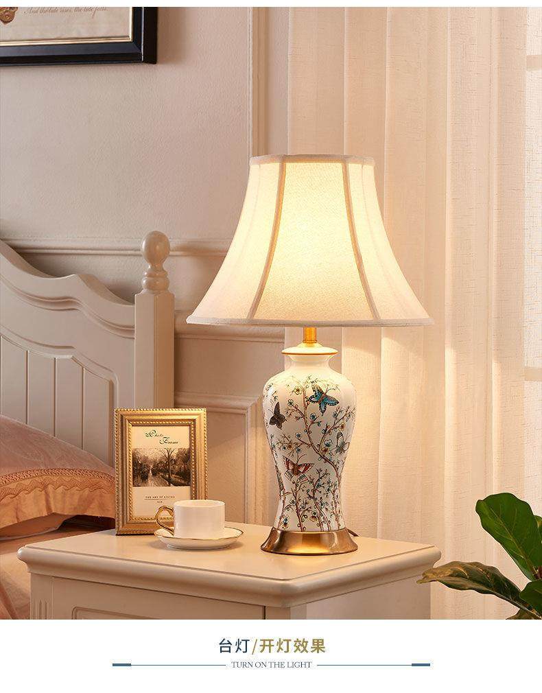 American-Style Ceramic Table Lamp Bedroom Bedside Lamp Wedding Warm Creative Nordic Light Luxury Home Living Room Lamp Simple Modern