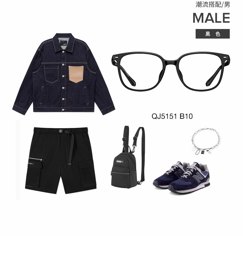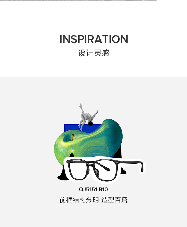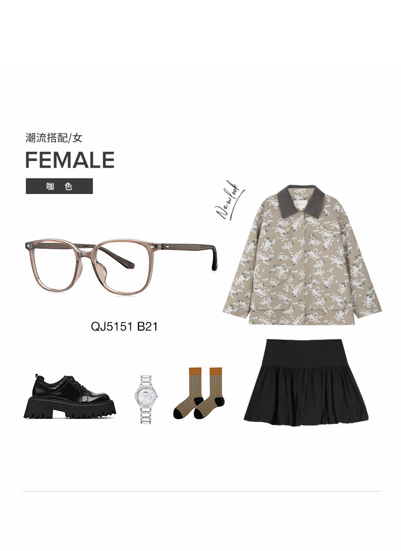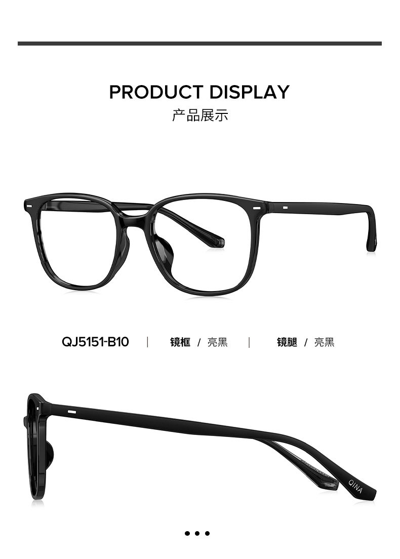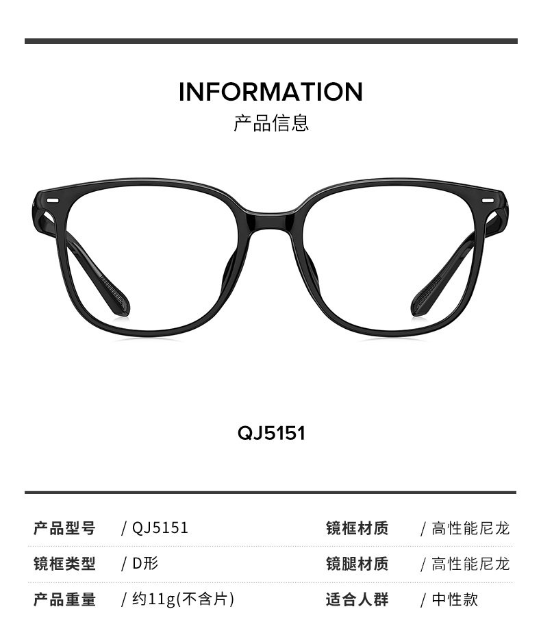 QINA QINA plain black frame glasses for myopic women can be equipped with prescription anti-blue light QJ5151