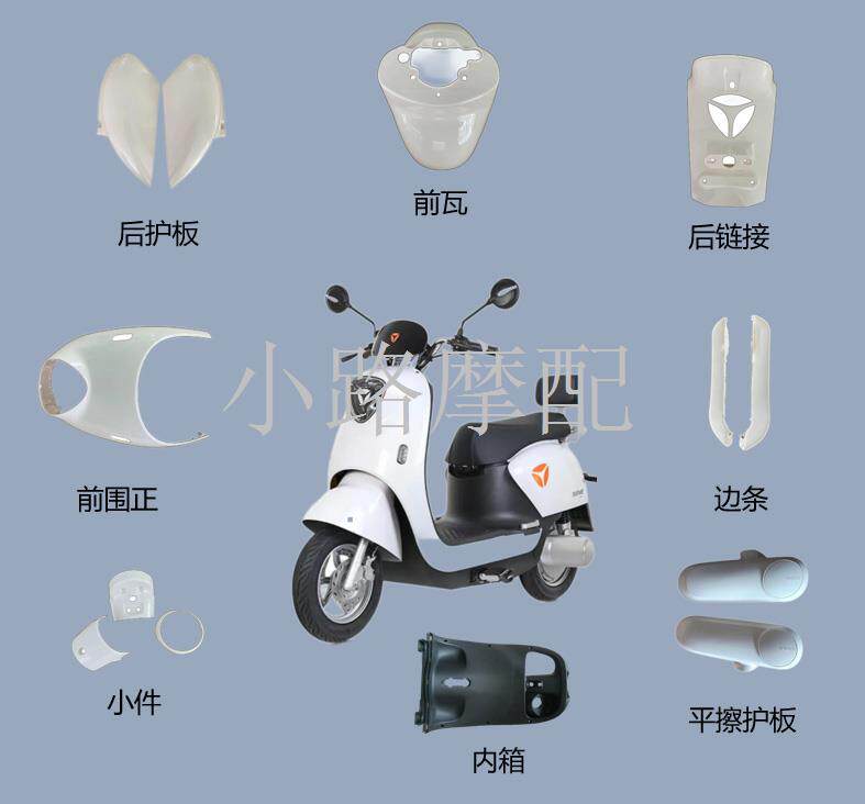 Sort by color Front wall (remark color),Rear guard (remark color),Post-connection (remark color),Edge strip (remark color),tool box windshield,Front tile (remark color),Flat fork guard plate,Full set of painted pieces,living room lamp,taillight,Front direction light,rear turn signal,windshield,Foot pedal,pedal cover,Front cover of bucket,Front inner water barrier,Bucket,Rear mudguard,Number cover,Frame bottom bracket