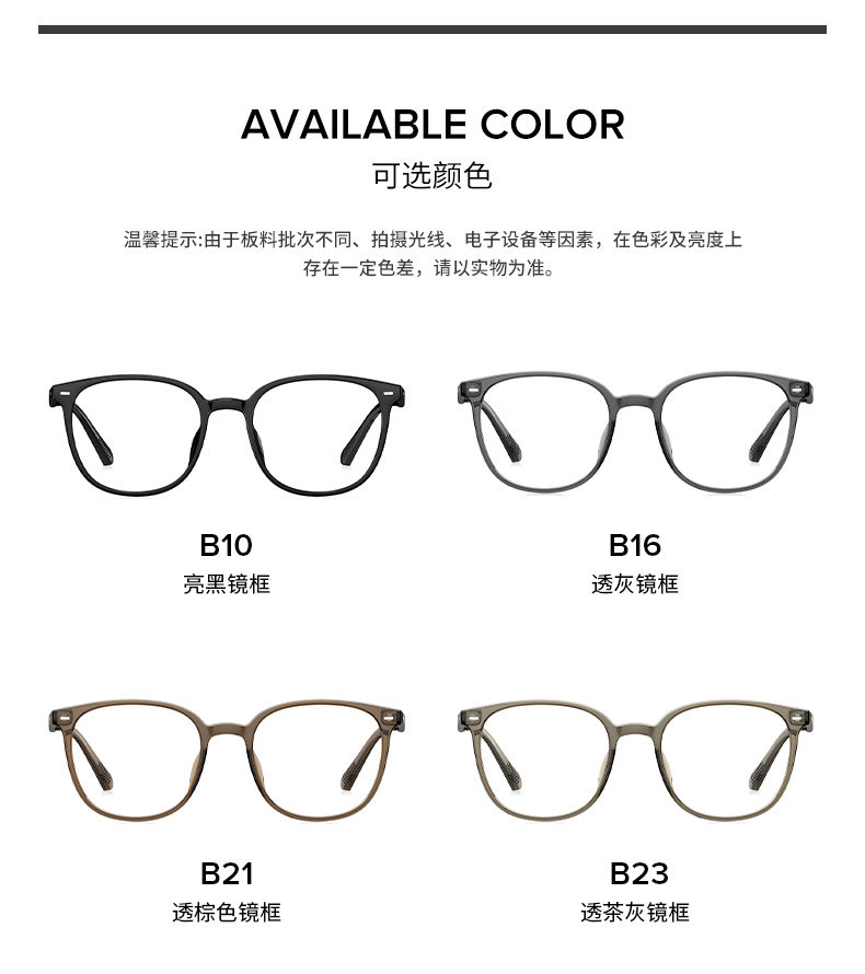 Lens refractive index Single frame,Shipped within 7 days, frame + 0 degree anti-blue light film (please leave a message with frame model),Shipped within 7 days PROSUN anti-blue light film 1.60 (within 600 degrees combined luminosity),Shipped within 7 days PROSUN anti-blue light film 1.67 (within 800 degrees combined luminosity),Shipped within 7 days PROSUN anti-blue light lens 1.74 (recommended for medium to high lenses),Shipped within 7 days. Excellent visual quality 1.60 HD (recommended within 600 degrees),Shipped within 7 days. Excellent visual quality 1.67 HD (recommended within 800 degrees),Shipped within 7 days, UVision 1.74 HD (recommended for medium to high resolution),Shipped within 7 days UVis 1.60 anti-blue light (recommended within 600 degrees),Shipped within 7 days UVision 1.67 anti-blue light (recommended within 800 degrees),Shipped within 7 days UVision 1.74 anti-blue light (recommended for medium and high levels),Shipped within 7 days, frame + excellent visual 1.60 (color-changing film, recommended within 600 degrees)