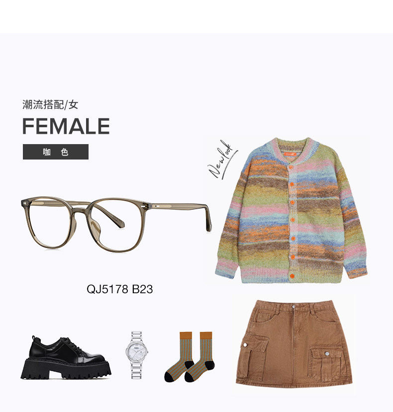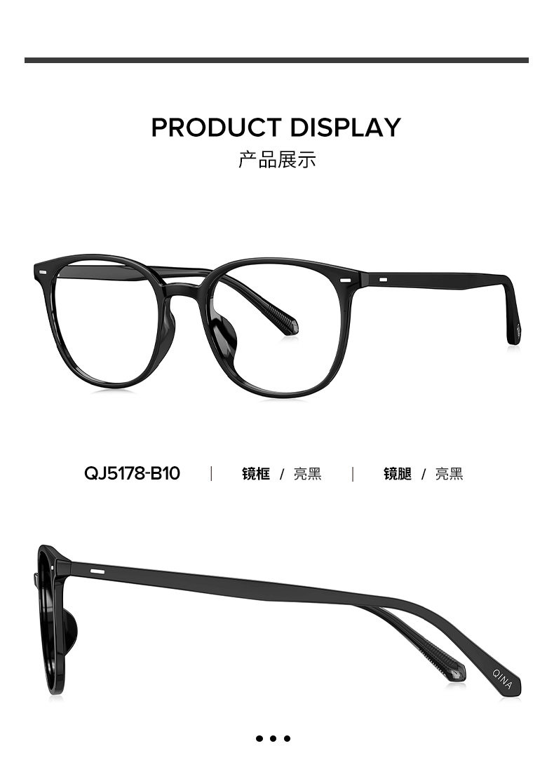 QINA's 2025 new optical plain black frame men's and women's short-sighted prescription spectacle lenses QJ5178