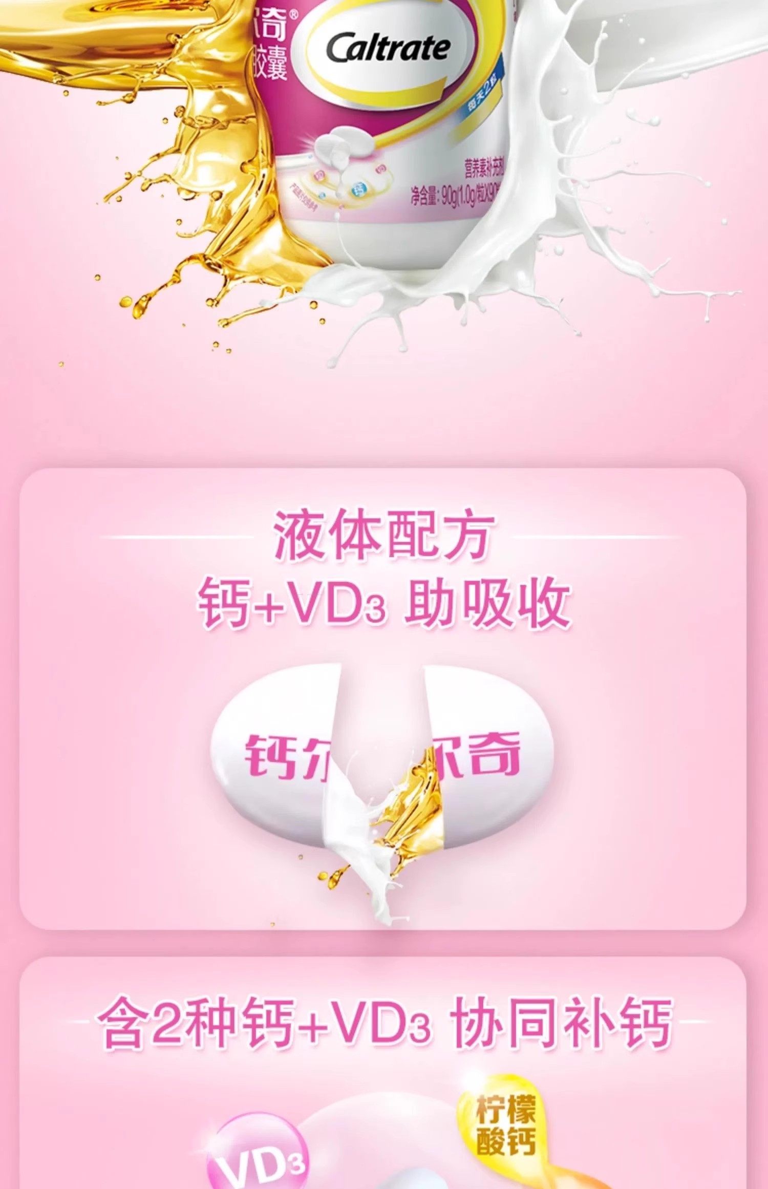 Calcium Liquid Calcium Tablets Vitamin D3 Soft Capsules Calcium Citrate Calcium Supplement for Middle-Aged and Elderly Women and Children Official Genuine Product