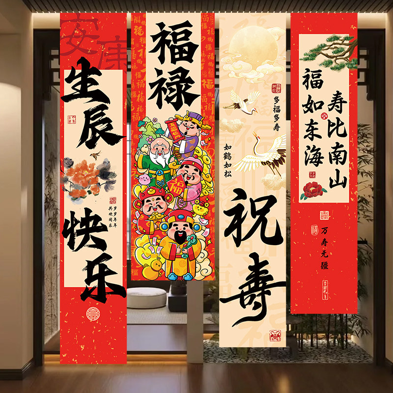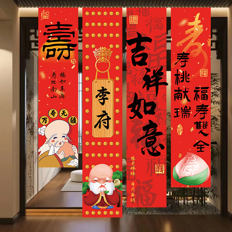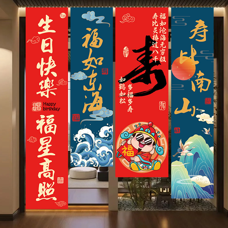 Elderly People's Birthday Banquet Decorations, Birthday Scene Decorations for Elders, Background Wall Hanging Cloth Banners, Parents' 80Th Birthday