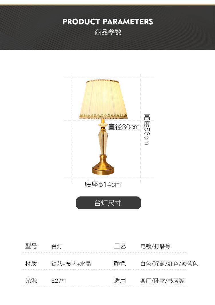 Table lamp European luxury American retro living room crystal lamp simple modern study bedroom restaurant remote control bedside lamp