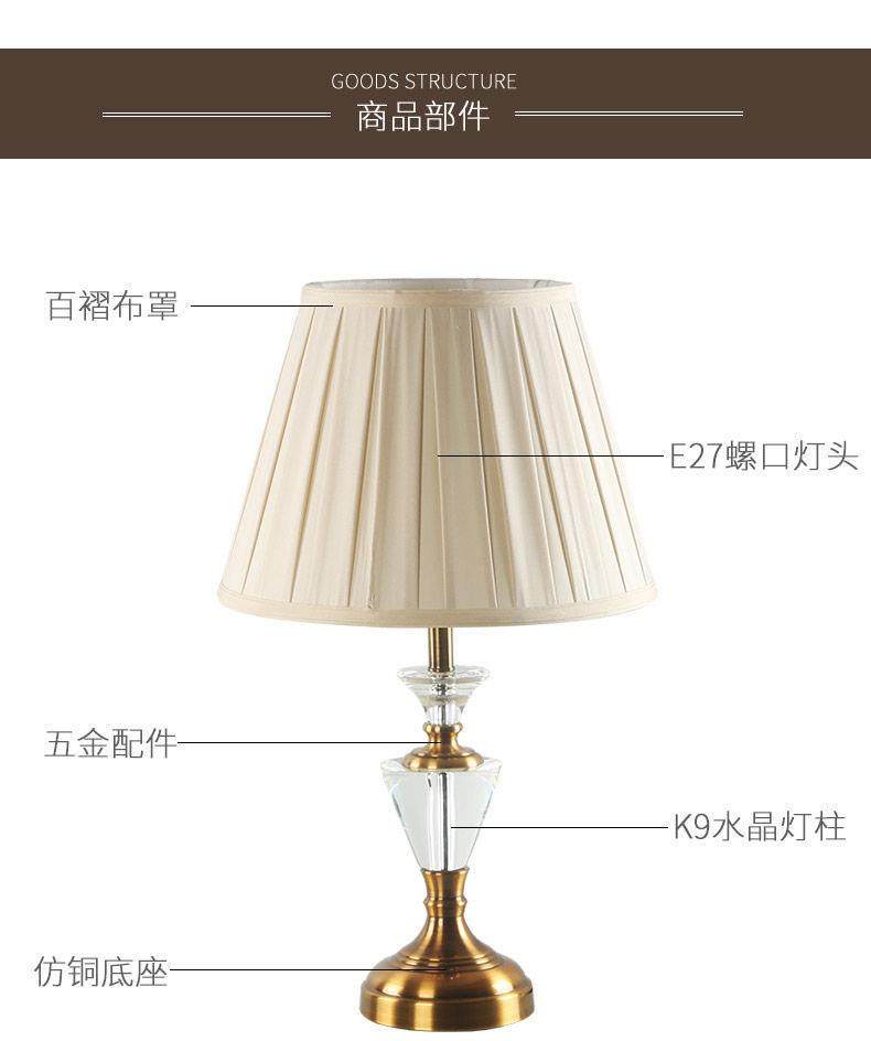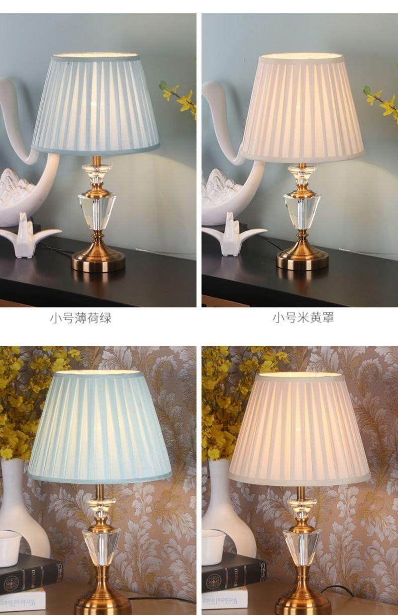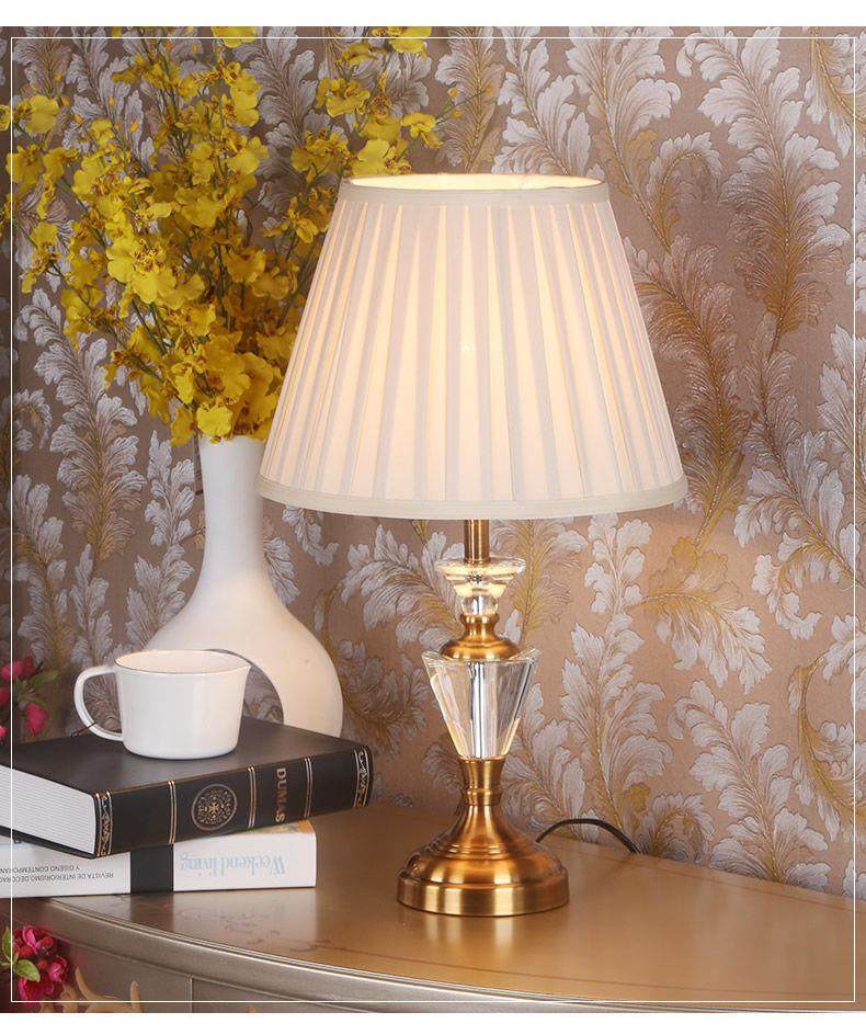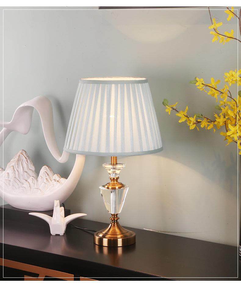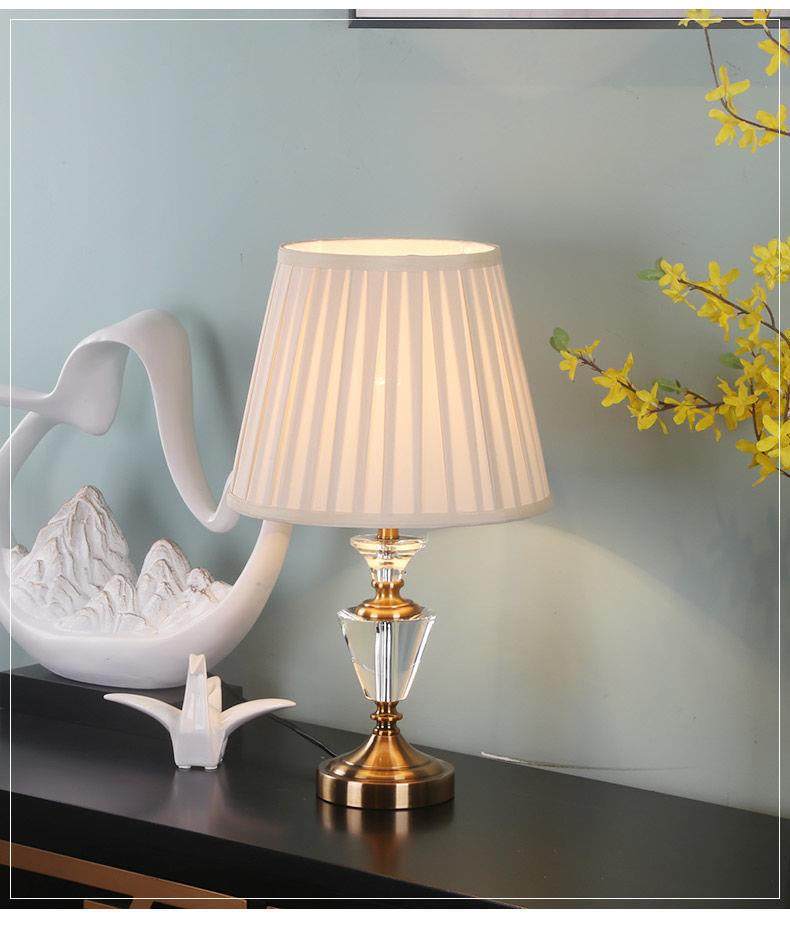 Modern Fashionable Crystal Table Lamp Bedroom Bedside Room Beige Pleated Fabric Decorative Lighting Beauty Salon Table Lamp