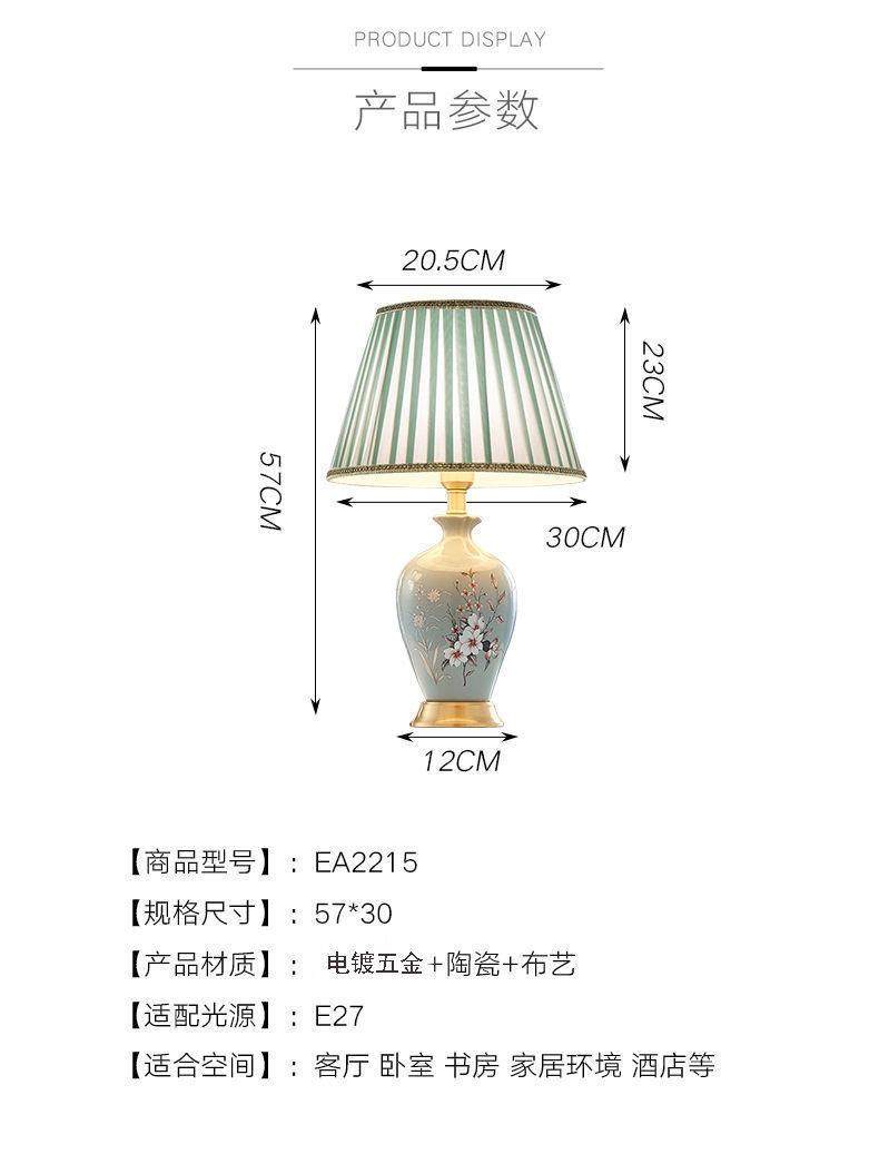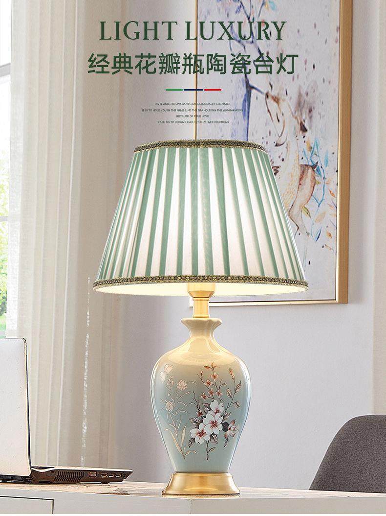 American-Style Light Luxury Ceramic Table Lamp for Living Room, New Chinese-Style Bedroom, Creative Ins-Style for Girls, Wedding 2025 New Model Bedside Lamp