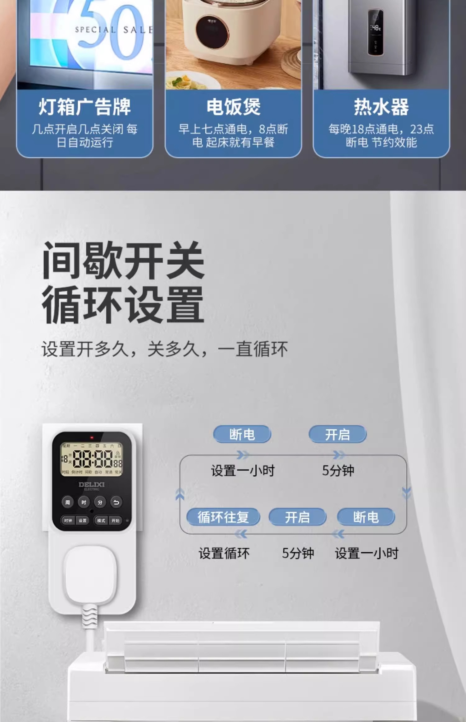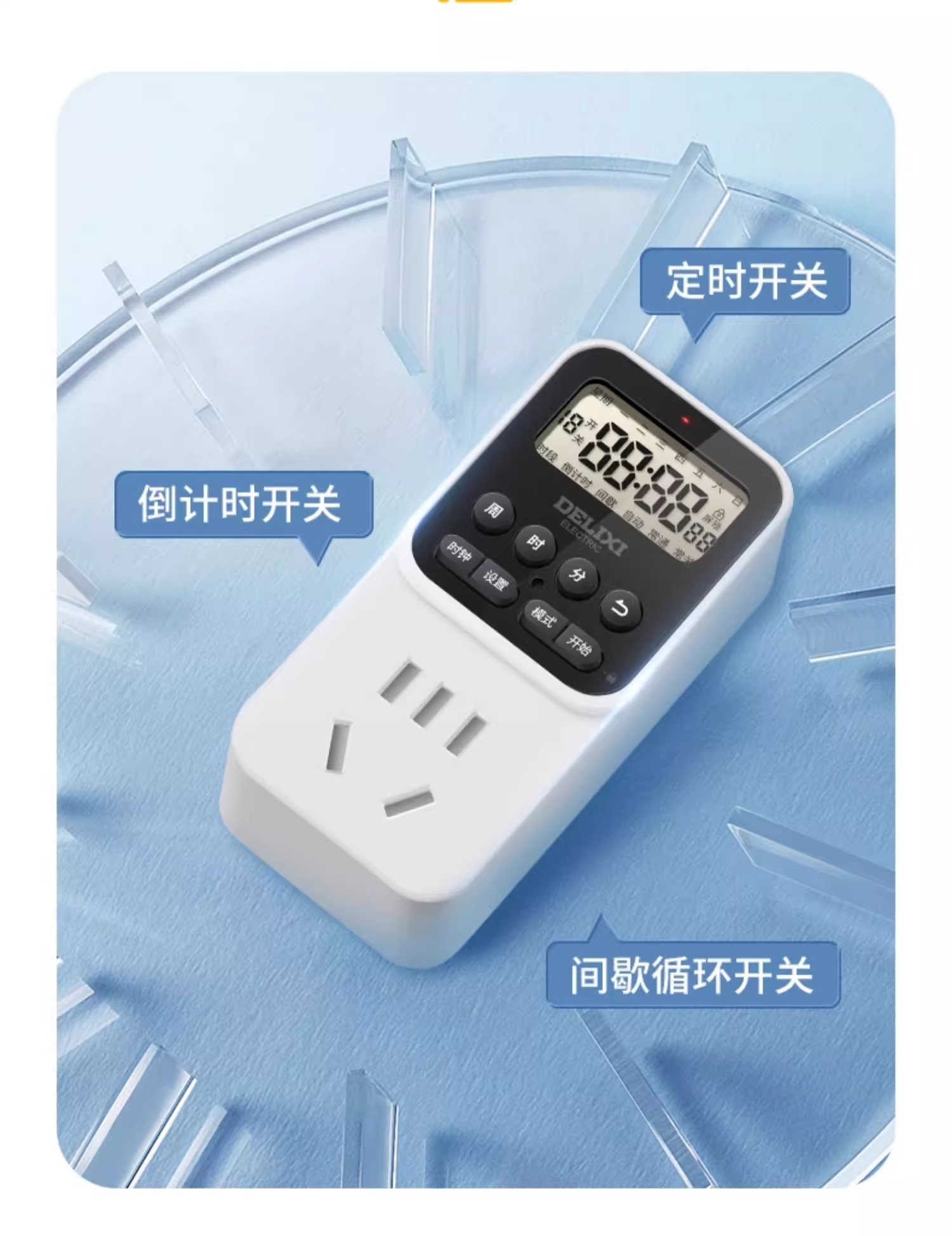 Delixi Timer Socket Timer Switch Controller Automatic Power-Off Electric Vehicle Charging Protection Timing Cycle