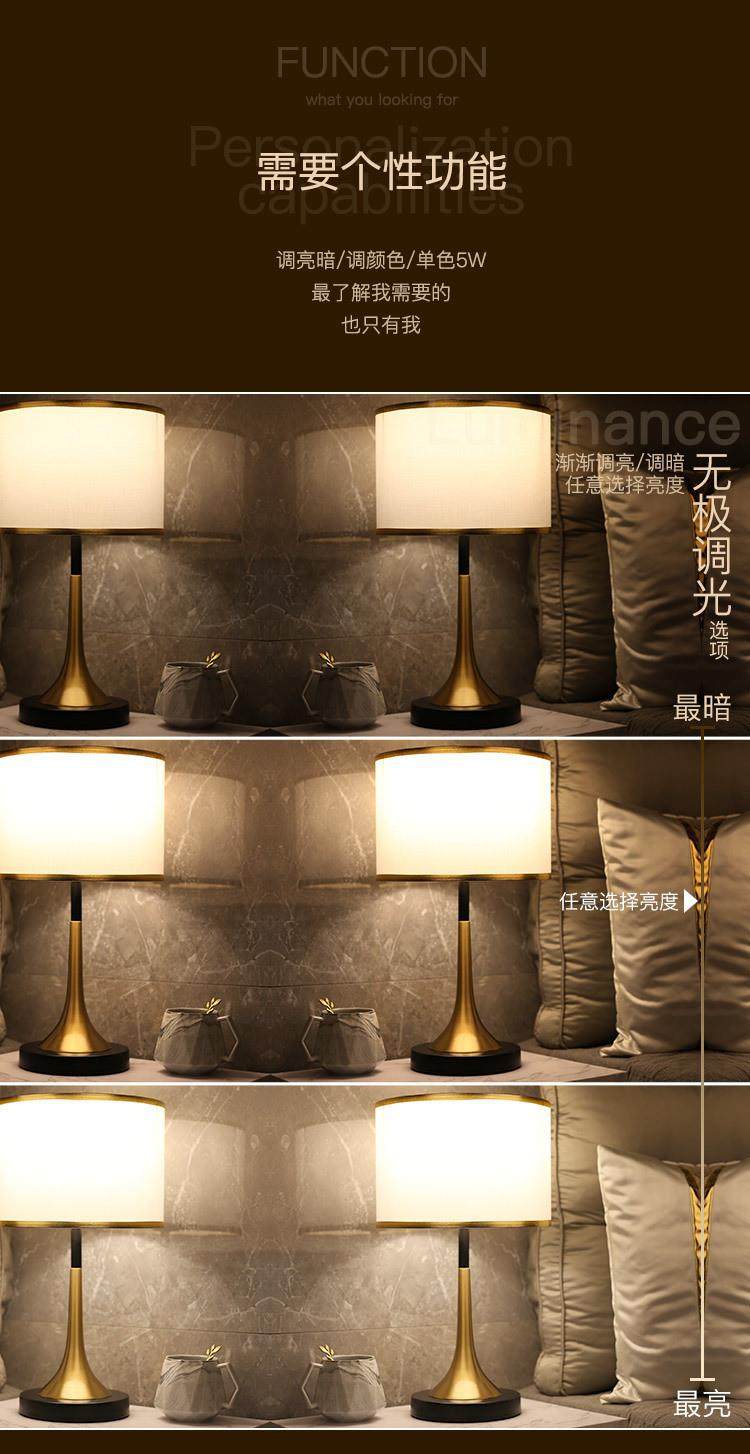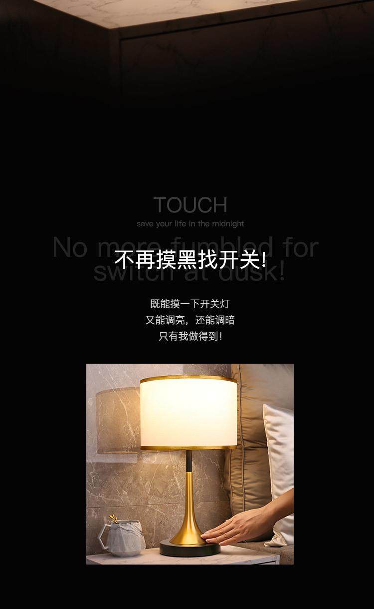 Light Luxury Table Lamp, European-Style Luxury Living Room, American-Style Study Table Lamp, Nordic Sensor Dimmable Bedroom Bedside Lamp, Touch-Type